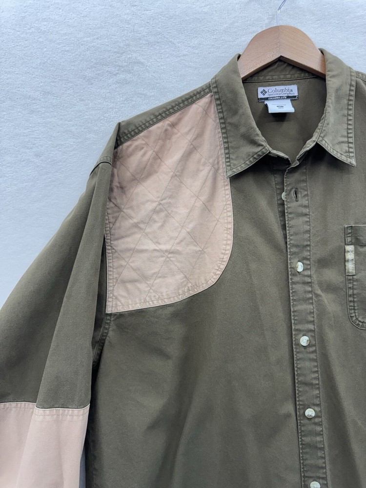 Embrace the great outdoors or power through your workday with ease in this versatile Columbia Men’s XL Classic Hunting Shooting Shirt. The colorblock design in green and tan offers a stylish yet practical look for any casual or outdoor occasion. Designed with a collared neckline and long sleeves, this shirt ensures both comfort and coverage for activities that require durability and style. Crafted from quality cotton canvas fabric, this button-up shirt is machine washable for hassle-free maintenance. It features a regular fit that allows for freedom of movement and is equipped with pockets for added convenience. Whether you’re traveling, enjoying a casual day out, or need reliable workwear, this shirt’s timeless design and functional features make it a go-to choice for all seasons.
