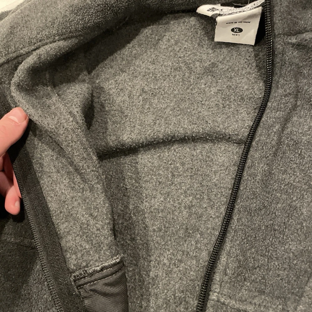 The Columbia Full Zip Fleece Jacket in Men's XL Dark Gray is a stylish and comfortable outerwear option for men. Made from polyester, this jacket features a full zip for easy layering. The dark gray color and fleece lining make it a versatile addition to any winter wardrobe, perfect for keeping warm during outdoor activities or everyday wear.