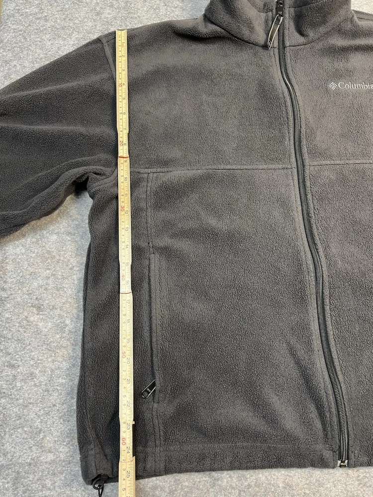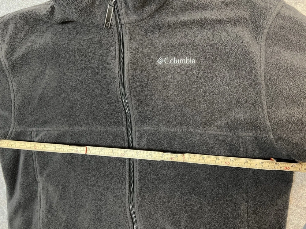 This jacket is super cozy and warm—perfect for chilly days! The fleece material is soft and comfortable, and the full zip makes it easy to layer. It’s in fair condition with some dirt spots as shown, but still looks great for the price. Fits true to size, and the dark gray color is versatile. Great value for a used Columbia jacket!