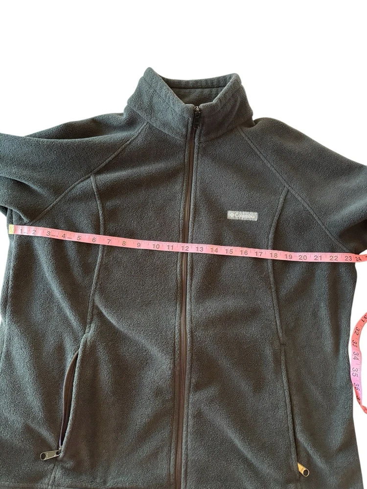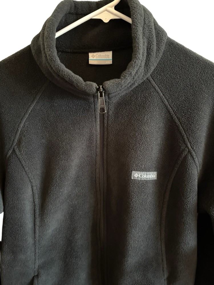 The Columbia Men's Full Zip Fleece Jacket in Black XXL offers a stylish and practical choice for outdoor activities in winter, fall, or spring. Made of polyester fleece, this jacket features a full zip closure, stand-up collar, and multiple pockets for convenience. The jacket has a solid black color with a logo accent and is machine washable for easy care. With a regular fit and size 2XL, this Columbia jacket is perfect for walking or hiking excursions, providing both warmth and comfort for the modern man on the go. Excellent condition, no flaws Measurements: Chest: 24” pit to pit Length: 30” 100% polyester Machine wash/dry Smoke free home
