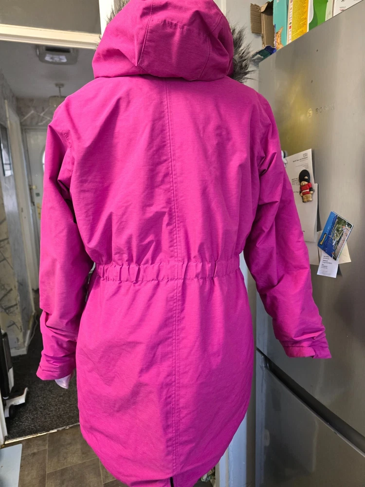 COLUMBIA NORDIC STRIDER WINTER PARKA 2023 COLLECTION Pretty and technical go hand-in-hand on this fully waterproof-breathable, ultra-warm winter coat, featuring a toasty combination of superior synthetic insulation and a thermal-reflective lining for heat retention. The rich, textured Legacy Dobby shell fabric meets a flattering, longer cut, while the gathered waist and a fishtail back hem ensure a great fit with lots of charm. SEAL IN THE HEAT Synthetic insulation and a thermal-reflective lining make this a winter go-to. GROWS WITH HER Our Outgrown™ system makes it easy for this jacket to adjust to her growth spurts to extend the life of the jacket. Omni-Tech™ waterproof/breathable critically seam sealed Omni-Heat™ thermal reflective OUTGROWN™ grow system Insulated, 150gsm Attached, adjustable storm hood Micro fleece lined hood Elastic at waist Media pocket Comfort cuffs Drop tail Reflective detail Removable faux fur WOMENS OR TEENS XL PIT-PIT 21" LENGTH 31