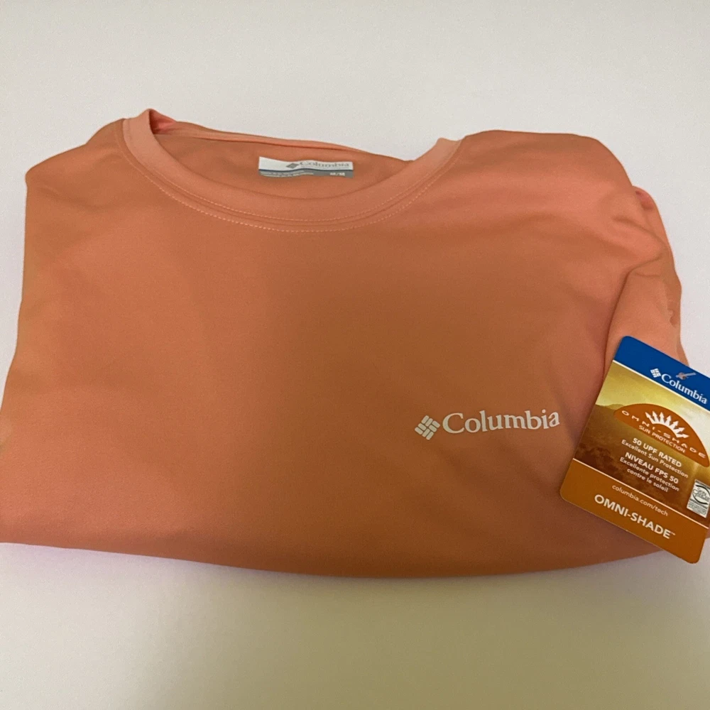 Stay protected while enjoying the great outdoors with this Columbia Omni-Shade UPF 50 Rapid Creek Long Sleeve T-Shirt in coral/salmon color. Designed with moisture-wicking fabric, this regular-fit jersey t-shirt is perfect for activities such as gym and training, walking, beach, cycling, baseball, cross training, driving, CrossFit, fishing, and hiking. The crew neck and pullover closure make it easy to wear, while the solid pattern and a touch of style. This polyester material t-shirt is machine washable and comes in size M. It is a part of the Columbia Omni-Shade product line, which offers UPF 50 protection against harmful rays. Whether you are hitting the trails or the beach, stay comfortable and protected with this activewear top.