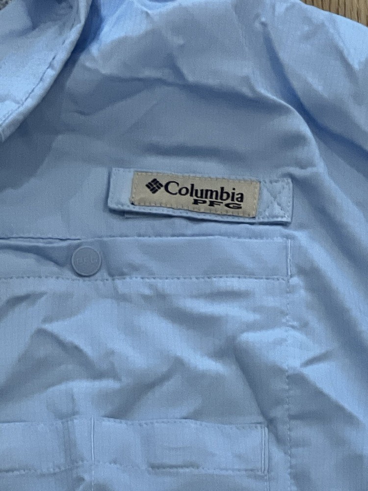 This versatile Columbia PFG shirt is perfect for any outdoor activity, whether it be fishing, camping, or just a casual walk. Its short-sleeved design and collared neckline make it suitable for travel and party/cocktail occasions as well. The shirt is made of a comfortable and breathable microfiber material that is lightweight and durable. It features button-down snaps and a vented design for added convenience and style. The shirt is machine washable and comes in a solid blue color, making it a great addition to any wardrobe.