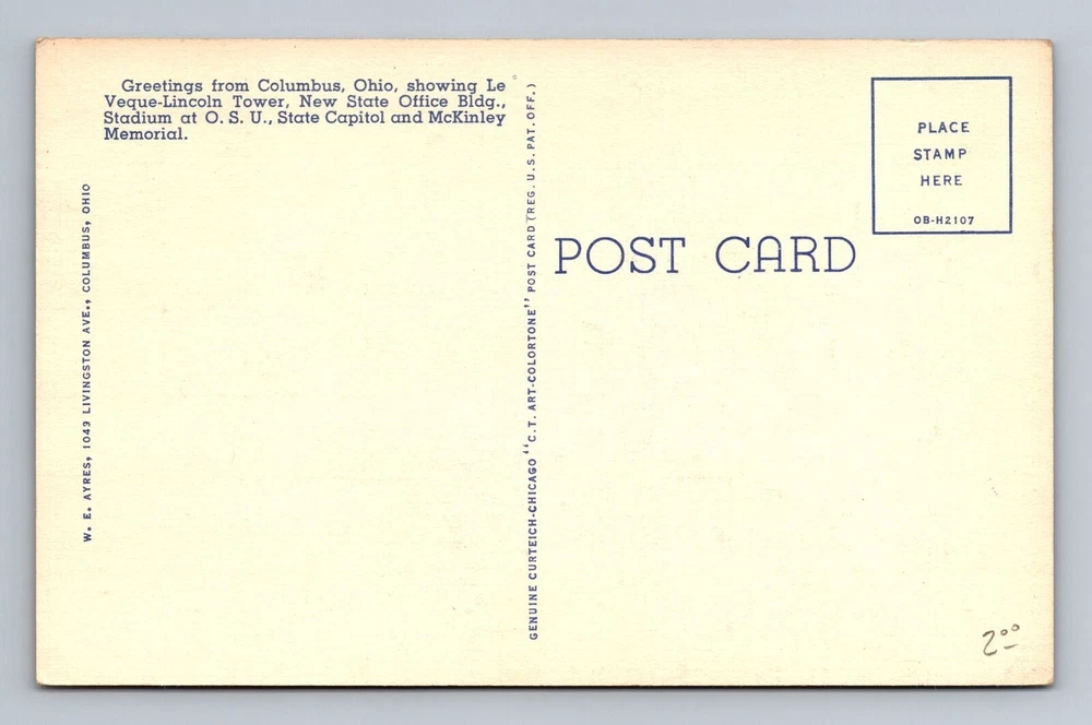 Subject: Cities & Towns Postage Condition: Unposted Era: Vintage Country: USA Original/Licensed Reprint: Original Type: Printed (Lithograph) City: Columbus Unit of Sale: Single Unit Country/Region of Manufacture: Unknown Region: Ohio Theme: Cities & Towns