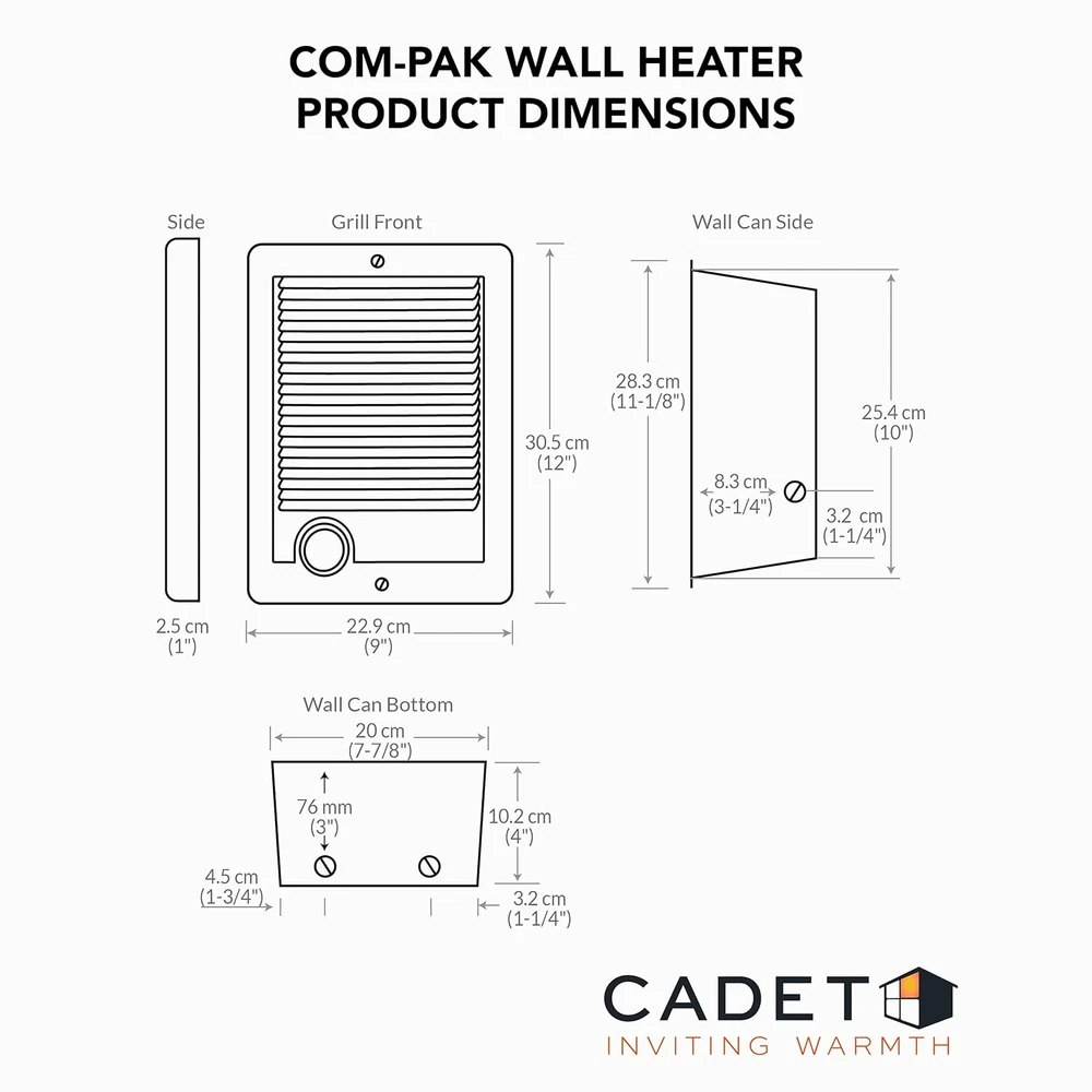 Com-Pak Electric Wall Heater Complete Unit with Thermostat (Model: CSC151TW, Par
