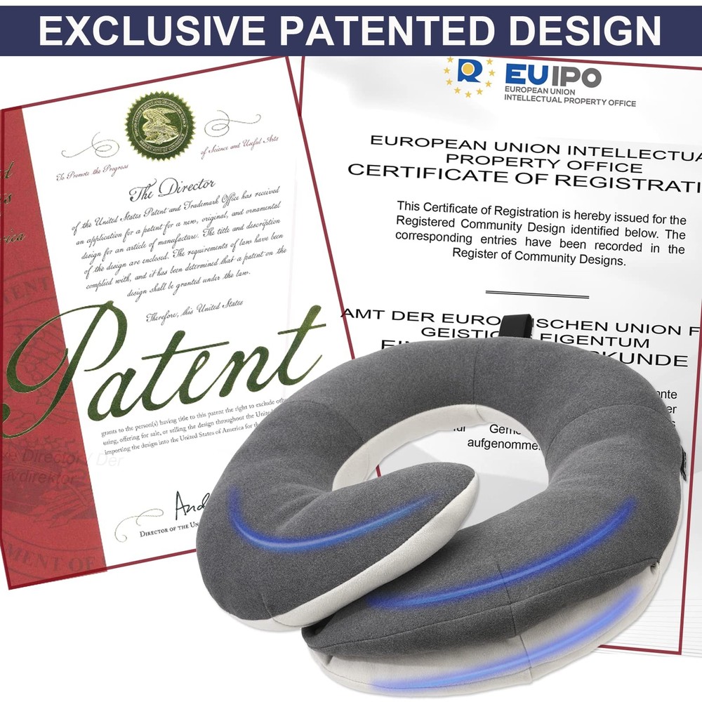 Travel Neck Pillows for Airplanes, 360° Head Support Sleeping Essentials for Long Flight , Skin-Friendly & Breathable, Kit with 3D Contoured Eye Mask, Earplugs and Storage Bag (Grey) ✦ Enhanced Neck Support & Adjustable Size ✦The patented ergonomic travel pillow features a unique triple support system to prevent your head from falling forward. Its Q-shaped design provides 360-degree support for your head, neck, and chin, effectively relieving neck pain. Additionally, you can rotate the pillow 90 degrees for enhanced side comfort. Adult Size: Fits neck sizes 13 " and above (generally suitable for individuals over 90 lbs). Small Size: Fits neck sizes up to 13 " (generally suitable for individuals between 40-90 lbs). ✦ Unique Finds ✦ The original design provides exceptional comfort in any sleeping position, making it ideal for use on airplanes, cars, trains, and buses. It’s also perfect for relaxing on the sofa or chair while reading, watching TV, or working at the office. The pillow is easily adjustable to keep your head in an upright position, which helps to relax neck muscles. It’s a thoughtful gift for friends and loved ones who will appreciate its comfort. ✦ Travel Kit ✦ Includes a 3D contoured sleep mask and earplugs to help you take a restful nap. The travel bag keeps the pillow clean and stored. We specially designed a built-in pocket on the side of the neck pillow, when not using them, you can put the eye mask and earplugs into the pocket. ✦ Easy to Carry & Machine Washable ✦ After packed in storage bag: Approx. Dia.9.5" x 7 "H. Attaches easily to luggage and backpacks with a snap strap, making it easy to carry with you. The entire pillow is machine washable and should be air-dried. ✦ Materials & Satisfaction Guarantee ✦ Crafted from super-soft micro-velvet, commonly used in intimate apparel, for a soft touch. Filled with high-quality three-dimensional PP cotton, the pillow provides excellent support. We prioritize quality control and are dedicated to enhancing our customers' shopping experience. If you encounter any issues, please feel free to contact us. We promise to provide a satisfactory resolution in a timely manner.
