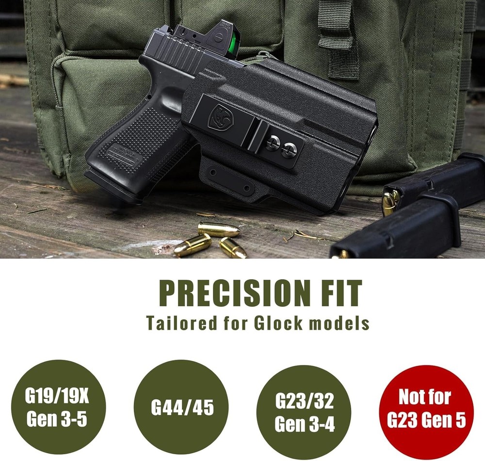 Comfortable IWB Holster for Glock 19/23/32 with Flashlight - Glossy Black ‹ › ‹ › ‹ › ‹ › ‹ › ‹ › ‹ › ‹ › ‹ › Comfortable IWB Holster for Glock 19/23/32 with Flashlight - Glossy Black Product Features: Precision Fit: Engineered specifically for Glock 19/19X Gen 3-5, Glock 44/45, and Glock 23/32 Gen 3-4. Not compatible with Glock G23 Gen 5. For Multiple Lights: Accommodates a variety of compact weapon lights (up to 1.20 inches wide and 1.33 inches high). Works perfectly with Streamlight TLR-7, OLIGHT PL-Mini 2 Valkyrie, INFORCE WILD1, Surefire XC1 and XC2. Retention remains secure even without a light. Ultra Comfort: Features a soft TPE layer over a durable polymer shell, providing exceptional comfort for all-day wear. Say goodbye to the discomfort of hard plastic. Optics Ready: Integrated optics cut accommodates most sight systems, including suppressor sights, for full versatility. Enhanced Concealment: Includes two optional camming bars to reduce printing, leveraging the firearm’s grip against your body for superior concealment. Custom Fit: Sturdy metal clip designed for 1.5-inch belts and an additional clip for 1.75-inch belts, ensuring stability. Adjustable ride height and cant up to ±20 degrees for a personalized fit. Why Choose This Holster? Experience the perfect blend of safety, comfort, and versatility with our Comfortable IWB Holster for Glock models. Designed for the modern gun owner, this holster ensures a snug fit for your Glock while accommodating various weapon lights. Its unique design features a soft shell for all-day wear, making it your ideal companion for daily concealed carry. With enhanced concealment features, including a custom adjustable fit, you can carry confidently and comfortably. Whether you're in the field or on the go, this holster meets every demand you place on your everyday carry gear. Your safety and comfort shouldn't be compromised. Choose our IWB Holster today – where safety meets comfort! Shipping Free & Fast Shipping - We offer free shipping to most of the USA with a normal delivery time of 3-7 days. However, due to the current situation, additional delivery time (up to 3 weeks) may be required for some items. Alternative Carriers - We may use alternative carriers (e.g. USPS, FedEx, UPS, etc.) to ensure your package arrives safely and on time. Due to the use of multiple carriers, we are unable to provide a tracking number automatically. Handling Time - Orders are processed and shipped within 1-2 business days of receiving cleared payment. Shipping Restrictions - Shipping to Alaska, Hawaii, Puerto Rico, Guam, and other US territories may incur shipping charges or delivery restrictions. Please contact us before ordering, or your order can be refunded/cancelled. State Restrictions - There may be restrictions based on your state of purchase. For example, certain items may not be shipped to California due to state regulations. Contact for Tracking Updates - If you require tracking updates or have any concerns about the delivery of your order, please feel free to contact us, and we will be happy to assist you. Return 30-Day Hassle-Free Returns - We want you to be completely satisfied with your purchase. If you are not, you can return the item within 30 days of receiving it for a full refund or exchange. Easy Return Process - To start a return, simply contact us and we will provide you with a prepaid return shipping label and detailed instructions. Restocking Fee - There are no restocking fees for returns. However, the buyer is responsible for return shipping costs if the return is not due to a seller's error. Refund Processing Time - Refunds will be processed within 5 business days of receiving the returned item in its original condition. Payment We accept all major credit cards, PayPal, and Apple Pay for your convenience. Your payment information is secure and encrypted to ensure a safe and seamless transaction. Please complete your payment within 3 days of purchase to avoid any delays in shipping. Feedback Your feedback is extremely important to us. We strive to provide the best products and customer service possible. If you are satisfied with your purchase, please take a moment to leave us a positive review. If you have any concerns or issues with your order, please contact us before leaving negative feedback. We are committed to resolving any problems and ensuring your satisfaction. Contact Us If you have any questions or concerns, please feel free to reach out to our customer support team. You can contact us through the eBay messaging system. We are available Monday to Friday, 9:00 am to 5:00 pm EST, and we will do our best to respond to your inquiry within 24 hours. Buy it now and enjoy a pleasant shopping experience! UPC: Not Set Model: Not Set Item Height: Not Set Item Length: Not Set Item Weight: 0.5 Item Width: Not Set Unit Quantity: 1 For Gun Make: GLOCK Material: Polymer,Polymer and Soft TPE Hybrid,Soft TPE Carry Location: Appendix,Inside Waistband (IWB) For Gun Type: Pistol Gauge/Caliber: Not Set Carry Position: 1 o'Clock Attachment Type: Clip Features: Adjustable Cant,Lightweight,With Clip Cant: Neutral Set Includes: 1 holster Brand: Unbranded Type: Concealment Holster Number of Magazines: 1 Level: Level 1 Sport/Activity: Shooting MPN: Not Set Handedness: Right Color: Glossy Black Country/Region of Manufacture: Not Set Manufacturer Warranty: Not Set Unit Type: Unit