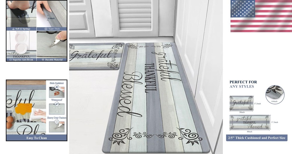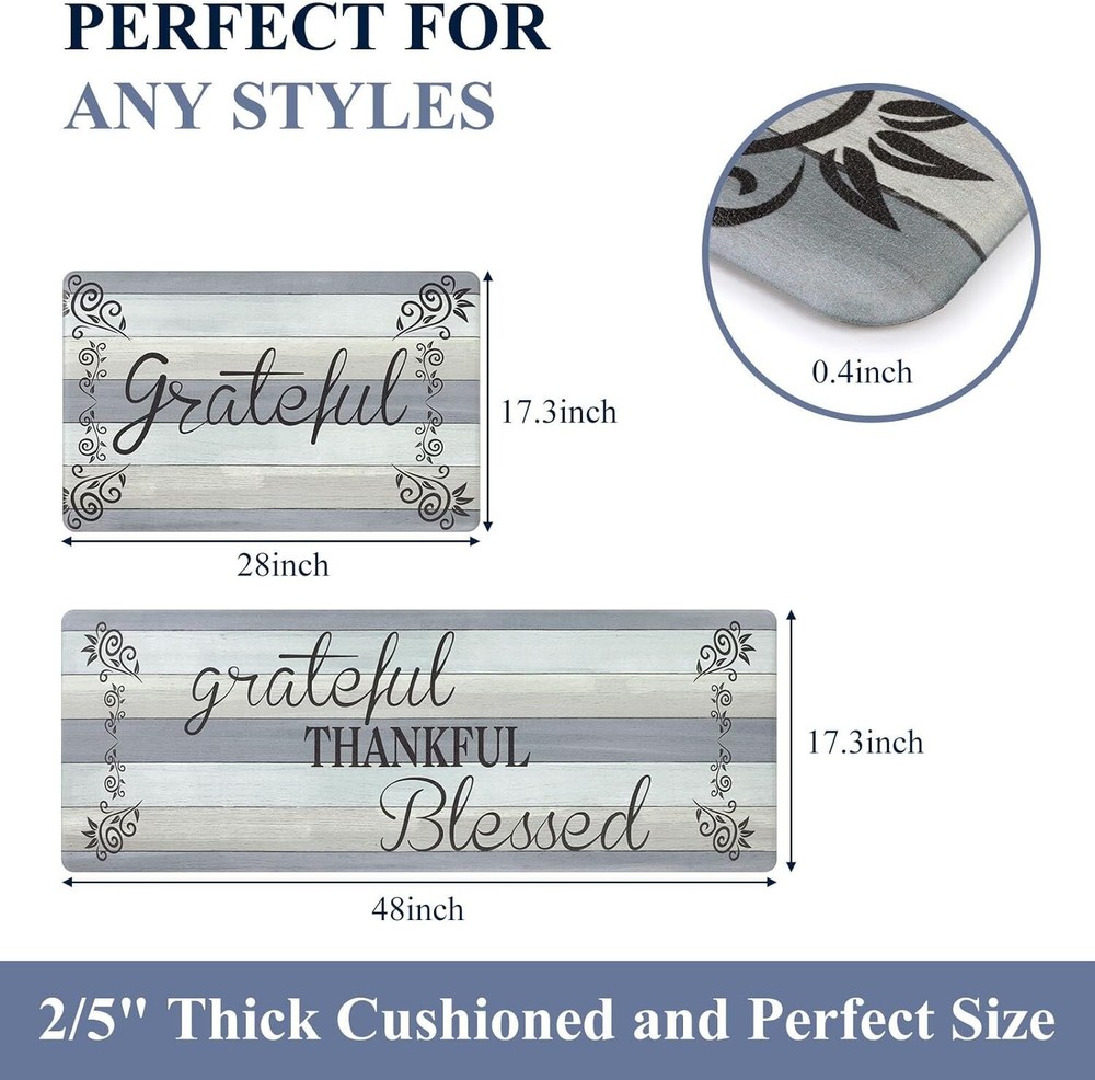Stylish Non-Slip Anti-Fatigue Kitchen Mats - Set of 2 for Comfort & Safety ‹ › ‹ › ‹ › ‹ › ‹ › ‹ › ‹ › ‹ › ‹ › Stylish Non-Slip Anti-Fatigue Kitchen Mats - Set of 2 Comfort & Safety Product Details: Set of 2 kitchen mats in sizes: 17 x 28 inches and 17 x 48 inches . Crafted from high-quality, PVC materials for long-lasting shape and durability. 2/5 inch thick cushioned design, ergonomically engineered for optimum support. Attractive diamond style on top for an elegant touch, with a non-slip base for added safety. Beveled edges to prevent tripping and increase safety. Suitable for use on a variety of surfaces including tile, wood, ceramic, and marble. Benefits: Enhances comfort by reducing fatigue during prolonged standing. Improves circulation and posture while you work in the kitchen or at any workstation. Easy to clean - simply wipe or sweep away dirt and spills. Waterproof design ensures the mats stay looking fresh and elegant. Versatile use in kitchens, laundry rooms, offices, and more, adding style to any space. Neutral color complements a variety of home decors. Why Choose Our Stylish Anti-Fatigue Kitchen Mats? Transform your cooking space into a sanctuary of comfort and style with this set of two anti-fatigue kitchen mats. Designed to provide exceptional support while you stand, our -quality mats will enhance your working experience in the kitchen, laundry, or office. Not only do they protect your floors, but they also offer a chic look that complements any decor. Invest in the comfort and safety of your home today. Perfect as a thoughtful gift for Thanksgiving, Christmas, or any special occasion! Order your set now and experience the perfect blend of style and functionality. Shipping Free & Fast Shipping - We offer free shipping to most of the USA with a normal delivery time of 3-7 days. However, due to the current situation, additional delivery time (up to 3 weeks) may be required for some items. Alternative Carriers - We may use alternative carriers (e.g. USPS, FedEx, UPS, etc.) to ensure your package arrives safely and on time. Due to the use of multiple carriers, we are unable to provide a tracking number automatically. Handling Time - Orders are processed and shipped within 1-2 business days of receiving cleared payment. Shipping Restrictions - Shipping to Alaska, Hawaii, Puerto Rico, Guam, and other US territories may incur shipping charges or delivery restrictions. Please contact us before ordering, or your order can be refunded/cancelled. State Restrictions - There may be restrictions based on your state of purchase. For example, certain items may not be shipped to California due to state regulations. Contact for Tracking Updates - If you require tracking updates or have any concerns about the delivery of your order, please feel free to contact us, and we will be happy to assist you. Return 30-Day Hassle-Free Returns - We want you to be completely satisfied with your purchase. If you are not, you can return the item within 30 days of receiving it for a full refund or exchange. Easy Return Process - To start a return, simply contact us and we will provide you with a prepaid return shipping label and detailed instructions. Restocking Fee - There are no restocking fees for returns. However, the buyer is responsible for return shipping costs if the return is not due to a seller's error. Refund Processing Time - Refunds will be processed within 5 business days of receiving the returned item in its condition. Payment We accept all major credit cards, PayPal, and Apple Pay for your convenience. Your payment information is secure and encrypted to ensure a safe and seamless transaction. Please complete your payment within 3 days of purchase to avoid any delays in shipping. Feedback Your feedback is extremely important to us. We strive to provide the best products and customer service possible. If you are satisfied with your purchase, please take a moment to leave us a positive review. If you have any concerns or issues with your order, please contact us before leaving negative feedback. We are committed to resolving any problems and ensuring your satisfaction. Contact Us If you have any questions or concerns, please feel free to out to our customer support team. You can contact us through the eBay messaging system. We are available Monday to Friday, 9:00 am to 5:00 pm EST, and we will do our best to respond to your inquiry within 24 hours. Buy it now and enjoy a pleasant shopping experience! Unit Quantity: 2 Room: Kitchen,Office,Laundry Material: PVC Features: Non-Slip,Stain Resistant,Waterproof,Fade Resistant,Quick Dry Department: Adults Type: Kitchen Mat Color: Wood/Grey Pattern: Floral Shape: Rectangle Size: 17 x 28 in Style: Farmhouse Pile Type: Normal Weave: Machine-Woven Era: 21st Century (2000-Now) Unit Type: lb