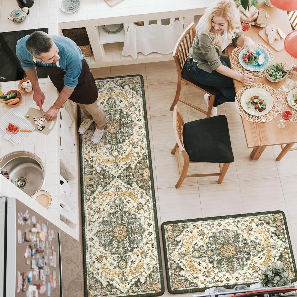 Comfortable Non-Slip Anti-Fatigue Mats for Kitchen - 17.3'' x 59'' & 17'' x 29'' ‹ › ‹ › ‹ › ‹ › ‹ › ‹ › ‹ › ‹ › ‹ › ‹ › ‹ › Comfortable Non-Slip Anti-Fatigue Mats for Kitchen Dimensions: 17.3'' x 59'' & 17'' x 29'' Features: Ergonomically designed with a 0.47-inch (12mm) thick anti-fatigue memory foam center for ultimate comfort. Two-piece set: Includes one 17 x 59 inches and one 17 x 29 inches mat, ideal for versatile use in overlapping areas. Made from eco-friendly materials: Phthalate-free, latex-free, and odor-free, safe for children and pets. Padded non-slip bottom ensures stability on both hard and carpeted floors, protecting you from slips and falls. Beveled edges prevent tripping hazards, promoting safety in the kitchen and beyond. Waterproof, oilproof, and stain-resistant; easy to maintain by simply wiping down with a damp cloth or vacuuming. Benefits: Provides superior comfort and support for long periods of standing, reducing fatigue for feet, back, and legs. Stylish boho design complements your kitchen decor with central medallion and floral motifs. Versatile usage in kitchens, laundry rooms, offices, bathrooms, dining rooms, or any high-traffic areas. Enhances your cooking experience, enabling you to enjoy more time creating in your kitchen. Why choose our Anti-Fatigue Mats? Transform your cooking space and elevate your comfort with our Comfortable Non-Slip Anti-Fatigue Mats. Crafted with a thick memory foam core, they provide unparalleled support, allowing you to stand longer without discomfort. Enjoy peace of mind with their non-slip bottom and beveled edges, ensuring safety while enhancing your kitchen experience. From striking aesthetics to top-notch functionality, our mats are not only a practical addition to your home but also a stylish statement piece. Step onto blissful comfort today and indulge in a relaxed kitchen atmosphere – because every moment spent cooking should be both enjoyable and safe. Shipping Free & Fast Shipping - We offer free shipping to most of the USA with a normal delivery time of 3-7 days. However, due to the current situation, additional delivery time (up to 3 weeks) may be required for some items. Alternative Carriers - We may use alternative carriers (e.g. USPS, FedEx, UPS, etc.) to ensure your package arrives safely and on time. Due to the use of multiple carriers, we are unable to provide a tracking number automatically. Handling Time - Orders are processed and shipped within 1-2 business days of receiving cleared payment. Shipping Restrictions - Shipping to Alaska, Hawaii, Puerto Rico, Guam, and other US territories may incur shipping charges or delivery restrictions. Please contact us before ordering, or your order can be refunded/cancelled. State Restrictions - There may be restrictions based on your state of purchase. For example, certain items may not be shipped to California due to state regulations. Contact for Tracking Updates - If you require tracking updates or have any concerns about the delivery of your order, please feel free to contact us, and we will be happy to assist you. Return 30-Day Hassle-Free Returns - We want you to be completely satisfied with your purchase. If you are not, you can return the item within 30 days of receiving it for a full refund or exchange. Easy Return Process - To start a return, simply contact us and we will provide you with a prepaid return shipping label and detailed instructions. Restocking Fee - There are no restocking fees for returns. However, the buyer is responsible for return shipping costs if the return is not due to a seller's error. Refund Processing Time - Refunds will be processed within 5 business days of receiving the returned item in its original condition. Payment We accept all major credit cards, PayPal, and Apple Pay for your convenience. Your payment information is secure and encrypted to ensure a safe and seamless transaction. Please complete your payment within 3 days of purchase to avoid any delays in shipping. Feedback Your feedback is extremely important to us. We strive to provide the best products and customer service possible. If you are satisfied with your purchase, please take a moment to leave us a positive review. If you have any concerns or issues with your order, please contact us before leaving negative feedback. We are committed to resolving any problems and ensuring your satisfaction. Contact Us If you have any questions or concerns, please feel free to reach out to our customer support team. You can contact us through the eBay messaging system. We are available Monday to Friday, 9:00 am to 5:00 pm EST, and we will do our best to respond to your inquiry within 24 hours. Buy it now and enjoy a pleasant shopping experience! UPC: Not Set Unit Quantity: 5.96 Room: Bathroom,Dining Room,Kitchen,Laundry,Office Material: PVC,Rubber Features: Non-Slip,Stain Resistant,Waterproof Department: Kids,Teens,Adults Theme: Floral Brand: Unbranded Type: Kitchen Mat Color: Green/Yellow/Multi Pattern: Floral Shape: Rectangle Item Width: Not Set Item Length: 29 in MPN: Not Set Model: Not Set Size: 17.3 x 59 in Style: Boho Pile Height: 0.47 Regional Design: Not Set Country/Region of Manufacture: Not Set Pile Type: Normal Weave: Machine-Woven Era: 21st Century (2000-Now) Unit Type: lb Personalize: Not Set Personalized: Not Set