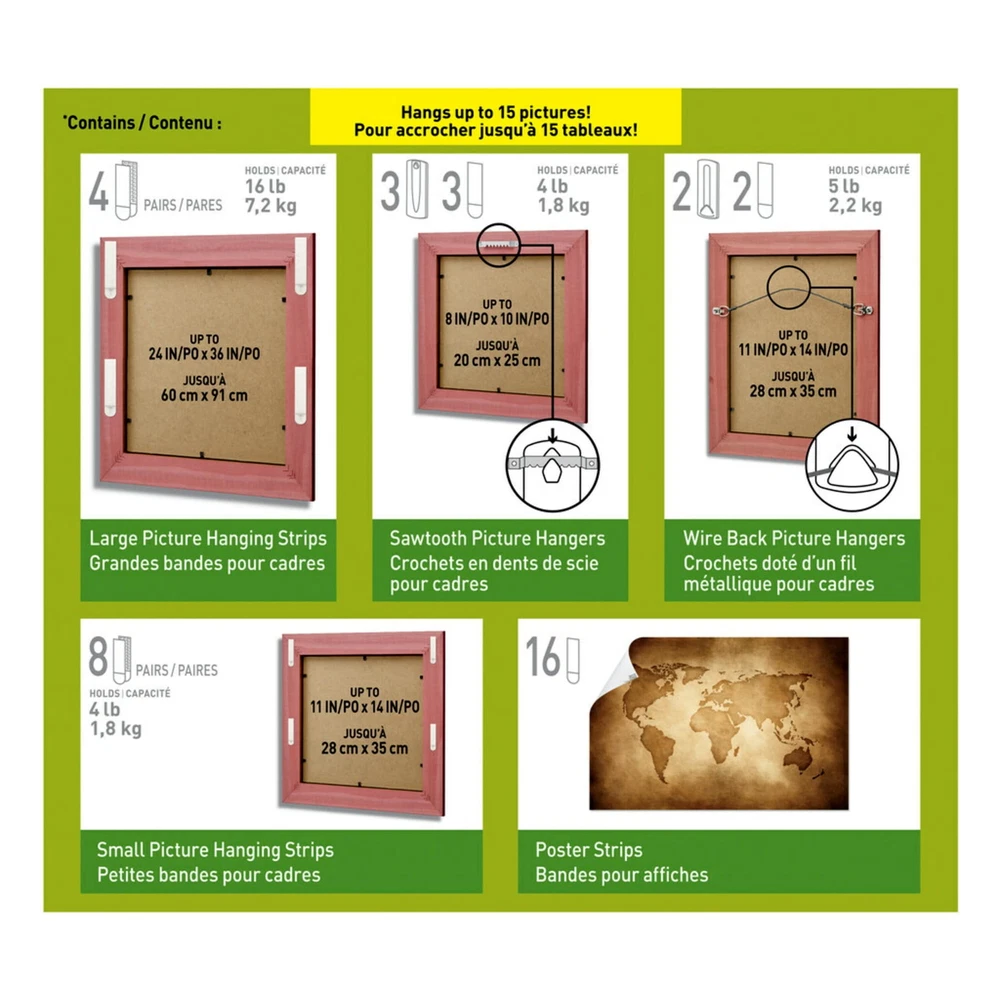 Decorate how you want, when you want without damaging your walls. Command Picture Hanging Strips let you fearlessly hang pictures without nails or tools. Not just for picture frames, these wall hangers are also great for creating a gallery wall, hanging college dorm decor, wooden letters, nursery décor, and more. These picture frame hangers click together to lock in place and keep your pictures level. When you're ready to redecorate your space, the Command Strips remove cleanly and damage free. On Oct 31, 2024 at 21:47:30 PDT, seller added the following information: