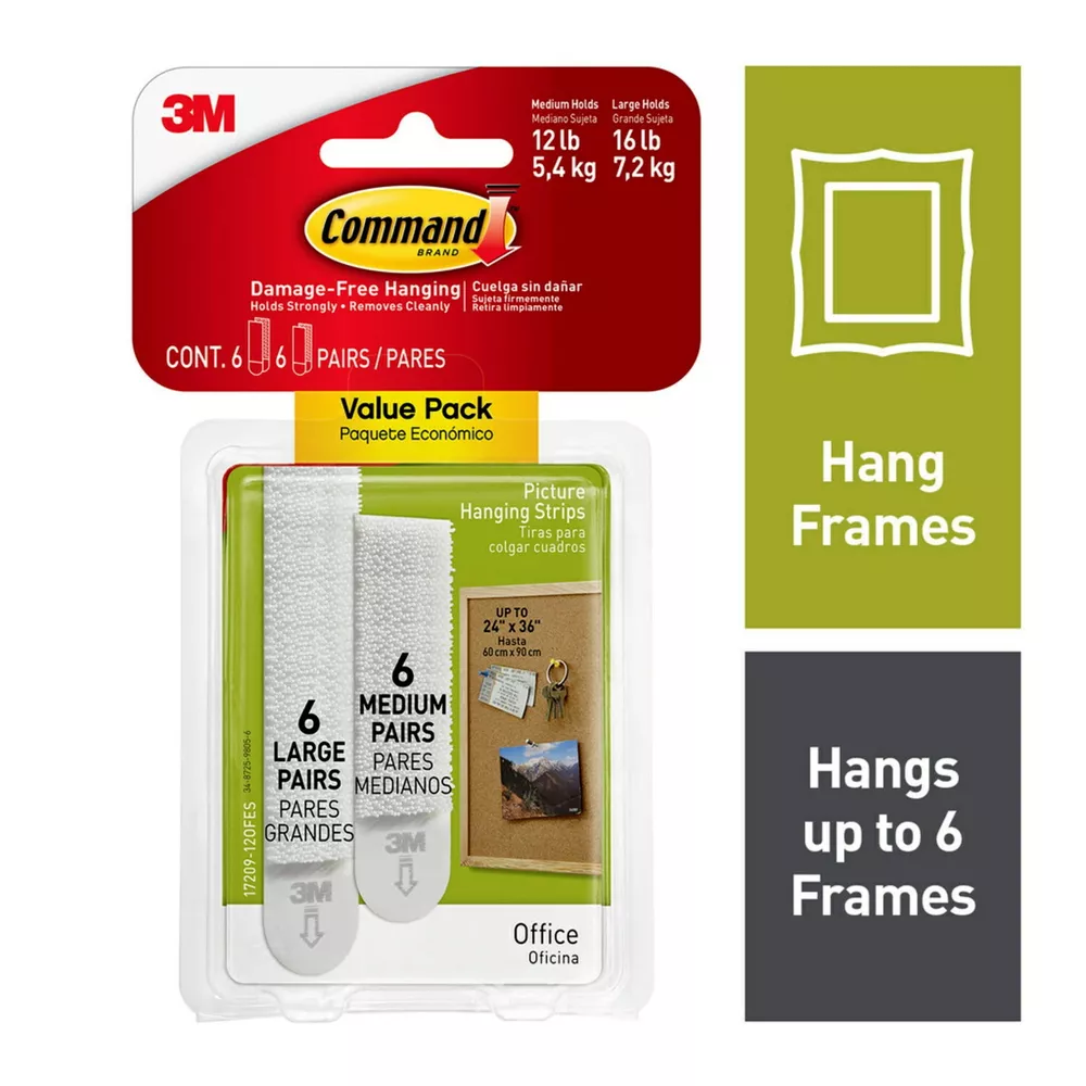 Organize damage-free with Command. Find decorating products and inspiration on the Command Brand Page. Decorate how you want, when you want without damaging your walls. Command Picture Hanging Strips let you fearlessly hang pictures without nails or tools. Not just for picture frames, these wall hangers are also great for creating a gallery wall, hanging college dorm decor, wooden letters, nursery décor and more. These picture frame hangers click together to lock in place and keep your pictures level. When you're ready to redecorate your space, the Command Strips remove cleanly and damage free. On Oct 31, 2024 at 21:06:38 PDT, seller added the following information: