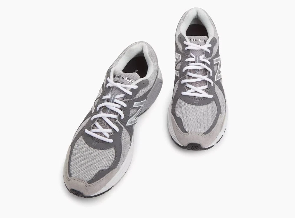 Elevate your sneaker game with these Comme des Garcons x New Balance MR860 Leather Sneakers in Gray. Crafted with high-quality leather, these sneakers are perfect for any athletic occasion. The unique design features the iconic Comme des Garcons logo and the New Balance X product line. These sneakers are perfect for men who want to make a statement with their footwear. The gray color is versatile and can be paired with any outfit. Ideal for athletic activities or casual wear, these New Balance 860 sneakers are a must-have for any sneaker enthusiast.
