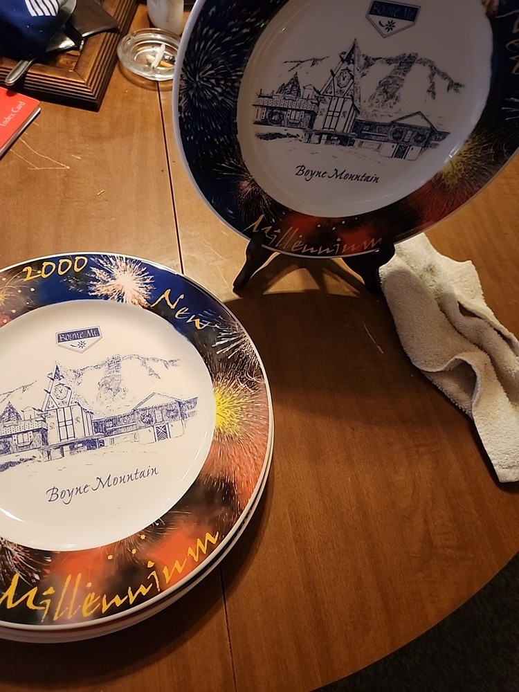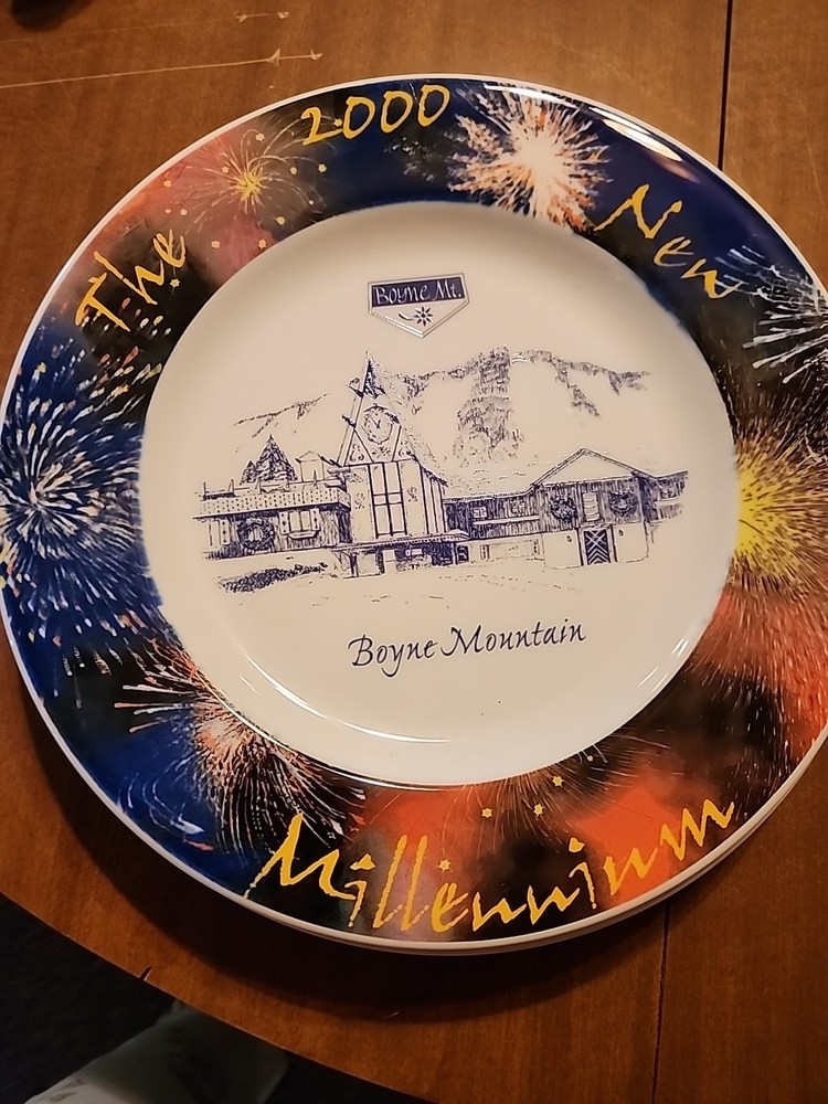 This is Boyne Mountain These Commemorative Decoration Wall Plates is a decorative collector plate featuring a design by Hamilton. Made of ceramic, it showcases a multicolor New Year's theme, making it a unique addition to any collection or home decor. This plate from the 2000-2009 time period adds a touch of style and nostalgia to any space. I have 4 of these large plates. They are heavy duty, so if you buy set of 4 for $60, you could use them for dinner plates for a special occasion. They say New Year's Millenium 2000