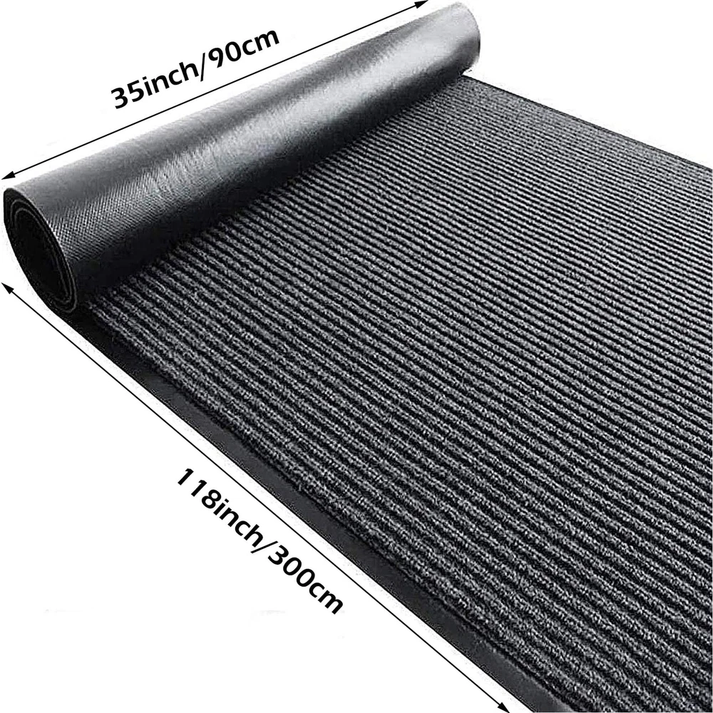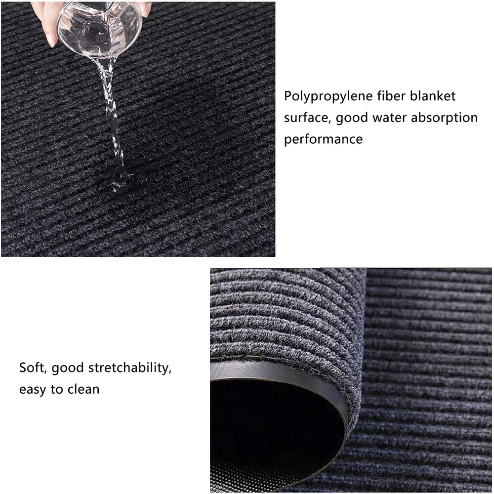 High quality Material: Our commercial entrance rug 3x10 is made of high quality polyester and rubber, effectively remove dirt and soft enough to not damage your shoes or hurt your feet Non-Slip PVC Backing: The slip skid entrance mat has PVC edge and backing, which means it will sit completely. flat on the floor and will not turn up at the corners, or move on any hard surface, keeps the mat in place Water Absorption: This commercial rugs with rubber backing is water-absorbent and can be used even on long rainy or heavy snow days, effectively preventing rain, dust and dirt from entering the room Easy to Cut and Clean: The commercial floor mat size: 90 x 300 cm, thickness 0.6 cm. The office runner rug can be cut to any size with scissors, Its hard wearing polypropylene top does not shed its pile and can be scrubbed,machine washed,power hosed or scrubbed for easy cleaning.Drys quickly Widely Application: The heavy duty entryway rug can be used indoors and outdoors, and can also be used in homes, offices, restaurants, beauty salons, schools, public places, and commercial purposes