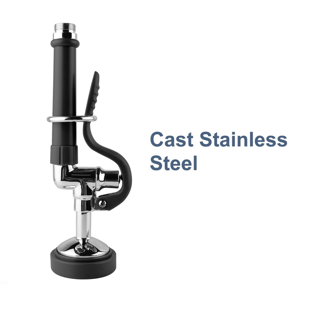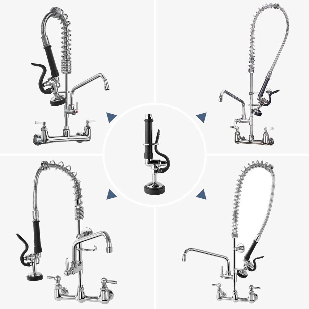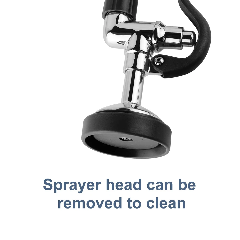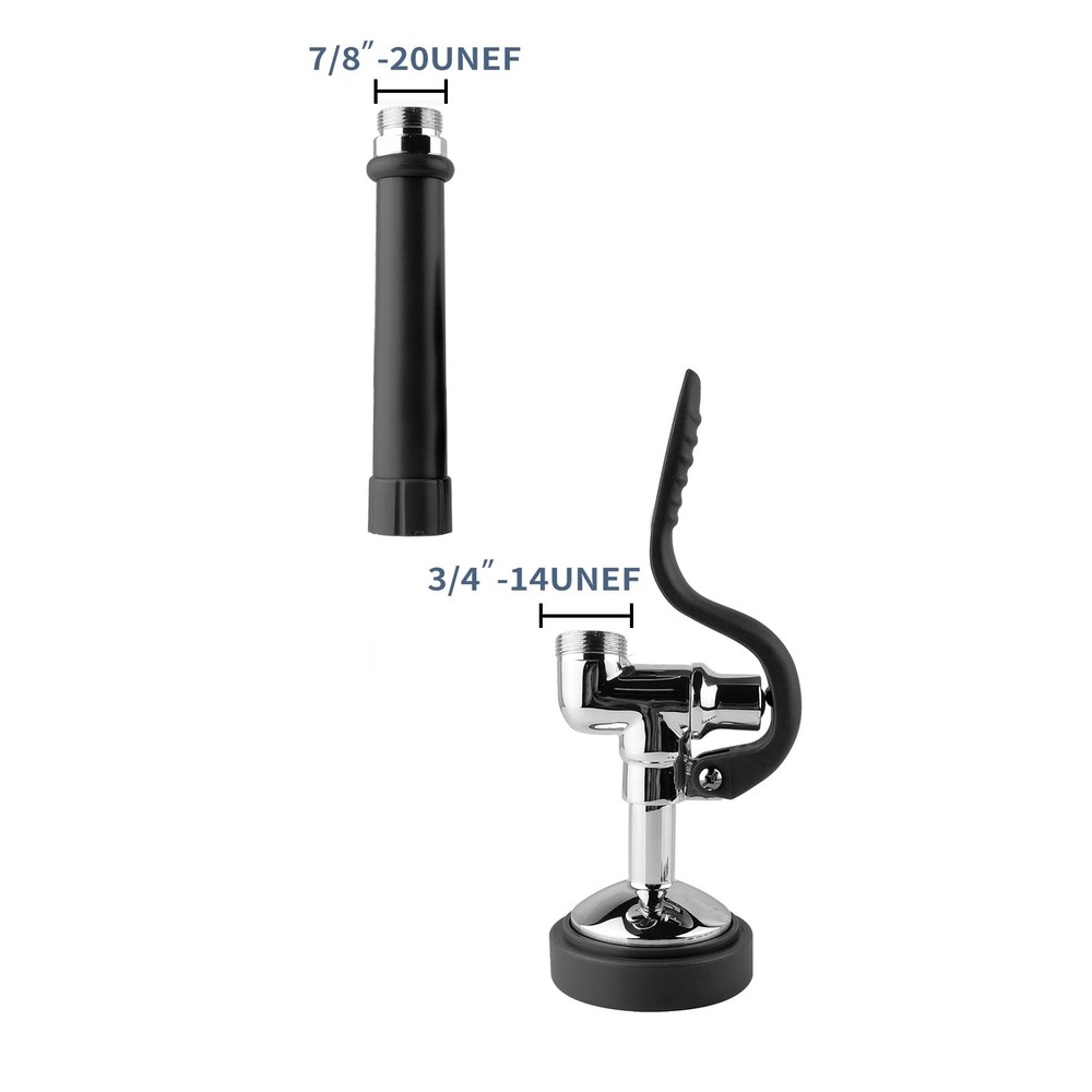 Commercial sink sprayer pre rinse spray valve,1.42GPM high pressure commercial faucet sprayer head,dish sprayer nozzle with handle fits for most commercial kitchen sink faucet 【Pre Rinse Sprayer】pre rinse sprayer is designed for all kinds of commercial faucet.It is widely used for restaurant,home kitchen,hotel,Coffee shops or other heavy-duty commercial kitchen. 【Dish Sprayer Size】The handle end thread is 7/8"-20UNEF,if you don't need the handle then the end thread is 3/4"-14UNEF. 【High Pressure Spray Valve】This pre rinse spray valve provides 1.42 GPM high pressure when the handle is pressed down.It can enhance your faucets flushing capacity,can meet your any washing needs. 【Hold-down Ring】Secure the handle with an o-ring.It can help you hold the handle,free your hand.Then this sprayer keeps working. 【Commercial Sink Sprayer Head】Our pre rinse sprayer features rubber nozzles that avoid hard water and limescale buildup,easy handle and maintenance.The commercial faucet sprayer head can be removed to clean.
