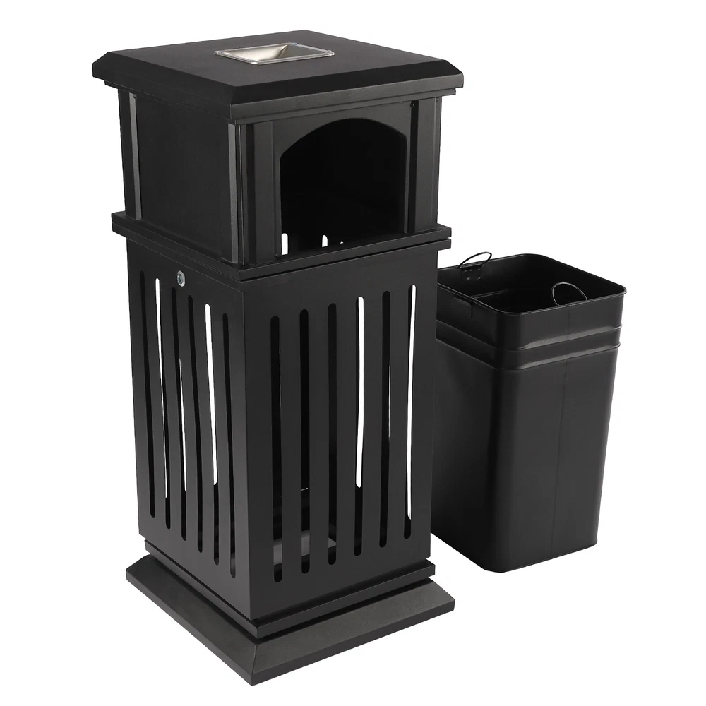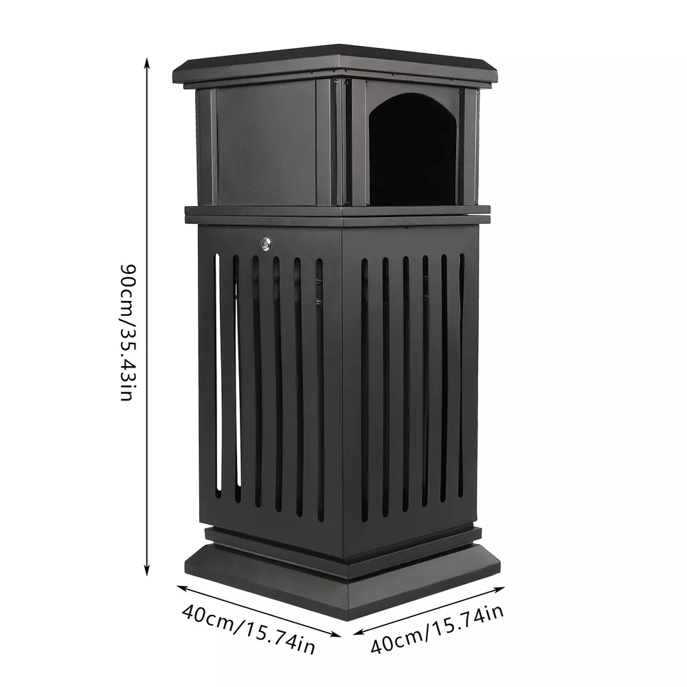 Commercial Trash Can Restaurant Outdoor Large Garbage Waste Recycle Bin Black US Black Garbage Can Description An Exquisite and Practical Garbage Can Not Only Helps to Keep the Environment Clean and Fresh but Also Beautifies the Style of the Environment. This Garbage Can Is Made of High-quality Galvanized Sheets and the Exquisite Spraying and Baking Paint Process Can Adapt to Different Indoor and Outdoor Environments to Serve You for a Long Time. Key Features Exquisite Appearance : the Elegant, Antique Black Surface with Smooth Lines and Hollow Panels Create an Exquisite Appearance, Which Can Add a Classical Style to Parks and Other Venues. High-quality Material : the Surface of a High-quality Galvanized Sheet Is Exquisitely Sprayed and Baked, Which Greatly Enhances Its Ability to Resist Corrosion and Impact, Enabling It to Adapt to Different Outdoor/Indoor Environments. Stable Structure : Thickened and Enlarged Base and Regular Rectangular Structure Provide a Stable Structure for the Product to Improve Wind Resistance . Hands-free Garbage Disposal : the Double-sided Enlarged Arch Opening Design Not Only Facilitates the Disposal of Larger Garbage but Also Allows You to Dispose of Garbage Without Touching the Lid, Which Is More Convenient and Hygienic. Large Capacity : the Large Deep Liner Has a Large Capacity of 8.8 Gallons, Which Makes It Suitable for High-traffic Areas Such As Parks, Schools, or Amusement Parks. Large-capacity Trash Cans Can Keep the Ground Clean and Trash-free for a Long Time Without Frequent Cleaning. Installation-free : the Product Is Shipped As a Whole so It Can Be Used upon Receipt Without Installation, Which Is a Time Saver. Stable and Secure : the Lid with Lock Enhances Security to Prevent Theft. for Weather Resistance and to Prevent Vandalism, the Bottom of Weather-resistant Trash Garbage Can Be Fastened with Equipped Screws to the Pavement. Thoughtful Design : This Floor-standing Garbage Can Is a Versatile Combination of an Ashtray and Trash Receptacle, Not Only Offers Convenient Hands-free Disposal of Cigarettes and Trash at One Location but Also Can Extinguish and Discard Cigarette Butts for Effective Fire Prevention. Easy to Clean : the Smooth Surface, Simple Structure, and Removable Liner Make It Easy to Clean. You Just Need to Wipe It Gently with a Damp Cloth. Protective Packa ging: the Sturdy Cardboard Box Provides Full Protection for the Product to Avoid Damage in Transit. Customer Service : We Aim to Provide Quality Products and Services. If You Have Any Problems, Please Feel Free to Contact Us. We Will Reply and Solve the Problem for You As Soon As Possible. Details Flip Lid : the Top Flip Lid Not Only Prevents Rain and Snow from Entering but Also Makes It Easy to Clean up the Garbage. Carrying Handles : the Two Carrying Handles of the Inner Liner Not Only Facilitate Movement but Also Prevent Hands from Directly Touching the Garbage. Round Edges : the Round Edges Can Protect Hands from Scratches. Application It Applies to Indoor or Outdoor Places, Such As Patios, Parks, Lobbies, Shopping Malls, Courtyards, Garages, Offices, Halls, Etc. Specification Material: Galvanized Sheet Color: Black Process: Spraying Plastics and Baking Paint Style: Modern Shape: Rectangular, Cylindrical Opening Mechanism: Open-top Special Feature: Entrance, Anti-slip Capacity: 40l/8.8gal Gross Weight: 16kg/35.3lbs Net Weight: 15kg/33lbs Package Size: 92*42*42cm/36.22*16.53*16.53in Product Size: 40*40*90cm/15.8*15.8*35.5in Package Included 1*Garbage Can 1*Key 2*Screws Notes For Safety, Please Completely Extinguish the Cigarette Before Putting It into the Ashtray. Please Allow the Slight Color Difference Caused by the Shooting Light and 1-3cm Error Due to Manual Measurement. Please Make Sure You Do Not Mind Before You Order. Payment Delivery details Terms of sales About us Contact us Payment We accept ebay payment 。 Fees such as import duties, taxes are not included in the item price or shipping costs. These charges are the buyer's responsibility. Delivery details Shipping: 2-9 working days to: USA Terms of sales We maintain high standards of excellence and strive for hundred percent customer satisfaction. Feedback is very important to us. We hope that you contact us immediately before you give neutral or negative feedback, so that we can address your concerns. It is impossible to address issues if we do not know about them! About us Your satis faction is our ultimate goal. We work hard to earn your trust and future business. Our certified technicians have tested each item before shipping. The unit comes with 1 year limited warranty on all manufacturing defects. a) If you receive a defective item, you may return it or ask for a discount. Please contact us within 14 days after you receive the package. b) What you returned must be intact and in its original packaging as re? u. Customer is responsible for shipping costs of the returned item. c) We will cover the cost of shipping back t with the shipping rate indicated in the registration page. We will send you a new unit or refund the full payment you paid. Thank you. Contact us Business Hour Business Hour: Monday To Friday: 8:30 AM to 5:00 PM (Beijing China time) Due to time zones, our reply to your questions may not be immediately. But within above working time, we will reply your email within 24 hours. If it's non-workdays, please kindly be patient and wait till Monday. Please contact us with ebay message. Please feel free to contact us if you have any questions. Monday To Friday: 8:30 AM to 5:00 PM (Beijing China time) Due to time zones, our reply to your questions may not be immediately. But within above working time, we will reply your email within 24 hours. If it's non-workdays, please kindly be patient and wait till Monday. Please contact us with ebay message. Please feel free to contact us if you have any questions. Transportation does not include Canary Islands Shipping Notice Can not ship to Puerto Rico,Alaska/Hawaii It