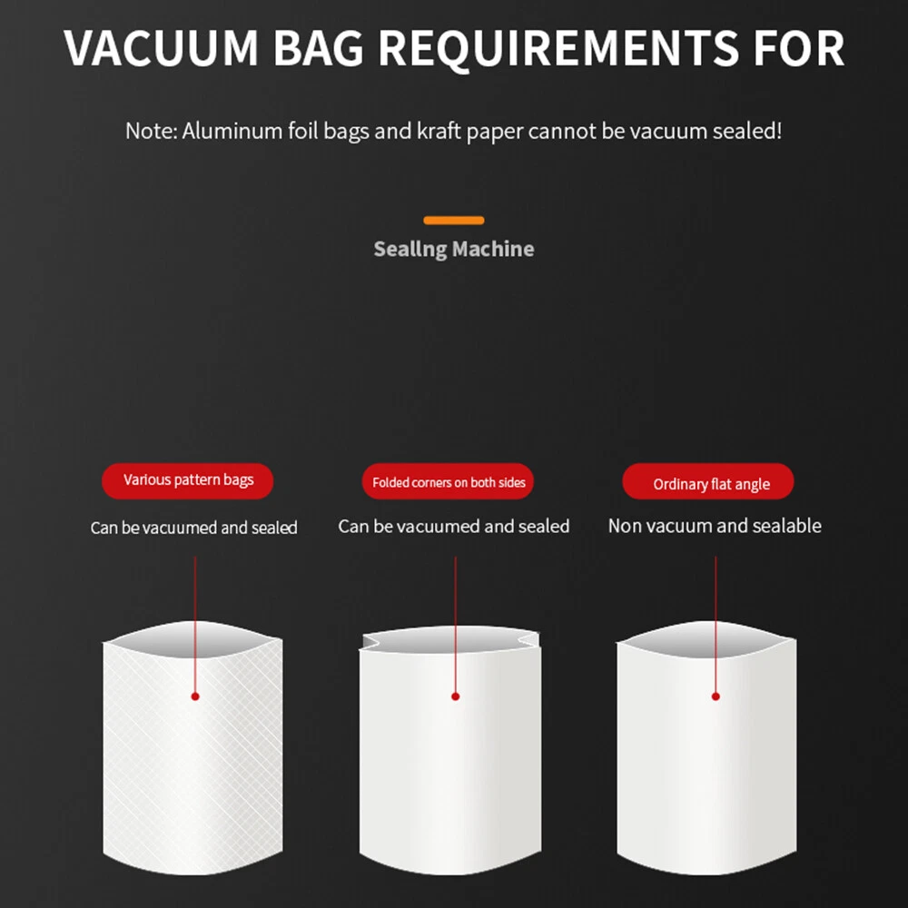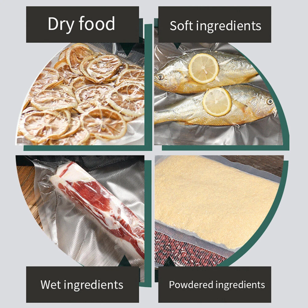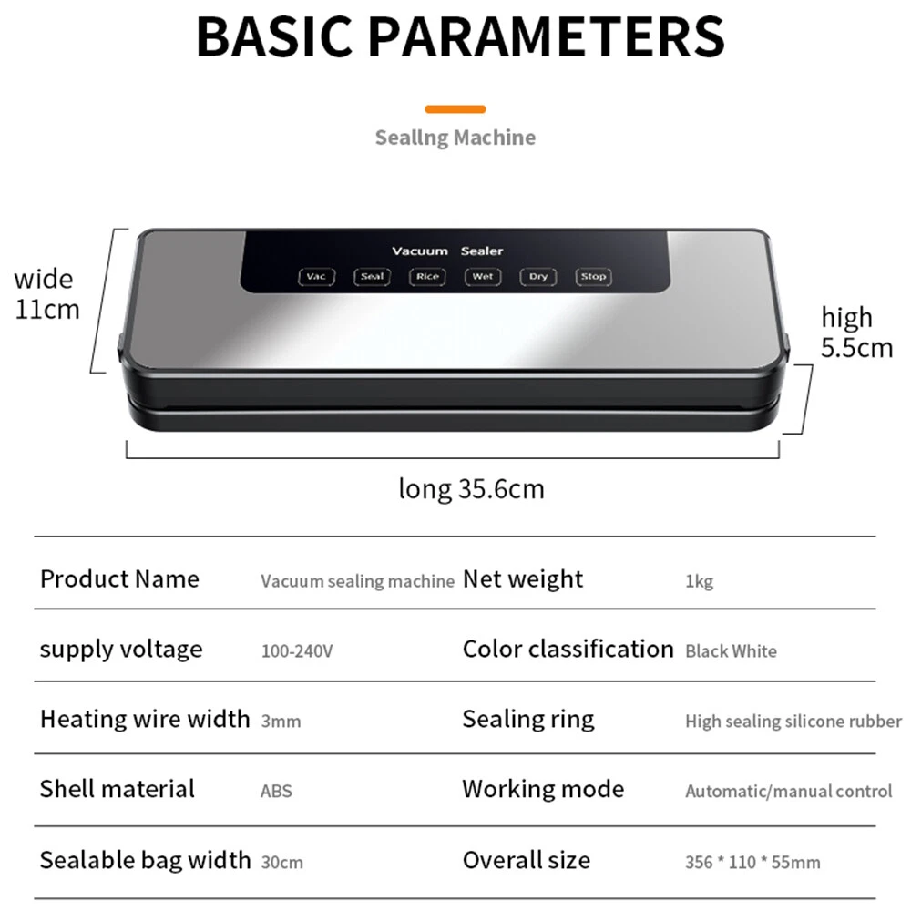 Store Categories Store Categories Other Automatic Food Saver Vacuum Sealer Seal A Meal Machine Sealing Kit w/ Free Bags Product Description 🦐 【KEEP FOOD FRESH & SAVE MONEY】: 6 IN 1 vacuum Sealer Machine with advanced air sealing technology, subjected to harsh laboratory testing, designed to provide a secure, airtight heat seal to keeps food to stay fresh and flavorful up to 5 times longer, preventing spoilage and food waste, helping save money and space. Make the automatic food sealer be a good helper in your life. 🦑 【65 KPA STRONG SUCTION】: Fast and effictive vacuum sealer with upgraded powerful air sealing system technology. Compare with other low suction food sealer machine, stronger suction and high-quality extended heat sealing strip provide the optimal vacuum level and airtight seal, can complete the vacuum and sealing within 10-20 seconds quickly. The most special part is that it can vacuum seal moist food like liquids, soup. 🥐 【THREE FOOD TYPE WET&DRY MODES】: In order to seal the wet and juicy food with the best vacuum treatment, you can select the moist mode through the button. No liquid food use the normal mode, and fragile&soft foods use the gentle modes. Using the external vacuum function, you can easily vacuum the jars, containers, wine bottles, storage bags and so on. 🥑 【SEPARATED DESIGN EASY CLEAN】: Our product is a separated design, you can take of the sinks to clean the machine base. Easily clean the food residues or liquids in the vacuum chamber with tissue or rag. 🥩 【FULLY STARTER KITS】: 1 x Compact Vacuum Sealer, 30 x BPA-free Vacuum Sealer Bag, 1 x Detailed User Manual. 1 x exhaust pipe We are committed to providing customers quality service. Product description Dry and Moist Foods: Choose the correct Dry/Moist mode for different types of ingredients to get the best seal. Keep Food Fresh: Remove the air that causes food spoilage to extend the 5X edible time. Air-Tight Vacuum Seal: Tightly seal the ingredients to save storage space in the refrigerator and avoid tie the flavors together. Payment Policy Payment Policy Copyright © 2023 Dianxiaomi