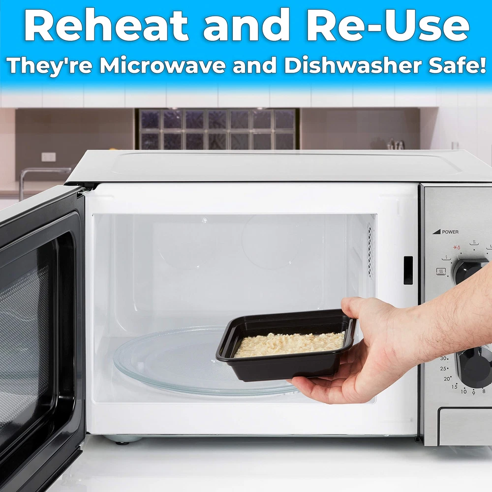 Our super-strong plastic food prep boxes stand up to the freezer, microwave, and dishwasher so you can use them again and again. Restaurants and delis rely on our prime-quality, reusable containers for hot and cold liquid and food, refrigerator and freezer storage and reheating in microwaves. Durable polypropylene walls won't leak, melt or warp, so you can use the same container multiple times. Get ahead of your lunch or dinner rush - Our stackable cup and cover sets maximize storage space and make healthy food prep easy. Prepare and portion soups, sides, and salads with ease. Our black, rectangular containers and lids keep prepped food fresh and save space by stacking on fridge or freezer shelves. They are microwavable to warm up meals and make service fast and efficient. They're great as reusable storage containers for pantry, fridge or freezer. Our 25-count container and lid sets make ordering the perfect amount easy. These ultra-versatile, stackable containers make storage and organization a breeze The best alternative to expensive storage systems or cheap plastic bags, our disposable deli containers can be used anywhere. They are the perfect size for meals, snacks, arts and crafts supplies, slime, nails, and screws. What's in the Box? A 25-count set of 12 oz. black, plastic microwavable containers and airtight lids, measuring 5.5in. x 4.5in. each. Ideal for restaurant, deli, or at home use. Guaranteed for Life! If you aren’t completely satisfied with your order, simply email us, and we will respond within 24 hours to make it right even on the weekends. We absolutely assure your satisfaction! HEAVY DUTY PLASTIC = MICROWAVE AND FREEZER SAFE! Our commercial-grade, recyclable containers won't melt, warp or leak. Use them for serving hot or cold sides, storing dry goods, warming soup and broth, or freezing leftover foods. BPA-FREE CONTAINERS ARE 100% SAFE FOR EVERYONE. These premium trays are made of food-safe, recyclable plastic. Restaurants and delis use our microwave-safe boxes for prepping orders, hot or cold sides, fridge or freezer storage. SATISFACTION ASSURED FOR LIFE. We stand by all of our 12-ounce plastic deli containers. If at any point you're not 100% happy, just send us an email, and we promise to make it right! SUPER-TIGHT LIDS MEAN NO LEAKS AND HAPPY CUSTOMERS. Pros trust our clear, leakproof lids to seal soup, ramen, and sauce inside the black portion containers instead of messing up takeaway orders, delivery bags, or customers' clothes. KEEP FOOD FRESH LONGER AND CUT COSTS. Commercial kitchens control costs with a bulk supply of our 12 oz. container and lid sets. These airtight containers keep food fresh for days without spoiling for worry-free meal prep.