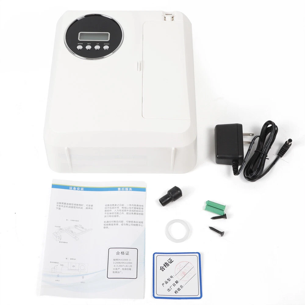 Specifications: Covers: 1,100 sq.ft (100 m²) Power: DC 12V 5W Consumption: 1 ml. per hour Dimensions: 169*86*230 mm(H*W*L) Bottle Capacity: 200 ml. can last 30-40 day Refill: Monthly or depend on your working time Weight: 1.4 KG Color: Modern White Application: Home ,Spa ,Hotel Lobby, Retail Store, Casino, clubs,airport and many commercial place . How To Use Step 1: Add Oil into bottle Step 2: Connect power Step 3: Set up your local time Step 4: Set up work time you want. How To Set Up Time For Machine For each machine, it needs to set up your local time, and then set up working time you want. only when your local time is within working time, machine will work. There are 3- 4 Events on led display,it is composed by 4parts For example: Event 1 on, event 1 Off, Continuous working ti Commercial Essential Oil Diffuser Silent&Waterless HVAC Scent Diffuser Fragrance Machine Scent Diffuser 200ml Scent Diffuser Dc 12v Home Spa bar Products: Specifications: Covers: 1,100 Sq.ft (100 M²) Power: Dc 12v 5w Consumption: 1 Ml. per Hour Dimensions: 169*86*230 Mm(H*W*L) Bottle Capacity: 200 Ml. Can Last 30-40 Day Refill: Monthly or Depend on Your Working Time Weight: 1.4 Kg Color: Modern White Application: Home ,Spa ,Hotel Lobby, Retail Store, Casino, Clubs,Airport and Many Commercial Place . How to Use: Step 1: Add Oil into Bottle Step 2: Connect Power Step 3: Set up Your Local Time Step 4: Set up Work Time You Want. How to Set up Time for Machine For Each Machine, It Needs to Set up Your Local Time, and Then Set up Working Time You Want. Only When Your Local Time Is Within Working Time, Machine Will Work. There Are 3- 4 Events on Led Display,It Is Composed by 4parts for Example: Event 1 on, Event 1 off, Continuous Working Time. Package Includes: 1x Device 1x Power Cord Payment Delivery details Terms of sales About us Contact us Payment We accept ebay payment 。 Fees such as import duties, taxes are not included in the item price or shipping costs. These charges are the buyer's responsibility. Delivery details Shipping: 2-9 working days to: USA Terms of sales We maintain high standards of excellence and strive for hundred percent customer satisfaction. Feedback is very important to us. We hope that you contact us immediately before you give neutral or negative feedback, so that we can address your concerns. It is impossible to address issues if we do not know about them! About us Your satis faction is our ultimate goal. We work hard to earn your trust and future business. Our certified technicians have tested each item before shipping. The unit comes with 1 year limited warranty on all manufacturing defects. a) If you receive a defective item, you may return it or ask for a discount. Please contact us within 14 days after you receive the package. b) What you returned must be intact and in its original packaging as re? u. Customer is responsible for shipping costs of the returned item. c) We will cover the cost of shipping back t with the shipping rate indicated in the registration page. We will send you a new unit or refund the full payment you paid. Thank you. Contact us Business Hour Business Hour: Monday To Friday: 8:30 AM to 5:00 PM (Beijing China time) Due to time zones, our reply to your questions may not be immediately. But within above working time, we will reply your email within 24 hours. If it's non-workdays, please kindly be patient and wait till Monday. Please contact us with ebay message. Please feel free to contact us if you have any questions. Monday To Friday: 8:30 AM to 5:00 PM (Beijing China time) Due to time zones, our reply to your questions may not be immediately. But within above working time, we will reply your email within 24 hours. If it's non-workdays, please kindly be patient and wait till Monday. Please contact us with ebay message. Please feel free to contact us if you have any questions. On Jun 3, 2025 at 19:33:04 PDT, seller added the following information: