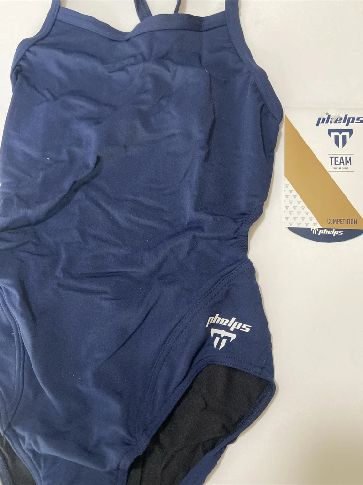 Comp Mid back solid Navy Blue Phelps Bathing suit Size 28 Swimsuit