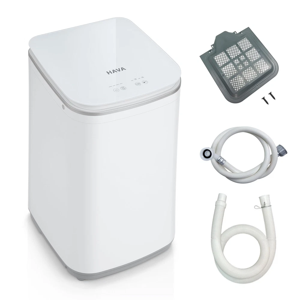 【Compact Design】 The Portable Washing Machine measures 16.53 x 17.91 x 28.5 inches, only utilizing under 2.15 sq. ft. of floor space. One tub serves both washing and spinning functions. Requiring minimal storage space, this compact washer is ideal for small spaces like dorms, apartments, and RVs. 【Full Automatic Functionality】 The Mini Washing Machine is fully automatic and finishes the washing task with the press of a button, freeing you from daily handwashing. It offers 8 wash programs and 4 water level settings designed for various needs, and is able to perform a spin-dry task alone. 【Quality Materials & Elegant Design】 The Portable Washing Machine uses stainless steel on its tub for durability and easy maintenance. The top lid is made of reinforced glass with a soft-close mechanism to deliver a better user experience. Touch-sensitive buttons as well as an LED display indicating the remaining time adds to the elegant appearance. 【Thoughtful Features】 The Washer allows a 24-hour delay for the start of a wash cycles to suit your schedule. Run the machine during off-peak hours to save on the electricity bill. The Child Lock helps to freeze the control panel to ensure it keeps running smoothly. The Tub Clean program activates a thorough cleaning process from the inside out to ensure consistently good washing performance. 【Quality Control Note】 Each unit of undergoes manufacturer's rigorous quality tests to guarantee full functionality, so having a little amount of residual water in the unit is NORMAL. provides a one-year warranty for all new units. If you have any questions about the product, please feel free to contact us and we will try our best to help you! 【8 Wash Program Options】 The compact washer offers 8 wash programs, including Normal, Quick, Gentle, Heavy, Soak, Rinse & Spin, Spin, and Tub Clean, and they operate with 4 water level settings, quietly at less than 60 dB. 【Package Contents】 1 x T01 Washing Machine, 1 x User Manual, 1 x Water Supply Hose, 1 x Drain Hose, 1 x Protective Bottom Plate, 2 x Screws. 【Note for Draining】 The T01 does not drain upwards. Please make sure that the drain hose lies flat on the floor and no part of the drain hose is more than 4 inches above the floor.