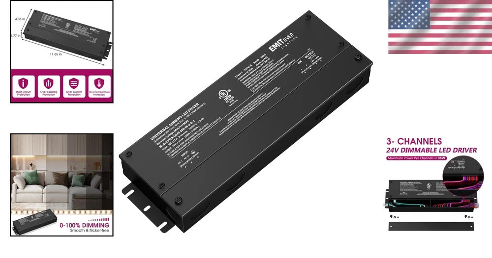 Compact 3-Channel Dimmable LED Power Supply with Built-In Safety Protections ‹ › ‹ › ‹ › ‹ › ‹ › ‹ › ‹ › ‹ › ‹ › Compact 3-Channel Dimmable LED Power Supply Experience unparalleled flexibility with this state-of-the-art power supply, engineered for a variety of high-performance dimming applications. Key Features: 5-in-1 Dimming Capability: Seamlessly compatible with ELV, MLV, TRIAC, 0-10V, 1-10V, 10V PWM, and Potentiometer dimming technologies. Versatile Driver: Designed for use with standard MLV/ELV/Incandescent TRIAC (forward phase) dimmer switches, as well as secondary side control systems. Premium Construction: Encased in a sleek aluminum enclosure, this 288W dimmable LED driver features a low profile design for easy integration into any application. Built-in Safety Protections: Equipped with short-circuit, overload, and over-temperature protection to ensure optimal performance and longevity. Specifications: cUL us Listed, Class II, Class P, Type HL, and FCC compliant, suitable for damp locations. Compact & Efficient: With only a 1.5-inch height and free air convection cooling, this dimmable power supply maintains efficiency in tighter spaces. Why Choose Our Dimmable LED Power Supply? Transform your lighting experience effortlessly with our Compact 3-Channel Dimmable LED Power Supply. Whether working with elite MLV systems or modern 0-10V dimming, this premium-grade power supply offers reliable, versatile solutions for residential and commercial spaces alike. With robust construction and essential safety features, you can light up your world with confidence. Plus, enjoy peace of mind with our 5-Year After-Service guarantee. Elevate your lighting installations – choose our Compact Dimmable LED Power Supply today and illuminate your spaces with exceptional control! Shipping Free & Fast Shipping - We offer free shipping to most of the USA with a normal delivery time of 3-7 days. However, due to the current situation, additional delivery time (up to 3 weeks) may be required for some items. Alternative Carriers - We may use alternative carriers (e.g. USPS, FedEx, UPS, etc.) to ensure your package arrives safely and on time. Due to the use of multiple carriers, we are unable to provide a tracking number automatically. Handling Time - Orders are processed and shipped within 1-2 business days of receiving cleared payment. Shipping Restrictions - Shipping to Alaska, Hawaii, Puerto Rico, Guam, and other US territories may incur shipping charges or delivery restrictions. Please contact us before ordering, or your order can be refunded/cancelled. State Restrictions - There may be restrictions based on your state of purchase. For example, certain items may not be shipped to California due to state regulations. Contact for Tracking Updates - If you require tracking updates or have any concerns about the delivery of your order, please feel free to contact us, and we will be happy to assist you. Return Please see our eBay Return Policy. Thank you. Payment We accept all major credit cards, PayPal, and Apple Pay for your convenience. Your payment information is secure and encrypted to ensure a safe and seamless transaction. Please complete your payment within 3 days of purchase to avoid any delays in shipping. Feedback Your feedback is extremely important to us. We strive to provide the best products and customer service possible. If you are satisfied with your purchase, please take a moment to leave us a positive review. If you have any concerns or issues with your order, please contact us before leaving negative feedback. We are committed to resolving any problems and ensuring your satisfaction. Contact Us If you have any questions or concerns, please feel free to reach out to our customer support team. You can contact us through the eBay messaging system. We are available Monday to Friday, 9:00 am to 5:00 pm EST, and we will do our best to respond to your inquiry within 24 hours. Thank you for supporting our small family business! UPC: Not Set Item Diameter: Not Set Item Height: Not Set Item Length: Not Set Item Weight: 5.45 pounds Item Width: Not Set Product Line: Not Set Unit Quantity: 1 Features: Dimmable,Waterproof,Built-in Protection,3-Channels,Low Profile,Free Air Convection Cooling,Short-Circuit Protection,Over-Load Protection,Over-Temperature Protection Material: Aluminum Department: Adults Compatible Product: LED Light Smart Home Protocol: None Smart Home Compatibility: Lutron,Leviton Labels & Certifications: Not Set Brand: Unbranded Type: LED Driver Lighting Technology: LED Number in Pack: 1 Current Type: AC Connectors: Not Set Voltage: 24 V Output Voltage: 24 V Bulb Shape Code: Not Set Amperage: Not Set Power: 288 W Color: Not Set Power Source: Corded Electric Bulb Wattage: Not Set MPN: Not Set Model: Not Set Installation Area: Indoor Power Consumption: 288 W IP Rating: IP67 Style: Modern LED Chip Code: Not Set Pattern: Not Set Year Manufactured: Not Set Country/Region of Manufacture: Not Set LED String/Strip Type: Not Set Compatible Brand: Not Set Compatible Model: Not Set Manufacturer Warranty: Not Set Unit Type: lb Personalized: Not Set