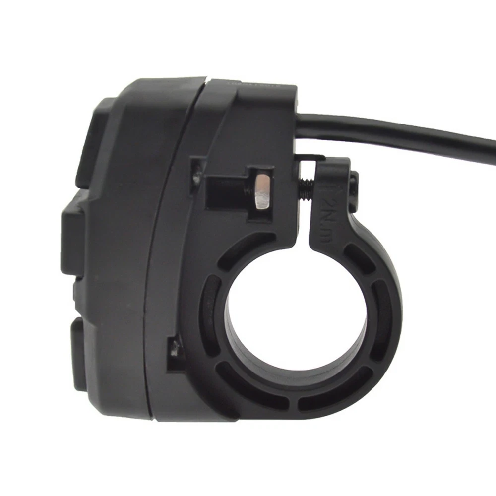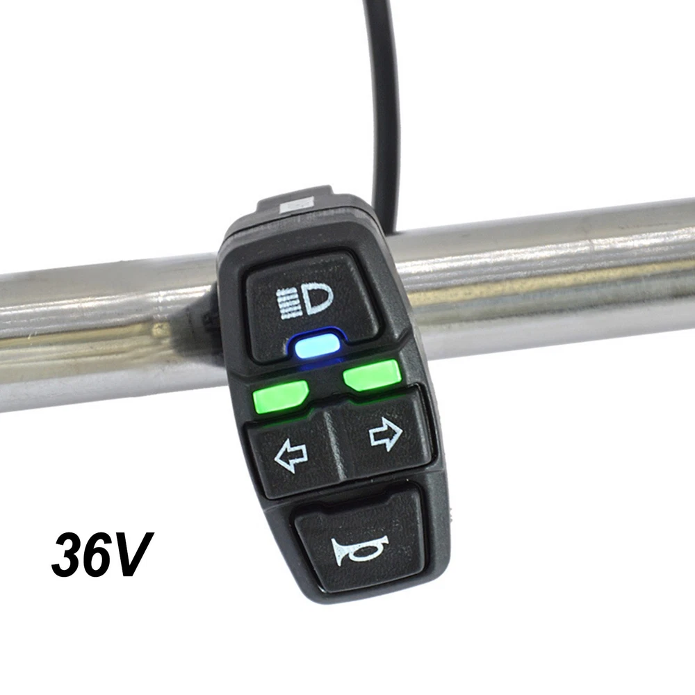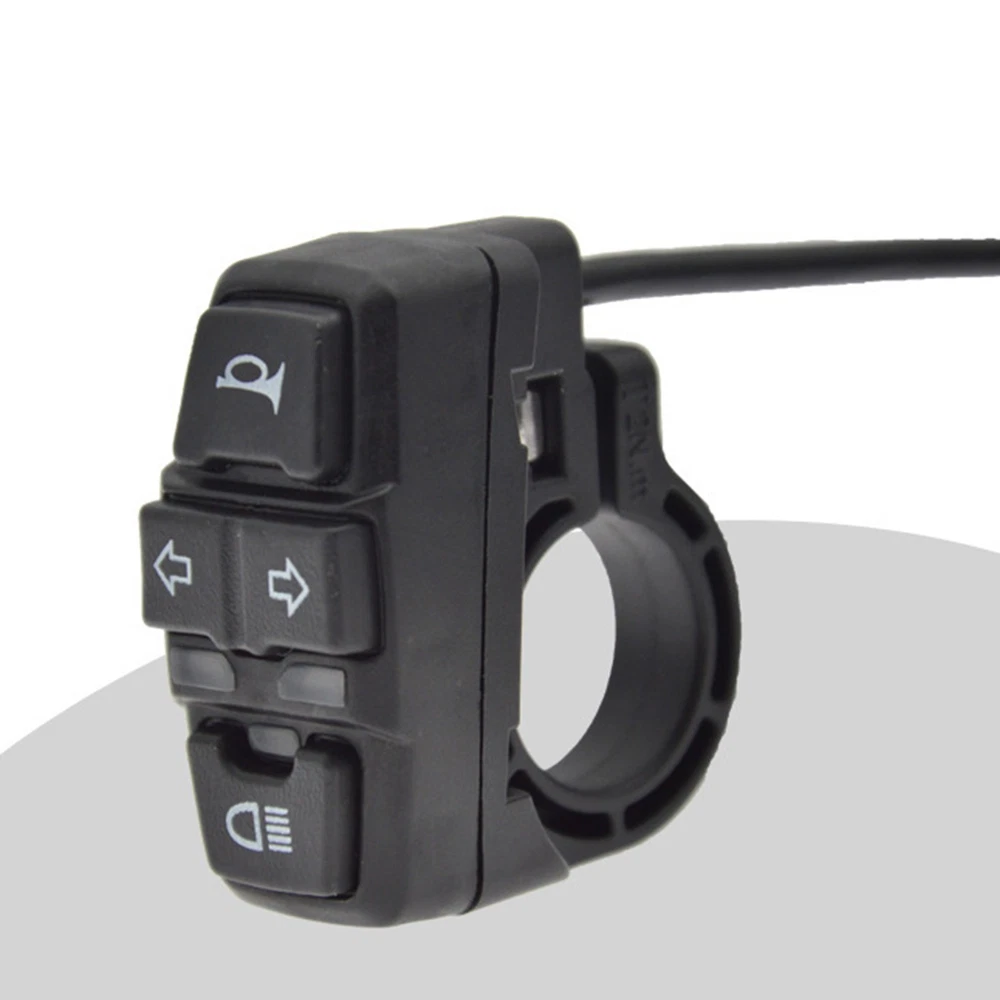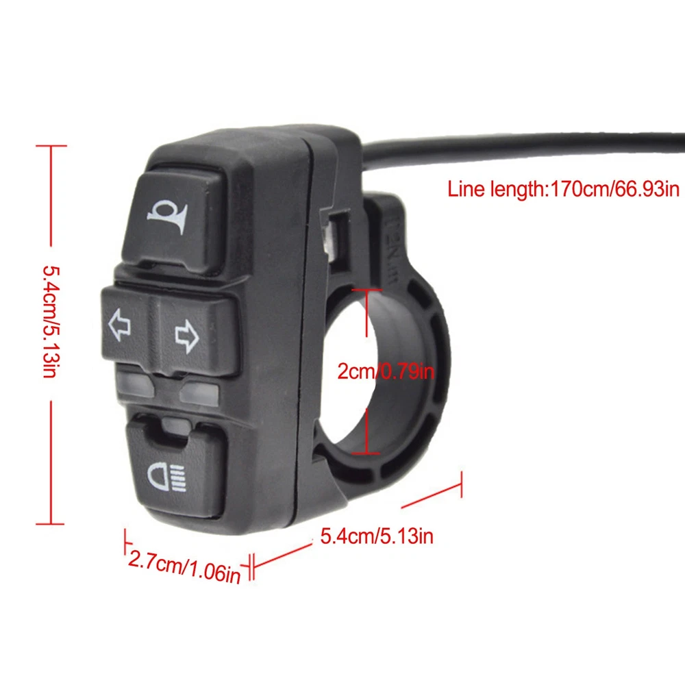 Features: *This handlebar switch is made of high-quality nylon material, strong, waterproof, sturdy and for long-term use. *The switch is small in size, easy to assemble, suitable for handlebars with a diameter of 2 cm. *Three-in- function, headlight, , turn signal switch, switch. *Compact and lightweight, perfect match with other accessories, suitable for any road bike, motorcycle, electric bike, scooter, . *The switch is easy to install-wire connection for easy access and control, bringing you a better driving experience. Specific ation: *Material:Nylon *Color:black *Size:5.4*5.4*2.7CM *Specification:36V、48V Package Contents: 1*Front light turn signal switch Note: 1. The real color of the item may be slightly different from the pictures shown on website caused by many factors such as brightness of your monitor and light brightness. 2. Please allow slight manual measurement deviation for the data.