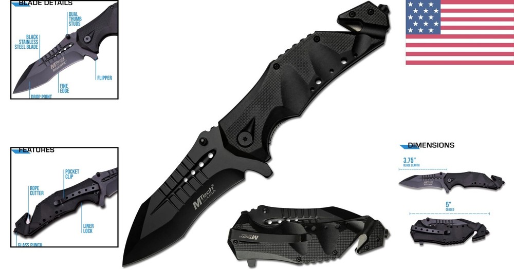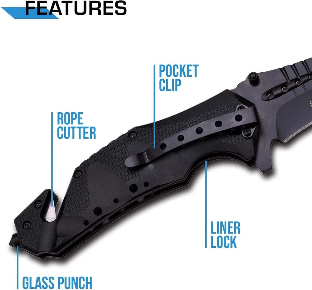 Versatile Folding Knife with Black Stainless Steel Blade - Ideal for Outdoors ‹ › ‹ › ‹ › ‹ › ‹ › ‹ › ‹ › ‹ › ‹ › ‹ › ‹ › Versatile Folding Knife with Black Stainless Steel Blade An essential companion for the outdoor enthusiast, our Versatile Folding Knife combines functionality with an elegant design, ensuring you are always prepared for any situation. Key Features: Rapid one-handed deployment thanks to the spring assist mechanism. Locks securely into place with a reliable liner lock for safety during use. 3.75-inch black stainless steel blade with a thickness of 3.5mm, ensuring durability and strength. Easy and fast access with a thumb stud for seamless deployment. Stylish black aluminum handle featuring a sleek cut-out design. Equipped with a pocket clip for convenient and safe carry. Includes a seatbelt cutter and glass breaker for emergencies, making it a versatile rescue knife. Compact size: measures 5 inches when closed, perfect for pocket storage. Embrace Adventure: This folding knife is more than just a tool—it's a lifeline in unexpected circumstances. Whether you’re camping, hiking, boating, or simply enjoying the outdoors, this knife stands ready to assist you in a variety of tasks. From cutting ropes and preparing food to handling emergencies, its robust features are designed to tackle any challenge. Why Choose Our Versatile Folding Knife? Designed for those who appreciate both style and function, this knife offers a perfect blend of elegance and practicality. The thoughtful integration of a seatbelt cutter and glass breaker ensures that you’re equipped for emergencies, while its lightweight construction allows for easy portability. Experience the reliability and craftsmanship suited for your adventurous spirit with our Versatile Folding Knife. Upgrade your outdoor experience—secure your Versatile Folding Knife today! Shipping Free & Fast Shipping - We offer free shipping to most of the USA with a normal delivery time of 3-7 days. However, due to the current situation, additional delivery time (up to 3 weeks) may be required for some items. Alternative Carriers - We may use alternative carriers (e.g. USPS, FedEx, UPS, etc.) to ensure your package arrives safely and on time. Due to the use of multiple carriers, we are unable to provide a tracking number automatically. Handling Time - Orders are processed and shipped within 1-2 business days of receiving cleared payment. Shipping Restrictions - Shipping to Alaska, Hawaii, Puerto Rico, Guam, and other US territories may incur shipping charges or delivery restrictions. Please contact us before ordering, or your order can be refunded/cancelled. State Restrictions - There may be restrictions based on your state of purchase. For example, certain items may not be shipped to California due to state regulations. Contact for Tracking Updates - If you require tracking updates or have any concerns about the delivery of your order, please feel free to contact us, and we will be happy to assist you. Return 30-Day Hassle-Free Returns - We want you to be completely satisfied with your purchase. If you are not, you can return the item within 30 days of receiving it for a full refund or exchange. Easy Return Process - To start a return, simply contact us and we will provide you with a prepaid return shipping label and detailed instructions. Restocking Fee - There are no restocking fees for returns. However, the buyer is responsible for return shipping costs if the return is not due to a seller's error. Refund Processing Time - Refunds will be processed within 5 business days of receiving the returned item in its condition. Payment We accept all major credit cards, PayPal, and Apple Pay for your convenience. Your payment information is secure and encrypted to ensure a safe and seamless transaction. Please complete your payment within 3 days of purchase to avoid any delays in shipping. Feedback Your feedback is extremely important to us. We strive to provide the best products and customer service possible. If you are satisfied with your purchase, please take a moment to leave us a positive review. If you have any concerns or issues with your order, please contact us before leaving negative feedback. We are committed to resolving any problems and ensuring your satisfaction. Contact Us If you have any questions or concerns, please feel free to out to our customer support team. You can contact us through the eBay messaging system. We are available Monday to Friday, 9:00 am to 5:00 pm EST, and we will do our best to respond to your inquiry within 24 hours. Buy it now and enjoy a pleasant shopping experience! : Spring Assisted Knife Blade Type: Clip Point Tools: Spring Assisted Knife Model: Spring Assisted Knife Number of Blades: 1 Color: Black Type: Tactical Handle Material: Aluminum Opening Mechanism: Assisted Blade Edge: Plain Lock Type: Liner Blade Range: 2.76 - 4in. Blade Material: Stainless Steel Dexterity: Ambidextrous