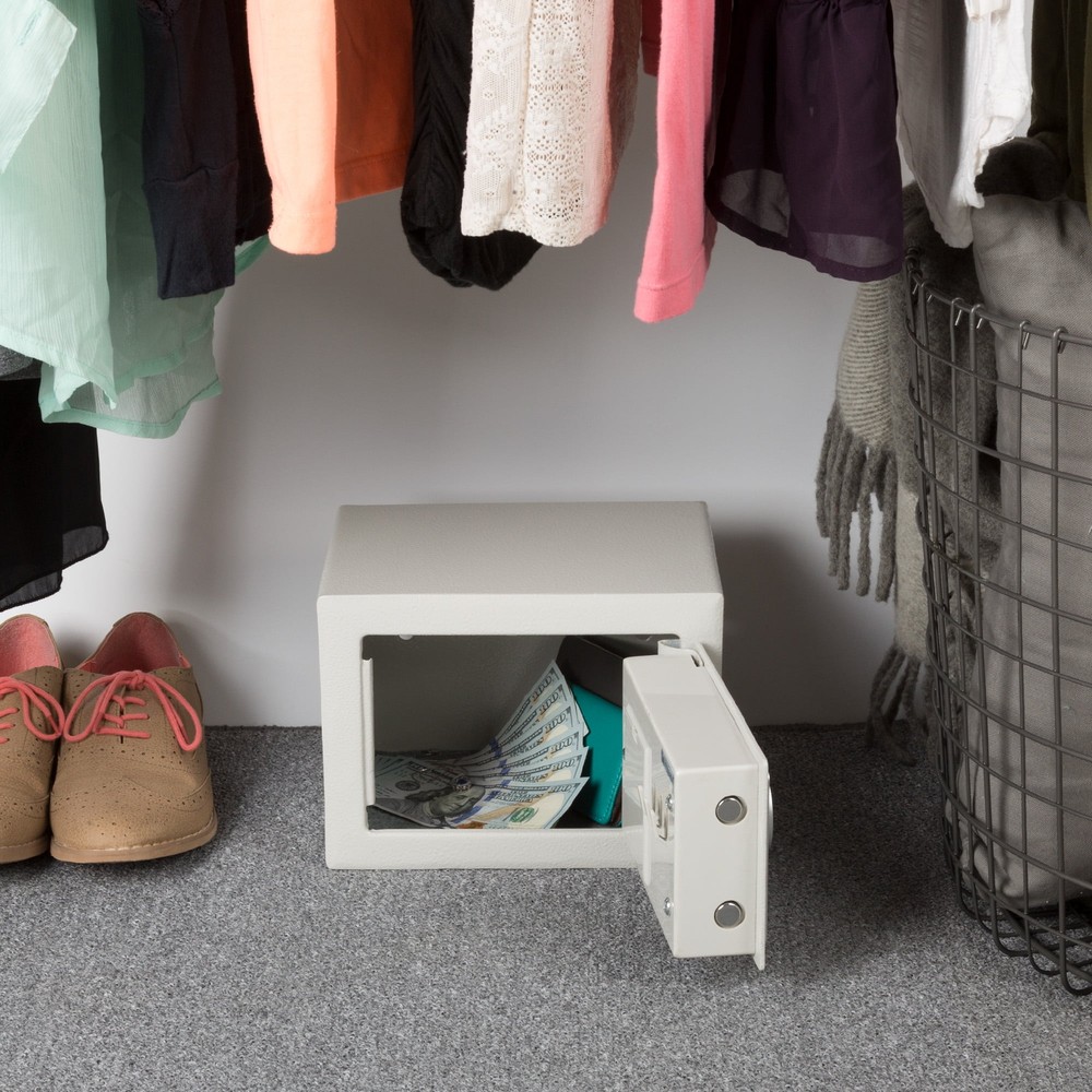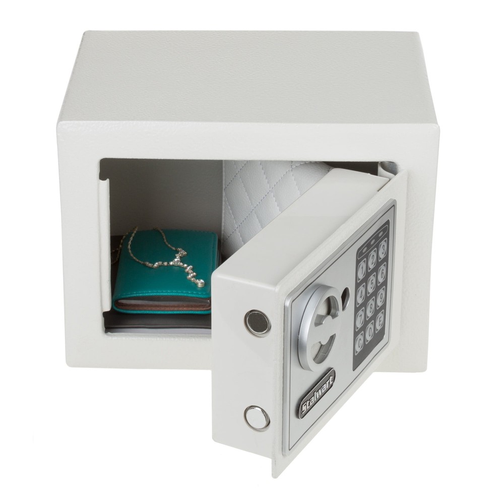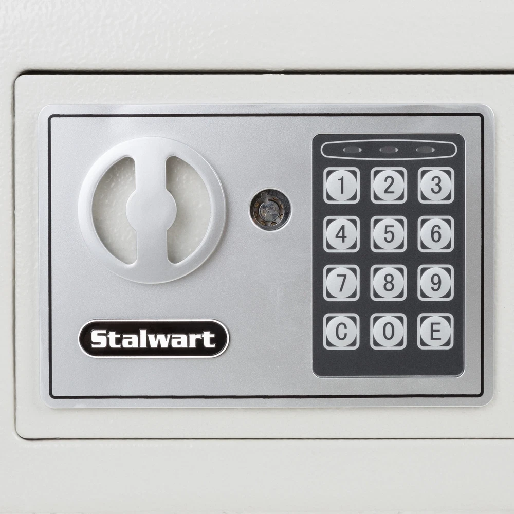 Whether you are storing money, jewelry, passports, or guns, the Portable Digital Security Safe Box is the perfect security system to keep your valuables at home protected. This floor safe is made of durable steel, is equipped with an electronic keypad, and 2 emergency keys for quick access to your belongings. You can place this safe lockbox in cabinets, closets, or on the top of shelves to help keep this small lockbox out of reach. it is committed to providing the consumer with the absolute best price and value on all of our products. This is an exclusive product of Stalwart and ONLY the Security Safes are GUARANTEED to be genuine. Avoid buying counterfeit products and transacting unauthorized sellers. Stalwart is a registered trademark protected by U.S. Trademark law and will be vigorously defended. DIGITAL LOCKING – The money safe is equipped with a programmable digital keypad that is simple to lock and unlock by entering your security code. Two emergency keys are included for fast and immediate access. DISCREETLY STORED – Start hiding valuables such as money, passports, jewelry, and even guns in the smallest corners of cabinets and closets. Place this stash box with a lock on top of a shelf and keep your personal items out of reach. DURABLE – This security box is made of durable steel with two thick locking bolts in the door for added fortification. The inside is lined with scratch-resistant carpeting for added protection while inside the small safe. WALL OR FLOOR MOUNT – This portable personal home safe includes 2 expansion screws for mounting it to the wall or floor in a bedroom, closet, or cupboard using the predrilled holes on the security safe. PRODUCT DETAILS – Materials: Steel. Dimensions: (L) 9” x (W) 6.75” x (H) 6.75”; Internal: (L) 8.75” x (W) 6” x (H) 6”. Includes 4AA batteries, 2 spare keys, 2 wall or floor mount screws. Color: Gray.