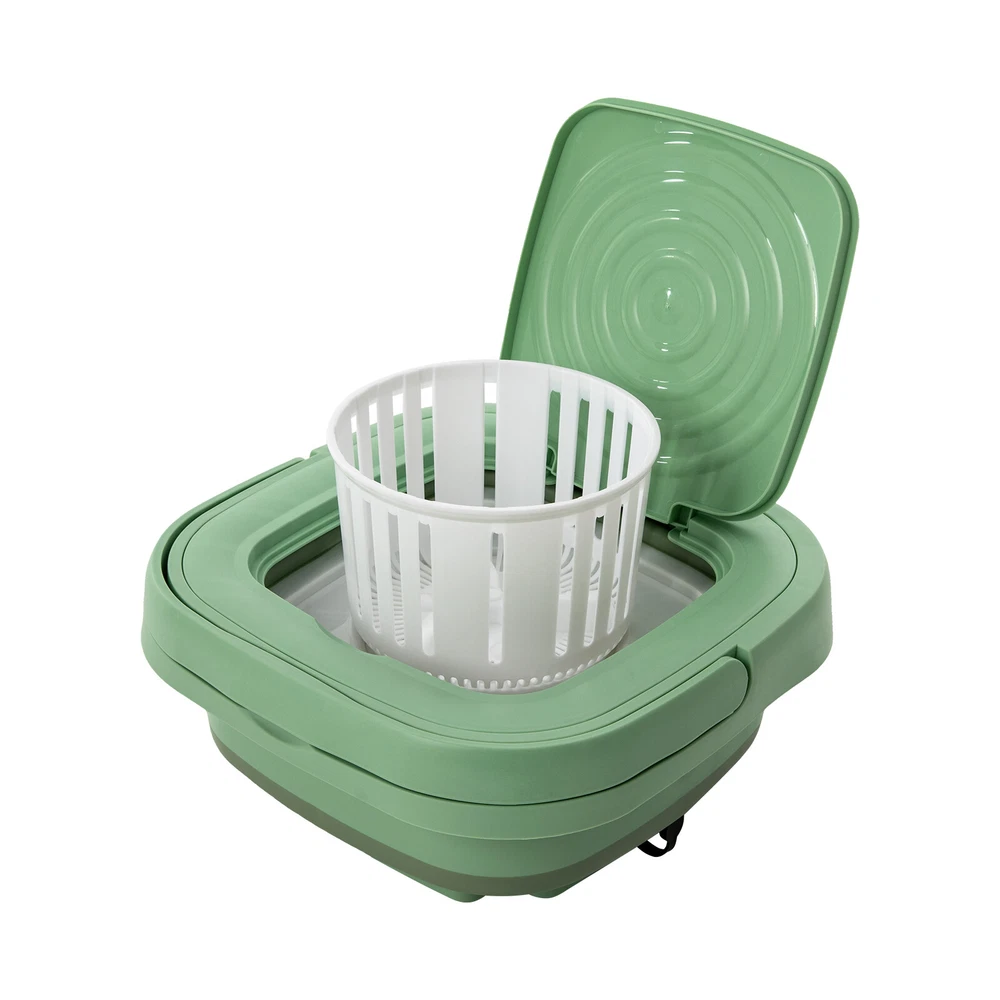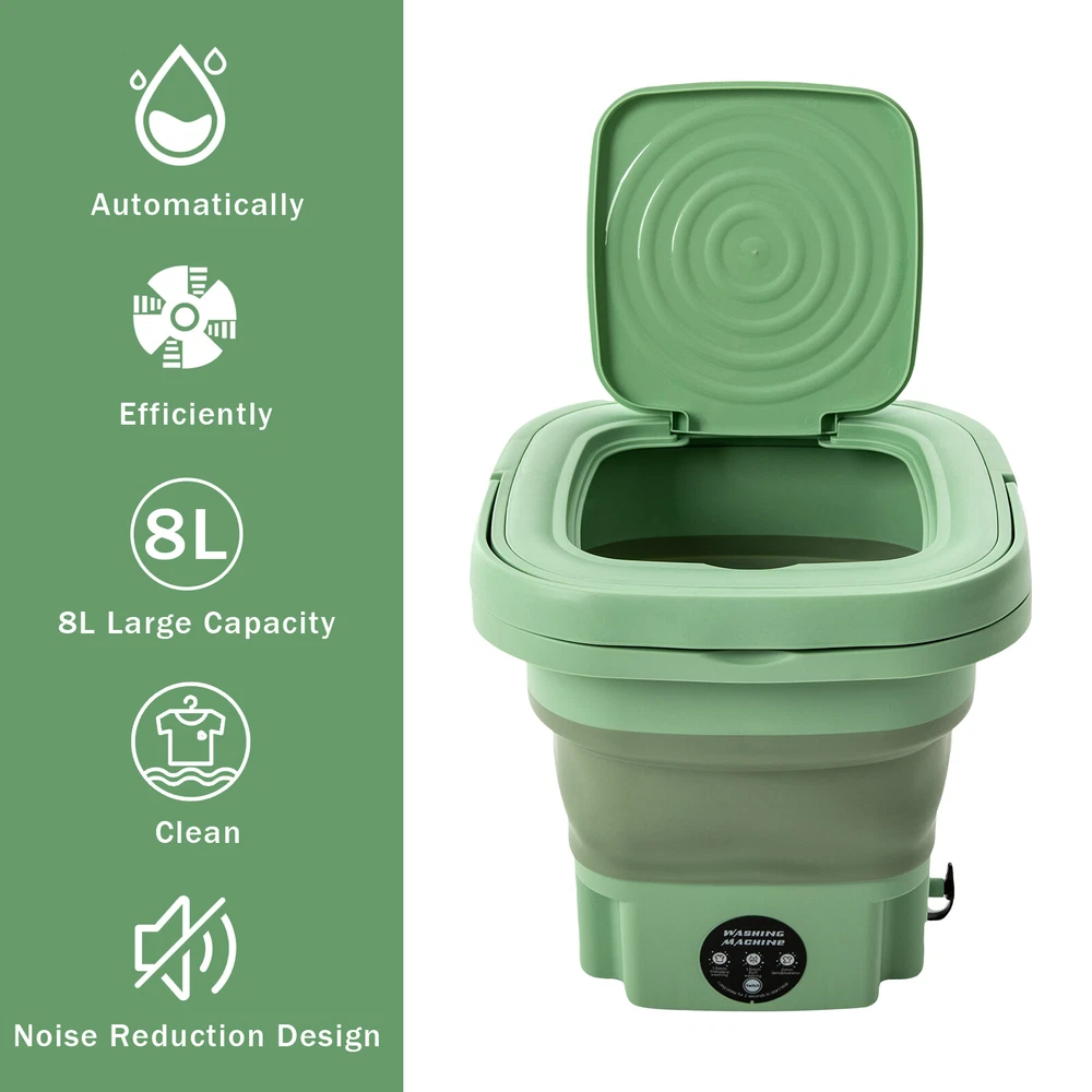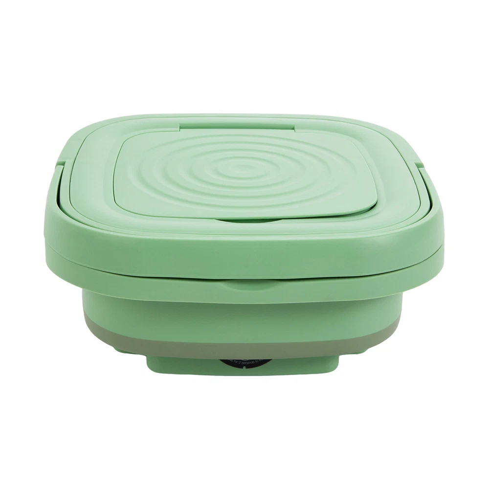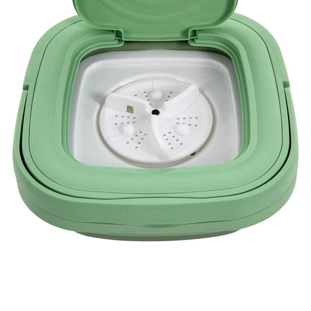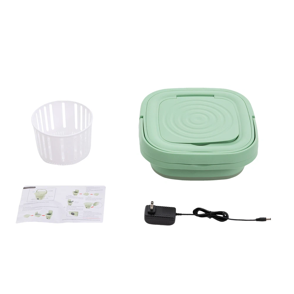 Description This mini washing machine is a great choice for your convenience at home, in the dorm, or while traveling. It uses good quality plastic and resin as material, which can resist aging and yellowing well, and is not easy to crack and damage. The large capacity of 2.11 gal is enough for you to wash about 1.76 pounds of clothes. With it, you can say goodbye to time-consuming and laborious hand washing while also making clothes cleaner. Key Features Strong and Durable: Made of premium plastic and resin, it is resistant to aging, yellowing, cracking, mildew, shock, and falling, and will not release harmful substances. Meanwhile, it is highly waterproof (IPX4), allowing you to use it in a wet environment for a long time. Portable Mini Multi-functional Foldable Washing Machine With Drainage Basket Description This mini washing machine is a great choice for your convenience at home, in the dorm, or while traveling. It uses good quality plastic and resin as material, which can resist aging and yellowing well, and is not easy to crack and damage. The large capacity of 2.11 gal is enough for you to wash about 1.76 pounds of clothes. With it, you can say goodbye to time-consuming and laborious hand washing while also making clothes cleaner. Key Features Strong and Durable: Made of premium plastic and resin , it is resistant to aging, yellowing, cracking, mildew , shock, and falling, and will not release harmful substances. Meanwhile, it is highly waterproof (IPX4), allowing you to use it in a wet environment for a long time. Efficient & Quiet: The pure copper motor with stable performance can achieve quick washing while only making noise at about 51 dB, which is equivalent to a typical indoor conversation sound. Wave Wheel Structure Design: The product adopts a simulated hand-washing spiral wave wheel, combined with precise washing speed, to effectively remove stains while gently flipping clothes. It can also safely clean delicate small clothes such as silk and chiffon. Large Capacity: The 2.11 gal capacity can accommodate 6 bras/8 underpants /12 pairs of socks/8 baby's light clothes/15 baby sweat towels (for reference), or accommodate light clothes of about 1.76 pounds (in dry state) so that it can be the second washing machine at home for washing close-fitting clothes separately to avoid cross infection. Powerful Motor: The built-in 10W pure copper motor with high speed, large torque, and less energy consumption makes cleaning more powerful and brings higher cleaning efficiency, making daily cleaning of small items for the whole family easy to handle. Portable & Neat Storage: You can fold it to a smaller size of 11.61*11.61*5.71 inches when not in use, together with 2.65 lbs light weight, making it easy to carry for camping, business trips, and other outdoor uses and allowing for space-saving storage in your laundry room, balcony, or bathroom. Easy Operation: It can be used directly after connecting the power supply without the need for installation. Meanwhile, it has 3 cleaning procedures: 10 minutes of standard washing, 15 minutes of soft washing, and 2 minutes of dehydration mode, and the machine can be started with one touch and will stop automatically when the set time is up. Ideal Gift: The modern style and great practicality make it an amazing gift for people who love cleanliness, travel frequently, live in school, or live with babies, pets, or patients. Details Removable Drainage Basket: It allows for gently separating residual moisture from clothing to avoid violent dehydration that can cause clothing to pull and deform. The removable design makes it more convenient to operate. Non-slip Pads : They are designed at the bottom of this product to prevent the product from sliding or tipping during work. Concealed Handle: The handle can be lifted when you need to carry the product and can concealed to the top of the product when not in use. Application It is suitable for washing close-fitting clothes, baby clothes, towels, socks, towels, T-shirts, underwear, and more, and can be used in an apartment, hotel, RV, travel, house, dormitory, camping, sickroom, etc. How To Use Opening: Take out the washing machine from the package, press the bottom of the drum with one hand, pull up one side of the drum to the highest point with one hand, and then pull up the other side of the drum to open the washing machine. Folding: Hold the upper frame with both hands and press down with equalized force, the washing machine can be folded easily. Specification Model: MLSC-01 Color: Mint Green Material: Plastic, Resin Shape: Rectangular Style: Modern Type: Semi-automatic Mounting Type: Freestanding Access Location: Top Load Motor Type: Pure Copper Motor Power: Corded Electric Plug: US Standard Waterproof Grade: IPX4 Noise: 51 dB Capacity: 8 L/2.11 gal Voltage: 110 V Input Voltage: 12V Rated Power: 10W Laundry Time: 10/15/2 min Expanded Size : 29.5*29.5*29cm/11.61*11.61*11.42 inch Folded Size : 29.5*29.5*14.5cm/11.61*11.61*5.71 inch Package Size: 30.5*30.5*21cm/12*12*8.3 inch Net Weight: 1.2kg/2.65 lbs Gross Weight: 2.2kg/4.85 lbs Package Included 1* Foldable Washing Machine 1* Adapter 1* Drainage Basket 1* English Manual Notes It is strictly prohibited to use the machine in the folded state. The drainpipe is not included in the package Please do not pour water more than 122 ℉ into the product. This product is only for small items. Cleaning large items may damage it. Please remember to close the water outlet after draining the water. This product is equipped with a drainage basket and can be used as a separate leaching whose leaching effect is equivalent to hand wringing. It can only leach out of the clothing part of the residual water, not the true meaning of dehydration such as higher requirements for the dehydration function. Please read the manual and product label completely before installation and use, and pay particular attention to the safety instructions included. To ensure the quality of the p