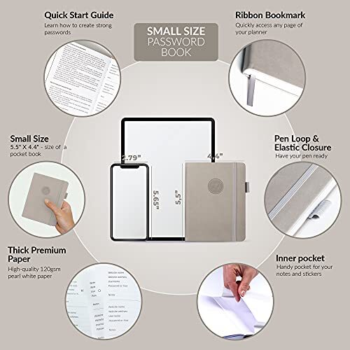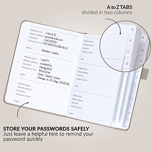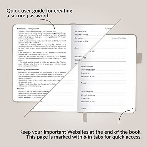 Return Policy Fast Delivery Trusted seller Password Book with Alphabetical tabs - Internet Address & Password Keeper Logbook for Password Organization. Journal Notebook for Saving Website Logins Pocket Size 4.0"x5.5", Gray Product Description KEEP PASSWORDS SAFE- Password Book gives you the opportunity of a safe password organization in one place that no hacker can reach. And its classic hardcover does not give away the book's contents. CONVENIENT ORGANIZATION - Alphabetical tabs (A - Z) let you organize your website login information. The 1 letter per tab design helps minimize time spent searching for a specific password. IMPORTANT WEBSITES SECTION – At the back of this password logbook, we added a separate section for the most important websites. Here, you can store the logins you use most frequently, so you can find your passwords quickly every time. POCKET FORMAT & PREMIUM MATERIALS – Password notebook comes in a pocket format (4x5.5 inches) and has an eco-leather hardcover, thick 120gsm paper, lay-flat binding, elastic, pen loop, and pocket for loose notes. 60-DAY MONEY-BACK GUARANTEE - We will exchange or refund your Password Organizer if you aren’t satisfied with your password journal for women and men for any reason. Reach out to us via message to refund your password keeper. Shipping Returns Payment Shipping Shipping is FREE to all addresses other than APO/PO boxes in the lower 48 states. All our stock ships from US-based warehouses. Shipped via USPS or UPS (depending on location and package weight) Unless stated otherwise, all orders will ship within 24-72 hours of your payment being processed. Check our feedback to see the great reviews of FAST shipping we offer. Returns Seller does not accept returns Payment We currently accept payment via eBay managed payments only. Once payment is cleared, we will dispatch your shipment within 1-3 business days. Please refer to the "Shipping" tab for more information regarding shipping speed to your destination.
