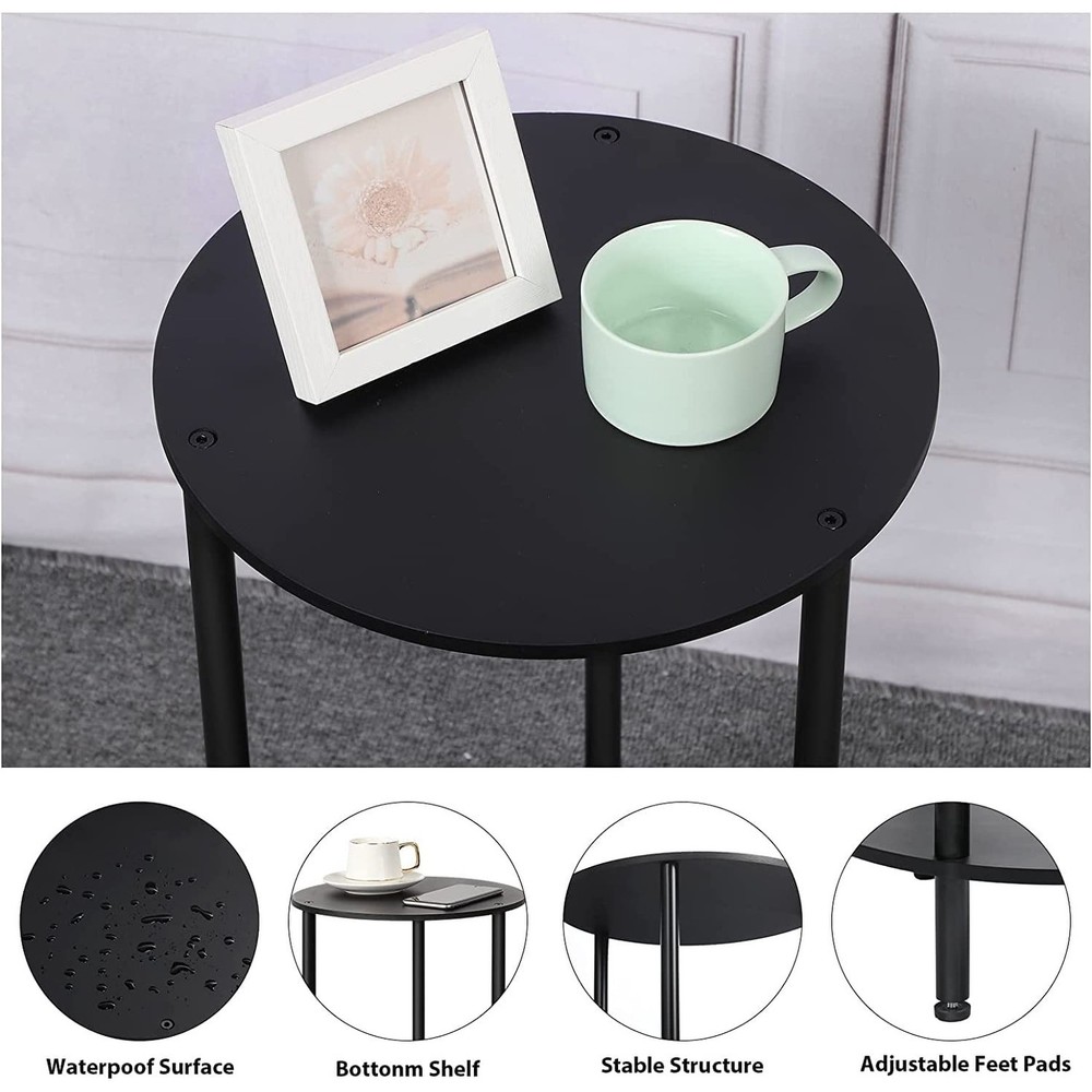 Great storage ideas. Its compact size allows it to sit in any small space without sacrificing its storage function. The compact size and retro color give your room a classic rustic vibe. Multi-UseThe small round table can be used as a sofa side table, bedside table, coffee table, accent table, nightstand, farmhouse end table, or plant stand. 2 tiers design can help store more essentials in your living room bedroom or office; Place coffee and vase on the tabletop and books on the shelf. Perfect for small spaces and small apartments. Sturdy StructureOur small side table is built with anti-rust, waterproof, sturdy metal and Bamboo panels giving the round end table a high degree of stability. Each shelf can securely hold something that weighs to 30-40LBs.The adjustable anti-slip mat on Free Shipping Over $49.99* Details Small End Tables Living Room Set of 2 Product Description: Great storage ideas. Its compact size allows it to sit in any small space without sacrificing its storage function. The compact size and retro color give your room a classic rustic vibe. Multi-UseThe small round table can be used as a sofa side table, bedside table, coffee table, accent table, nightstand, farmhouse end table, or plant stand. 2 tiers design can help store more essentials in your living room bedroom or office; Place coffee and vase on the tabletop and books on the shelf. Perfect for small spaces and small apartments. Sturdy StructureOur small side table is built with anti-rust, waterproof, sturdy metal and Bamboo panels giving the round end table a high degree of stability. Each shelf can securely hold something that weighs to 30-40LBs.The adjustable anti-slip mat on each leg can help adjust the height and will protect your floor from scratches. Super Easy to Assemble Easy 10-minute assembly. The instruction manual is included. All you need is to swing the Allen key (included) according to the instructions step by step.
