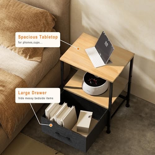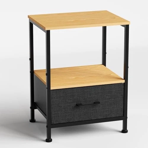 $ 44.3Nightstand with USB Charging Station and Adjustable Fabric Drawer for Bedroom Storage
