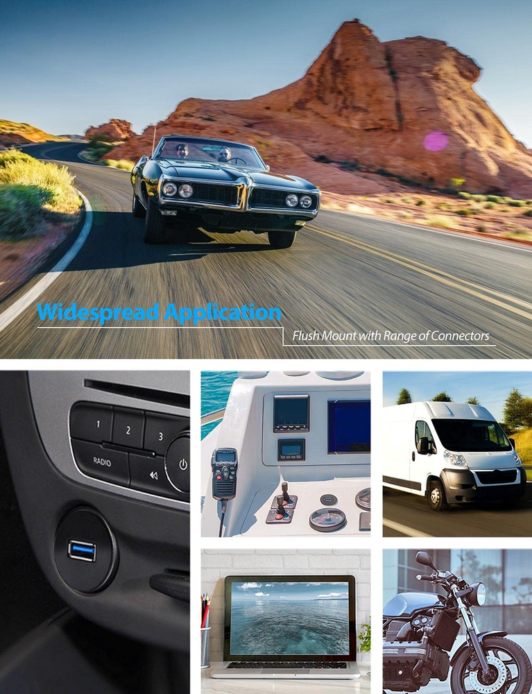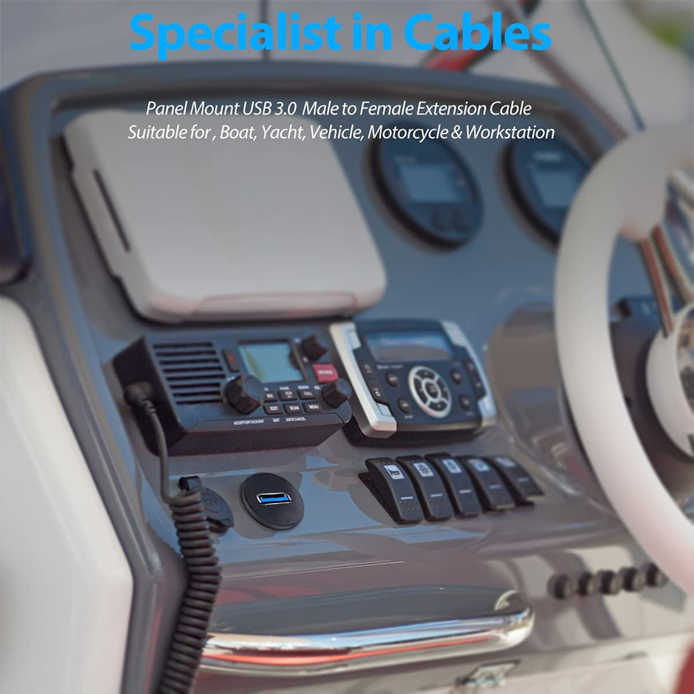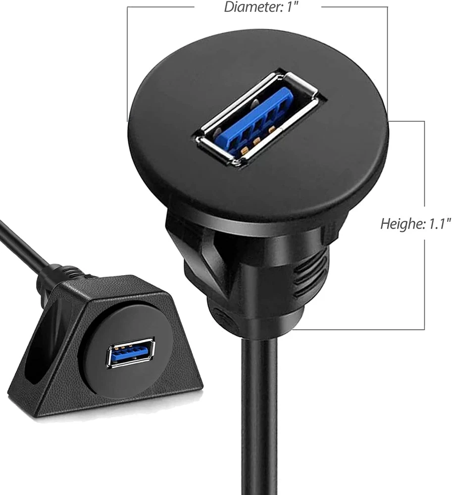 This cable design for car,boat and motorcycle,USB 3.0 A male to USB 3.0 A female extension flush panel mount waterproof cable. Mount cable can be used above the base of the car's dashboard or on the other dashboard,such as boat,motorcycle. Use an existing hole or cut a hole on your dashboard and clip in the socket to flush mount it to your vehicle's,boat’s and motors. Use an existing hole or cut a hole on your dashboard and clip in the socket to flush mount it to your vehicle's,boat’s and motors. Ideal for extend and accomplish the data transfer in your car, boat, motorcycle, support very easy access to your accessory inputs USB 3.0 Male to Female AUX Flush mount cable, small one, 3ft length. Product Description URWOOW USB 3.0 Male to Female extension Flush Mount Extension Cable Well-constructed Cable: Sturdy housing for each connector Cable strain relief grommet available protects against damages resulting from daily use such as bending Comes with waterproof kit for the use in different condition such as boat, bike and even outdoor condition Perfectly fit panel or dashboard in car, yacht, bike, truck and etc This may fit your existing hole, you may drill a 28mm to 30mm for installation of the mount Functionality: USB 3.0 Male to Female extension Fast charging and data syncing, data transmission speed is 10 times faster than USB 2.0 but it is backward compatible with USB 2.0, USB 1.1 as well as USB 1.0 devices Work for both charging and data transmission 3 feet long extension cable More Features: Good Workmanship Shielded cable provides extra protection in strength and against interference Installation Fits existing or new drilled hole with 25mm X 28mm Application Applicable to dashboard or control panel, Support both charging and data sync Wide Compatibility