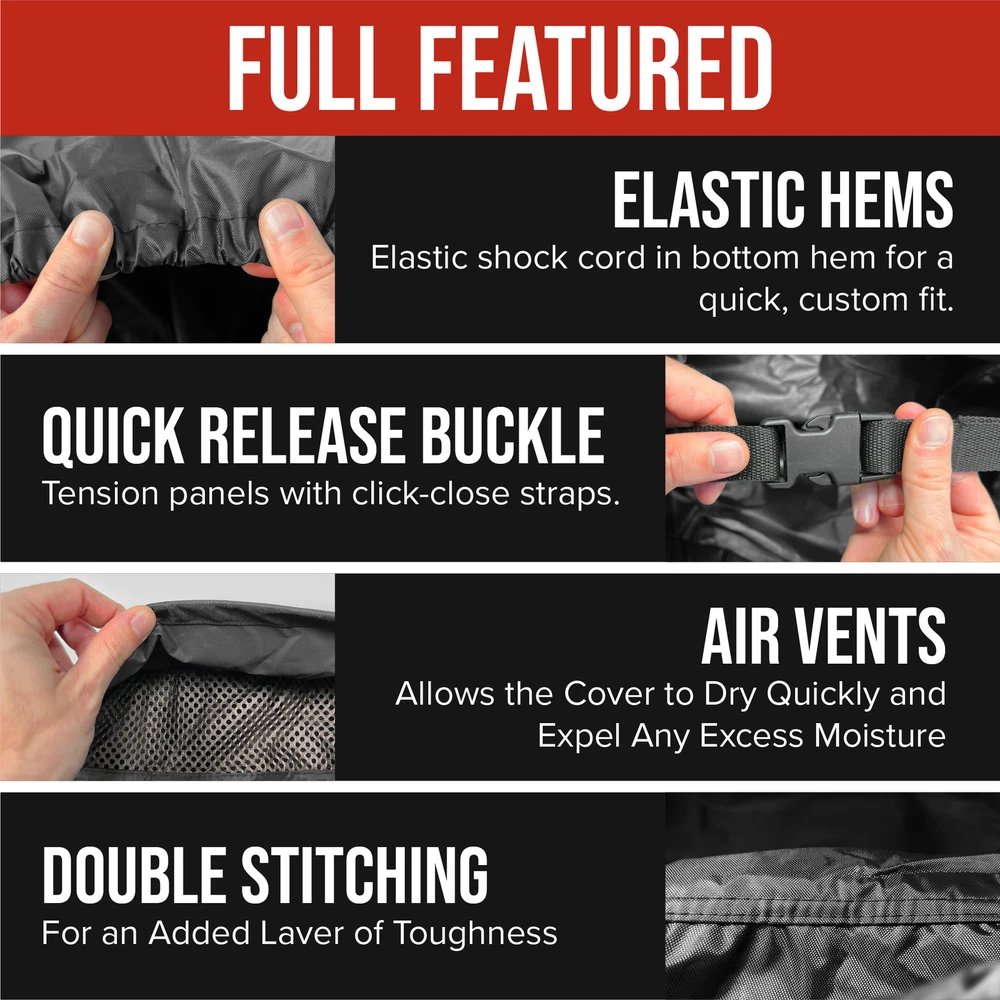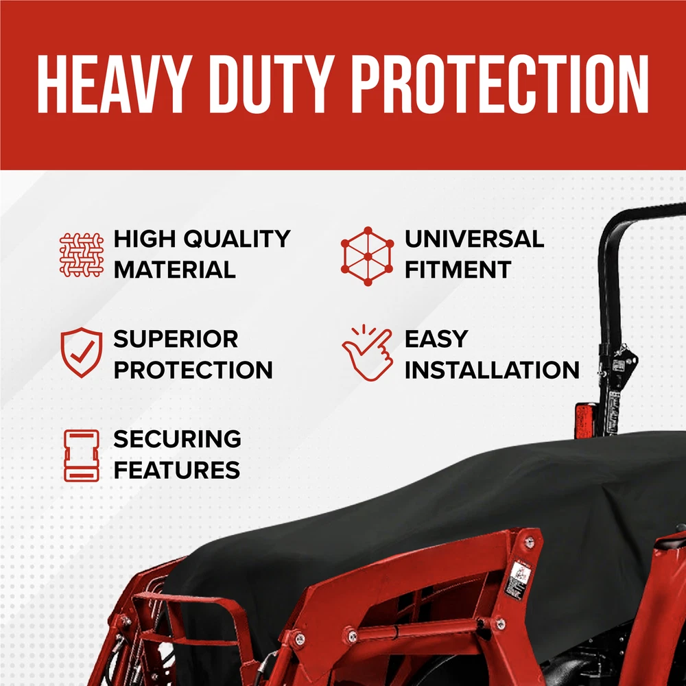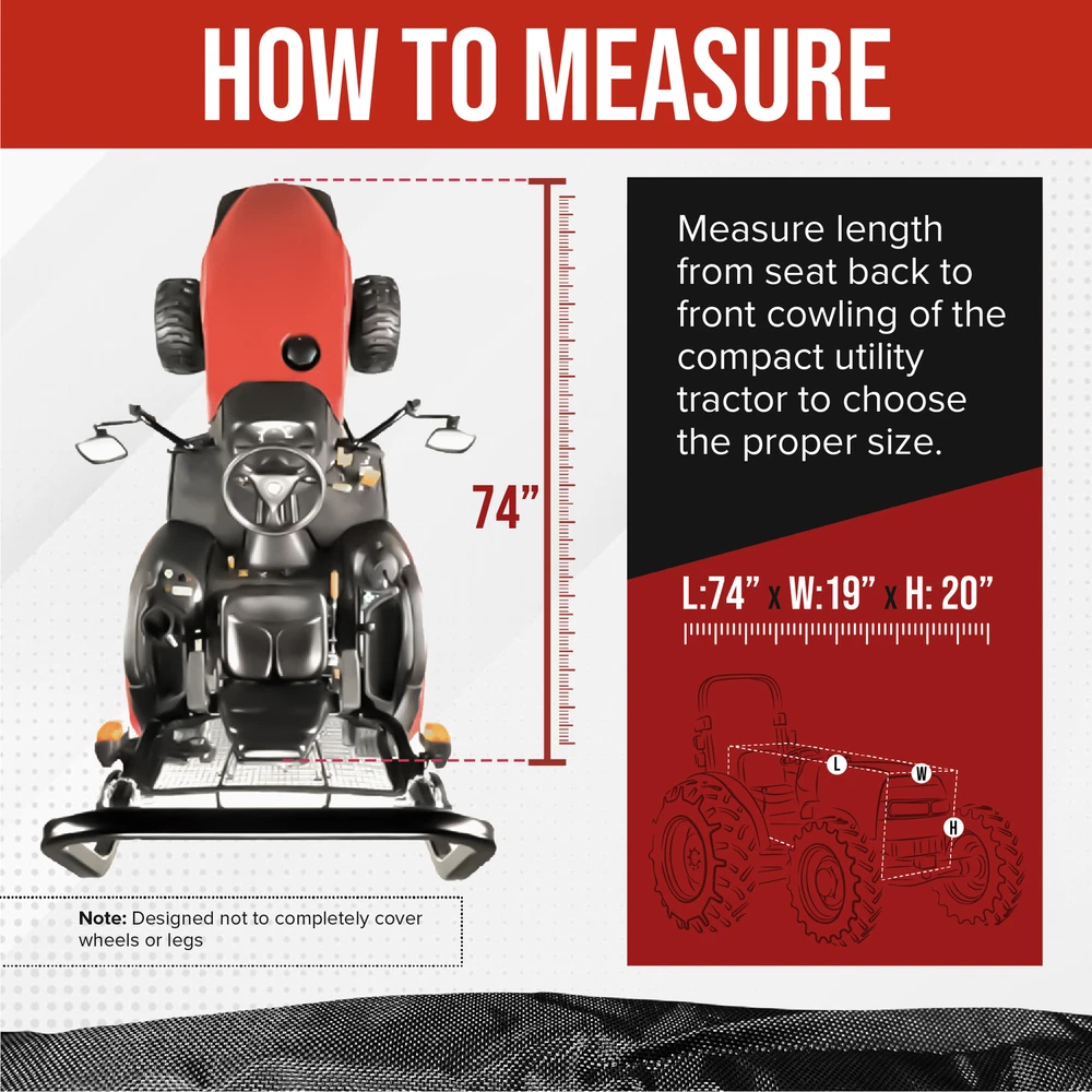 Compact Utility Tractor Cover Waterproof Heavy Duty UV Resistant Cowling Cover Compact Utility Tractor Covers Lawn Tractor Covers Waterproof Heavy Duty, UV Resistant Riding Mower Cover, Farm Tractor Accessories, Cowling Cover, Garden Tractor Cover, Utility Tractor Accessories Features: [MARINE-GRADE STRENGTH] Our Tractor Mower Cover is Made From High-Quality Double-Layer 600D Oxford Polyester Fabric Which is Extremely Durable, Strong and Thick. With It's Exceptionally High Tensile-Strength, This Fabric Will Just Not Tear! The Seams Are Double-Stitched for an Added Layer of Toughness. Enhanced Water-Resistant Coating Allows for Water to Bead on Contact, Keeping Your Tractor Completely Dry. [ALL-WEATHER PROTECTION ALL YEAR ROUND] Our Waterproof UV Resistant Compact Tractor Cover Has a UPF 50+ Sun Protection Coating That Will Prevent Fading Over Time. Once You Put Our Long-Lasting Cover on, You Can Be Rest Assured That Your Tractor Will Be Protected From Any and All Natural Elements by Securely Sheltering your Tractor with a Quality Cover. Care for Your High-Investment Equipment by Covering It and Safeguarding Against Wind, Water, Sun, Snow, Dust, Bird-Droppings, Tree Sap, Etc. [DESIGNED FOR A SECURE FIT] Our Compact Riding Tractor Cover Features 2 Click-Close Buckles and an Elastic Hem All Around to Ensure The Most Secure Fit. Your Cover Will Not Fly Away or Budge In Extreme Weather Conditions. No More Billowing, Ballooning, Bouncing, Ripping or Sagging, Which Can Reduce the Life of the Covers. The Robust Construction Is Non-Abrasive And Protects The Finish Of Your Tractor From Scratches. Our Cover Will Fit Most Types, Makes & Models of Tractors and is Compatible with John Deere 1000 & 2000 series, New Holland Boomer series, Kubota BX series, and Mahindra Max & Emax. We Also Include a Storage Bag with Our Tractor Covers, Which Makes it Easy to Store and Transport the Cover Whenever Needed. [INTENDED FOR EASY INSTALLATION] Our Tractor Storage Cover Was Thoughtfully Designed to Include a Handle for Easy Installation and Removal. Don't Know Which Way is the Front of the Cover and Which Way is the Back? Worry No More! Our Cover Has a Label to Indicate the "Front", Making It Super Easy to Identify and Install. Specifications: Color: Black Style: Compact Utility Tractor Cover Dimensions: 74" L x 19" W x 20" H Material: 600D Oxford Polyester Brand: North East Harbor Condition: 100% Brand New Will Fit Compact Utility Tractors with Seat-Back to Front Cowling up to 79”L (Measure length from seat back to front cowling) Package Includes: Storage Cover Storage Bag *Designed to cover the engine, dashboard, and seat. Upgrade Shipping to 3-Day Choose Expedited shipping option at checkout. California Customers: ⚠️ WARNING: This product may contain chemicals known to the State of California to cause cancer, birth defects or other reproductive harm. For more information go to P65Warnings.ca.gov All trademarks remain property of their respective holders, and are used only to directly describe the products being provided. Their use in no way indicates any relationship between us and the holders of said trademarks. The product being sold in this listing is not DOT approved unless otherwise stated. All goods sold are not DOT approved, they are for off road use only. Laws concerning this product vary from state/province to state/province. Your state/province may prohibit its use on public roads or restrict its use to novelty, show use, off-road areas, or race facility areas only. In some states/provinces off-road uses are also prohibited. The manufacturer and retailer assume no responsibility for any use or application of this product in violation of any applicable law. Before installing this product, please check your state/provincial and local/municipal laws and regulations.