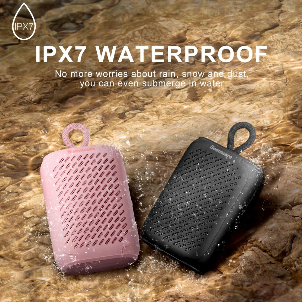 Music Anywhere, Anytime: The built-in 1800mAh rechargeable cell in the ultra portable Bluetooth speaker can provide up to 12 hours of playback at 50% volume on a single charge. Take your music with you wherever you go with portable Bluetooth speakers. It is perfect for outdoor events and adventures. Brilliant Music: The portable music speaker with Bluetooth has a 1.69-inch NdFeB driver, a symmetrical magnetic circuit with a bifilar coil and exclusive technology that produce incredible sound. The wireless Bluetooth speaker can be connected to phones, tablets, PCs, or any other Bluetooth device. Small Speaker, Big Audio: The portable Bluetooth speaker delivers surprisingly big audio and brilliant sound from its ultra-compact size. You can enjoy the surround stereo sound with 2 mini speakers by pairing the TWS function, it's an auditory experience that's truly unparalleled. Tough & Weather-Resistant: Engineered to handle rough use and adverse weather conditions, this waterproof speaker with rubber coating features an IPX7 rating for protection against water immersion. The waterproof small Bluetooth speaker with a carabiner clip is an ideal choice for outdoor events and is perfect for use at parties, pools, on the beach, while camping or hiking, and more. Advanced Safety Features: This portable hands-free music speaker is extremely safe, even when you use it when you take a shower, because it never overheats. Features a unique dynamic following voltage regulation technology to dynamically adjust according to the audio signal. This makes the small Bluetooth speaker a perfect gift for your family and friends, both indoors and outdoors.