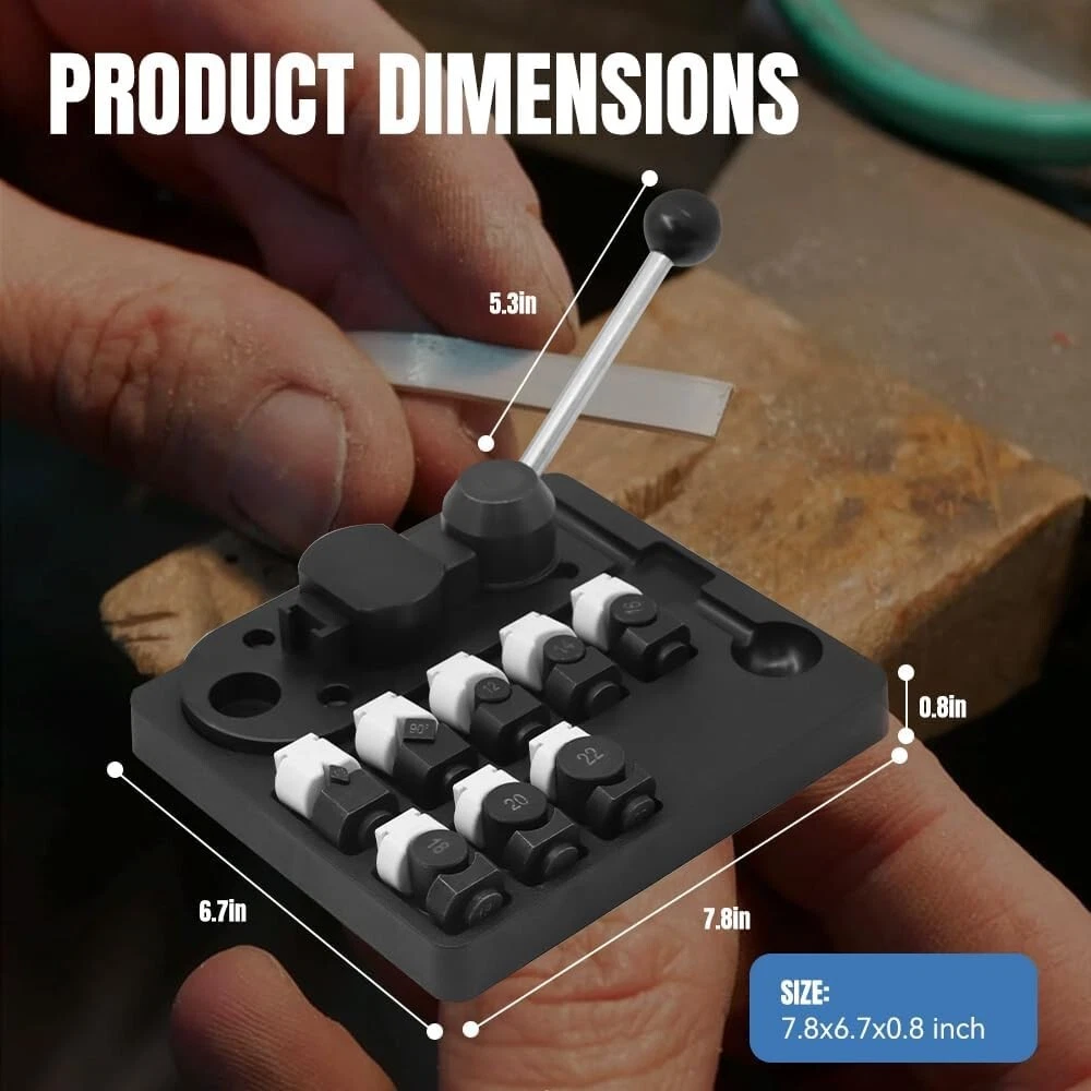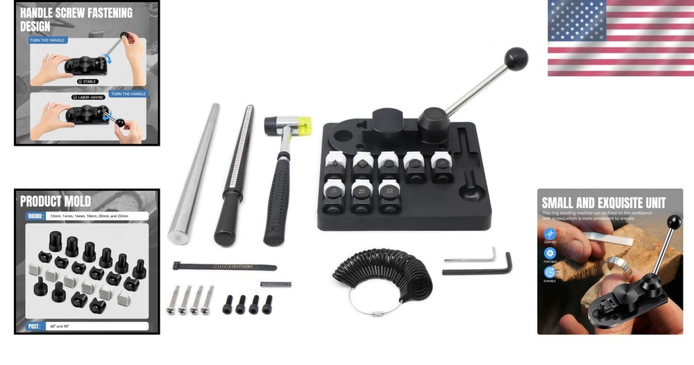 Compact and Versatile Jewelry Ring Bending Tool Kit for Makers & Repair Artists ‹ › ‹ › ‹ › ‹ › ‹ › ‹ › ‹ › ‹ › Compact and Versatile Jewelry Ring Bending Tool Kit The ultimate toolkit for makers and repair artists, this set is designed to revolutionize your jewelry crafting experience. Features: Professional DIY ring bender machine suitable for both beginners and professional jewelers. Includes a nylon mold, rubber jewelry hammer, metal ring bar measuring tool, ring mandrel, polishing rod and cloth. Comes with 27 round models and a ring size gauge for precision crafting. Designed for soft precious metals, making your DIY jewelry crafting efficient and effortless. Benefits: Easily bends earrings, rings, and metal parts into desired shapes. Allows for safe bending with assorted nylon stencils that won’t damage fragile materials. Rubber hammer prevents marks or damage during repairs. Solid steel construction (hardened to 45-50 HRC) ensures superior performance and durability. Black oxidized finish adds lifetime corrosion resistance. Efficient design with high torque for reduced resistance when bending metal. Why choose our Ring Bending Tool Kit? If you're passionate about jewelry making, this Compact and Versatile Jewelry Ring Bending Tool Kit is an essential addition to your workshop. It simplifies the bending process for various types of metal while ensuring your creations maintain their beauty and integrity. Designed with both the novice and skilled artisan in mind, the kit offers everything you need for repairing, shaping, and polishing with precision. Elevate your jewelry-making skills and indulge your creativity—order your Ring Bending Tool Kit today and transform the way you create and repair jewelry! Shipping Free & Fast Shipping - We offer free shipping to most of the USA with a normal delivery time of 3-10 businessdays. However, due to various situations, additional delivery time (up to 3 weeks) may be required for some items. Alternative Carriers - We may use alternative carriers (e.g. USPS, FedEx, UPS, etc.) to ensure your package arrives safely and on time. Due to the use of multiple carriers, we are unable to provide a tracking number automatically. Handling Time - Orders are processed and shipped within 1-5 business days of receiving cleared payment. Shipping Restrictions - Shipping to Alaska, Hawaii, Puerto Rico, Guam, and other US territories may incur shipping charges or delivery restrictions. Please contact us before ordering, or your order can be refunded/cancelled. State Restrictions - There may be restrictions based on your state of purchase. For example, certain items may not be shipped to California due to state regulations. Contact for Tracking Updates - If you require tracking updates or have any concerns about the delivery of your order, please feel free to contact us, and we will be happy to assist you. Return Please see our ebay return policy. We do not accept return on most products. This is to avoid customers mis-using ebay returns. All sales are final. Please be sure to check the return policy listed at the top of the listing. In rare cases, we may accept returns, if the buyer pays both ways shipping and 20% restocking fee. If you are un-sure of return policy of a particular item, please ask before buying. Payment We accept all major credit cards, PayPal, and Apple Pay for your convenience. Your payment information is secure and encrypted to ensure a safe and seamless transaction. Please complete your payment within 3 days of purchase to avoid any delays in shipping. Feedback Your feedback is extremely important to us. We strive to provide the best products and customer service possible. If you are satisfied with your purchase, please take a moment to leave us a positive review. If you have any concerns or issues with your order, please contact us before leaving negative feedback. We are committed to resolving any problems and ensuring your satisfaction. Contact Us If you have any questions or concerns, please feel free to reach out to our customer support team. You can contact us through the eBay messaging system. We are available Monday to Friday, 9:00 am to 5:00 pm EST, and we will do our best to respond to your inquiry within 24 hours. Buy it now and enjoy a pleasant shopping experience! UPC: Not Set Unit Quantity: 7 Material: Nylon,Metal Suitable For: Grinding,Jewelry Making,Polishing,Ring Shaping,Earring Bending,Repair Set Includes: Ring Mandrel,Nylon Mold,Rubber Jewelry Hammer,Metal Ring Bar Measuring Tool,Polishing Rod,Polishing Cloth,27 Round Models,Ring Size Gauge Brand: Unbranded Type: Ring Bender Tool Kit Color: Black Country/Region of Manufacture: Not Set Seller Warranty: No MPN: Not Set Unit Type: lb