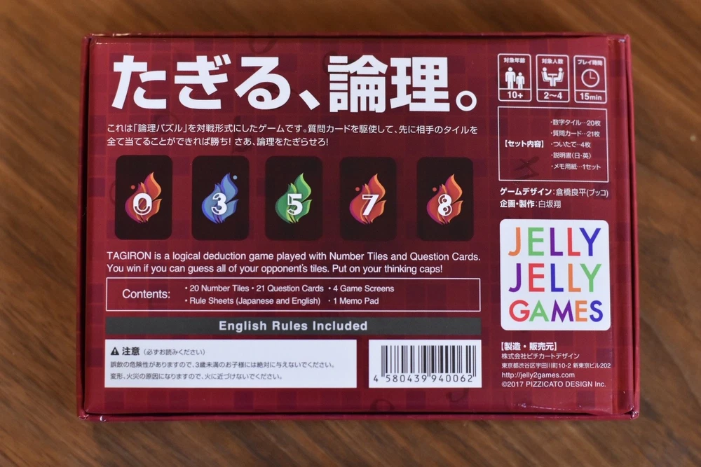 Thank you for visiting our page c182saa4l6 Detail Compatible logical puzzle game Tagiron [ Condition ] New [ Brand ] Jelly Jelly Games [ Release Date(yyyy/mm/dd) ] [ Note : Pre-Order (P/O) ] If title has "Pre-Order", we will ship out as soon as released. We want all buyers to understand there is possibility that the manufacturer will change contents, date and quantity for sale. This is a game that uses "logical puzzle" in a format. The first player selects one of the six question cards in the field and asks the questions written on that card. We will ask questions alternately and aim to perfectly hit the five tiles and numbers of the opponent's five tiles. As you repeat questions to each other, you will gradually see the five colors and numbers they have. The declared side says, "The answer!" You don't have to tell it if some are hit. It is only a judgment whether it is perfectly matched. Even if the declaration fails, it is possible to declare again with your next turn. If you can use the question card to hit all the opponent's tiles first, win! Come on, let the logic! Number of players: 2-4 player time: 15 minutes Target age: 10 years old or older game design: Ryohei Kurahashi set Contents: 20 numbers tiles/21 question cards/4 pieces/Manuals (Sunday/English)/memo paper 1 set [ Country of Manufacture ] If "Made in Japan" is NOT described on whole listing page, Items are manufactured in other country (China, Vietnam and etc.). [ Manual & Menu Language ] We treat Japanese Market Usage Items. So items have only Japanese Manual & Menu Language. Please contact us if you would like to know more details. *Japanese Menu Only : Panasonic Camera *English Menu available : Nikon, Canon [ Warranty ] Japanese Warranty Only. Buyers need to send item to us in Japan to repair with warranty & own all shipping cost. If you need to repair item in your country with warranty, please do not order this item. [ Electronics ] Japan Usage Item. Voltage:100V, Plug :Type A, FM Tune:70-90MHz Please check your country's condition for use. [ Multiple sizes and colors ] Before your payment, please contact us about stock of size & color. Payment [ International Buyers - Please Note ] - Import duties, taxes and charges are not included in the item price or shipping charges. These charges are the buyer's responsibility. - Please check with your country's customs office to determine what these additional costs will be prior to bidding/buying. - These charges are normally collected by the delivering freight (shipping) company or when you pick the item up. Please do not confuse them for additional shipping charges. Shipping [ Method ] [ Shipping Address ] We ship to only address where be registered by Paypal. [ Other Carrier ] We can arrange shipment by DHL and UPS. Please ask us about Handling Time and Price. [ Combine shipping & Large Quantity ] Please contact us for combine shipping & large quantity deals before payment. We do our best for you!!!!! [ Order Processing & Handling Time ] Your order will be shipped within 5~7 business days (excluding Saturday, Sunday & Japan's Holiday) after the payment is confirmed. [ Compensation & Insurance] When you choose EMS, in order to receive compensation, it is necessary to open the box and check your item with delivery staff at the time of delivery. If you don't do that, you may not receive compensation and new item from us even if your item is damaged and lacked. [ Li-ion Battery ] Some countries( Germany,France,Italy,Mongolia,SriLanka,Turkey,Nigeria and more.) does not accept lithium battery via EMS, SAL by Post Office. Please check your country's rule yourself. If we receive order from buyer who located in these countries, we will ask buyer to choose 1 from 3. 1. Ship without Ri-ion Battery removed from item. 2. Change shipping method to Fedex or DHL with additional shipping cost. 3. Cancel