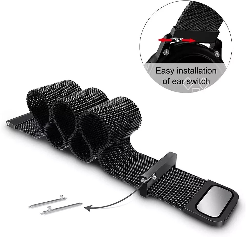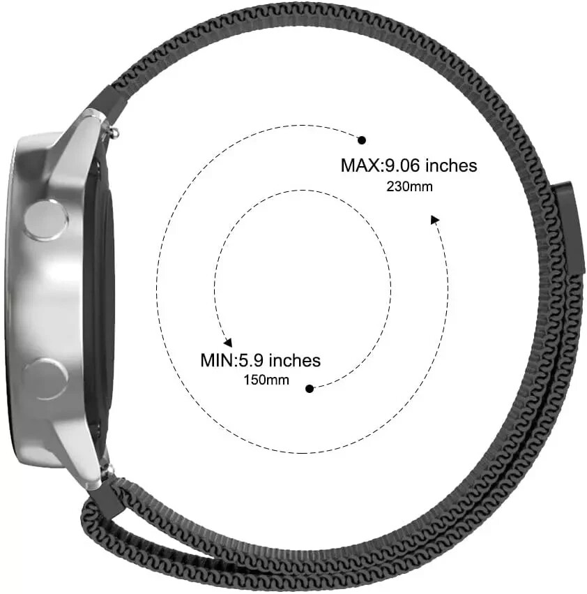 Compatible with Galaxy Watch 3 45Mm/Samsung Galaxy Watch 46Mm/Gear S3 Frontier/Classic Band, 22Mm Stainless Steel Strap Replacement for Ticwatch Pro Smartwatch (Black) Description Color Black Other display features Wireless Thickness 9.06 Inches Item Weight 1.06 ounces Department unisex-adult Units 1 Count Special features Scratch Resistant, Lightweight Package Dimensions 7.36 x 2.24 x 0.31 inches Size 22mm TOP STAINLESS STEEL MESH-This gear s3 black mesh band crafted from top stainless steel mesh combined of fashion, nobility, durability and elegance. Compared to other straps, mesh shows promise of being scratch proof. Flexible stainless steel solid wire mesh with interlock clasp, ultra-slim, incredibly lightweight and comfortable touching but more upscale. Comfort at its exquisite. 【ADJUSTABLE FREE SIZE】The Galaxy Watch 46mm stainless Steel Strap Fits For: 5. 7 inch to 8. 27 inch (145mm-210mm) wrist. Using the link removal tool to remove/add links by yourself to fit your wrist (contact us if you need extra links). the Galaxy Watch 46mm metal band fits for: 5. 7 inch to 11 inch (145mm-280mm) wrist. EASY TO INSTALL - With quick release pins, which locks onto Galaxy Watch interface precisely and securely. Easy and direct installation and removal.No tool needed.