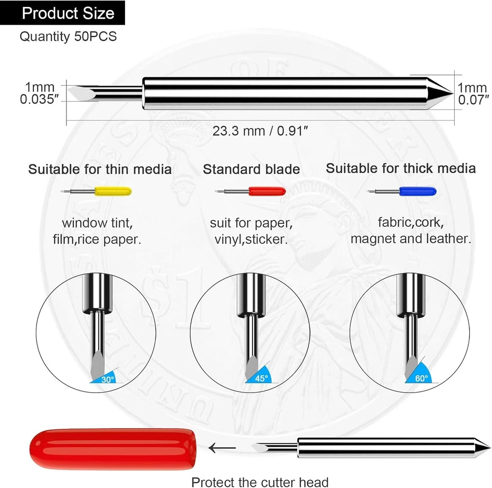 Complete 50PCS Replacement Cutting Blade Kit - Compatible with Explore Air 2/3 ‹ › ‹ › ‹ › ‹ › ‹ › ‹ › ‹ › ‹ › ‹ › Complete 50PCS Replacement Cutting Blade Kit -Compatible with Explore Air 2/3 What's Included: 50 PCS replacement blades suitable for Explore Air and Maker series cutting machines. 10 PCS 30 degree fine point cutting replacement blades (yellow cap). 30 PCS 45 degree standard blades (red cap). 10 PCS 60 degree deep cut blades (blue cap). Features: Made from high-quality cemented carbide for improved sharpness and durability. Sharp, smooth cutting without dragging or skipped spots. Three different blade sizes for varied cutting needs. Wrapped in protective rubber covers for safe handling. Versatile Three Size Cutting Effect: 30° Blade: Perfect for thin media like window tint, film, and rice paper. 45° Blade: Ideal for standard materials such as paper, vinyl, stickers, and adhesive foil. 60° Blade: Designed for deep media, including fabrics, cork, magnet, leather, and thick card stock. Safety Tips: To prevent any accidental injuries, the blades come securely wrapped in protective rubber covers. Please ensure to carefully pull them out of the cover before use and adjust manually according to your cutting material needs. About Us: As a professional manufacturer of hardware products, we are proud to serve a community of 600,000 satisfied customers worldwide. With over 15 years of expertise, our engineers meticulously carve each blade under a microscope to ensure precision and quality. Our commitment is to deliver high-quality, economical carbide products tailored to meet your cutting requirements. Discover our comprehensive range in our flagship store and elevate your crafting experience. Shipping Free & Fast Shipping - We offer free shipping to most of the USA with a normal delivery time of 3-7 days. However, due to the current situation, additional delivery time (up to 3 weeks) may be required for some items. Alternative Carriers - We may use alternative carriers (e.g. USPS, FedEx, UPS, etc.) to ensure your package arrives safely and on time. Due to the use of multiple carriers, we are unable to provide a tracking number automatically. Handling Time - Orders are processed and shipped within 1-2 business days of receiving cleared payment. Shipping Restrictions - Shipping to Alaska, Hawaii, Puerto Rico, Guam, and other US territories may incur shipping charges or delivery restrictions. Please contact us before ordering, or your order can be refunded/cancelled. State Restrictions - There may be restrictions based on your state of purchase. For example, certain items may not be shipped to California due to state regulations. Contact for Tracking Updates - If you require tracking updates or have any concerns about the delivery of your order, please feel free to contact us, and we will be happy to assist you. Return 30-Day Hassle-Free Returns - We want you to be completely satisfied with your purchase. If you are not, you can return the item within 30 days of receiving it for a full refund or exchange. Easy Return Process - To start a return, simply contact us and we will provide you with a prepaid return shipping label and detailed instructions. Restocking Fee - There are no restocking fees for returns. However, the buyer is responsible for return shipping costs if the return is not due to a seller's error. Refund Processing Time - Refunds will be processed within 5 business days of receiving the returned item in its original condition. Payment We accept all major credit cards, PayPal, and Apple Pay for your convenience. Your payment information is secure and encrypted to ensure a safe and seamless transaction. Please complete your payment within 3 days of purchase to avoid any delays in shipping. Feedback Your feedback is extremely important to us. We strive to provide the best products and customer service possible. If you are satisfied with your purchase, please take a moment to leave us a positive review. If you have any concerns or issues with your order, please contact us before leaving negative feedback. We are committed to resolving any problems and ensuring your satisfaction. Contact Us If you have any questions or concerns, please feel free to reach out to our customer support team. You can contact us through the eBay messaging system. We are available Monday to Friday, 9:00 am to 5:00 pm EST, and we will do our best to respond to your inquiry within 24 hours. Buy it now and enjoy a pleasant shopping experience! MPN: Replacement_Cutting_Blades_for_Cricut UPC: Not Set Unit Quantity: 50 Features: Manual,Replacement cutting blades,Compatible with Explore Air 2,Compatible with Explore Air 3,Compatible with Maker,Compatible with Maker 3,3 different sizes of blades,45 degree standard blade,60 degree deep cut blade,Sharp and durable,Made of cemented carbide,Not easy to rust,Cuts cleanly with no dragging,No skipped spots,Adjustable for different materials,Used for thin media,Used for standard blade media,Used for deep media,Carved under a microscope Brand: Unbranded Type: Cutting Dies Model: Not Set Handmade: No Country/Region of Manufacture: Not Set Unit Type: Not Set