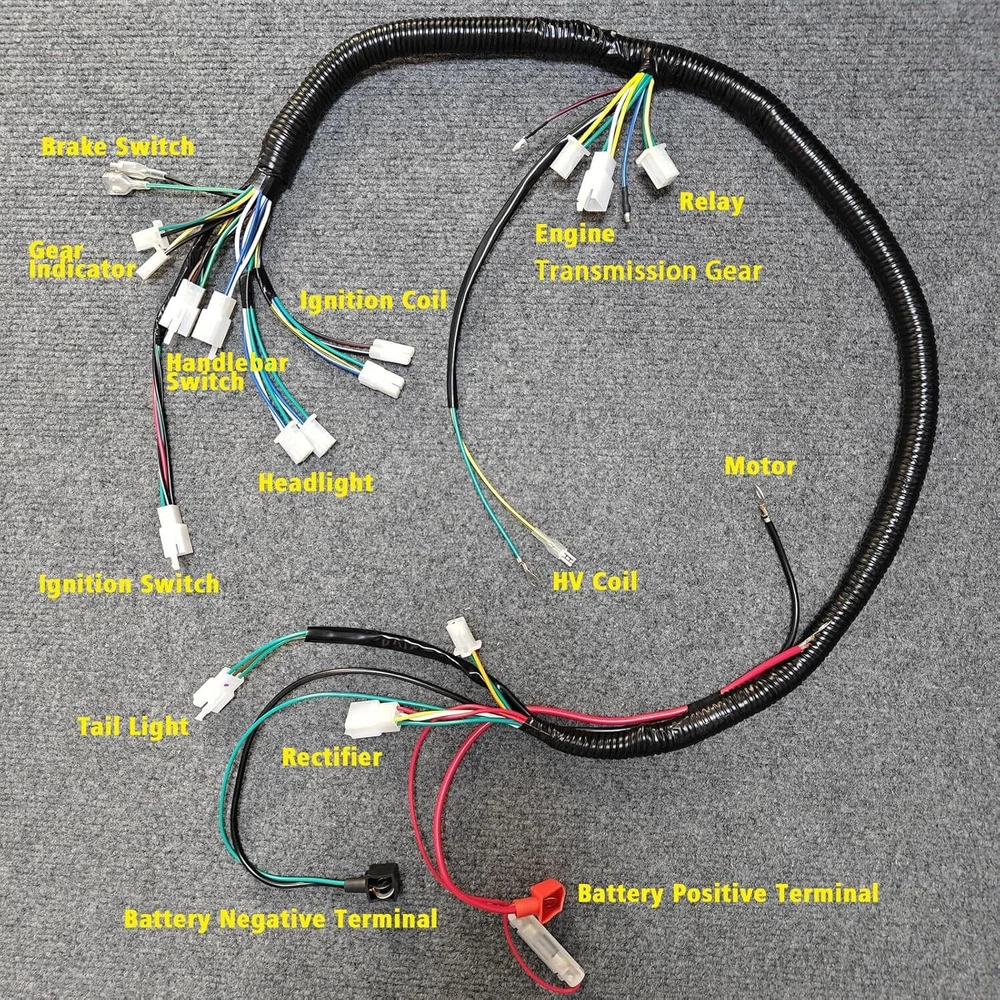 This wiring harness kit is a game-changer for my GY6 scooter! Everything fits perfectly—no cutting or splicing needed. The quality is solid, with thick, well-labeled wires that made installation a breeze. Came with all the essentials: CDI, regulator, ignition switch, and more. Works flawlessly on my 150cc, and the price is unbeatable. Highly recommend for hassle-free repairs or upgrades!