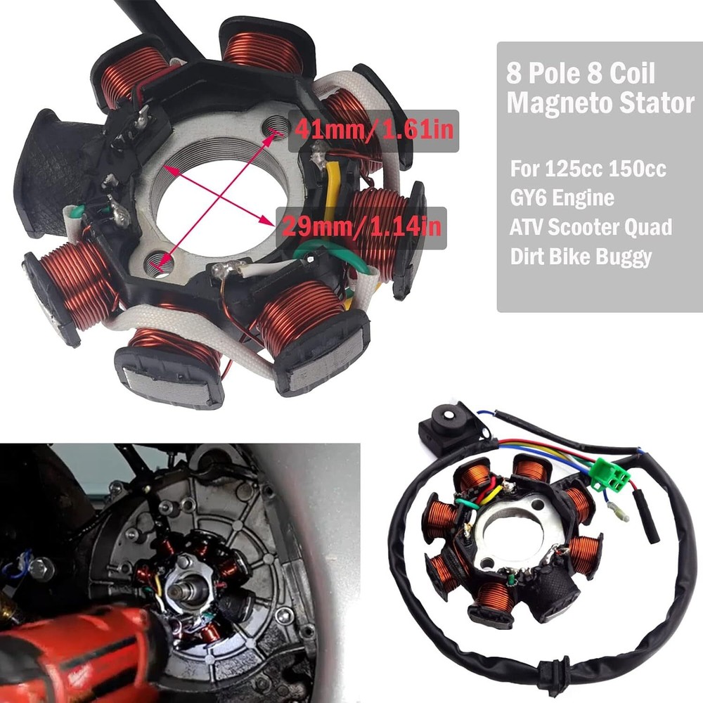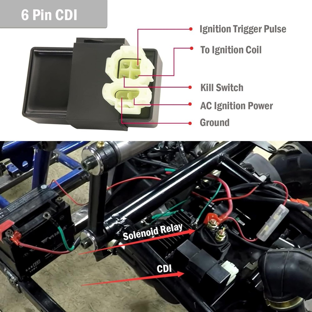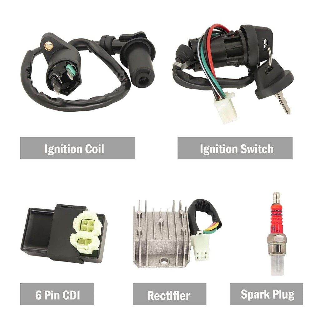 Complete Electric Wiring Harness Kit ATV Wire for GY6 150cc 125cc Scooter Moped 4-Stroke Engine with CDI Stator Regulator Ignition Switch Solenoid Relay 【Application】Complete wire harness kit,Powersports Wiring Harnesses, Electrics Wiring Harness Loom Kit,ATV Wiring harness kit Fits almost all years Chinese made electric start upright engine GY6 125cc 150cc ATV, Scooter, 4 Wheelers, Quad, Go Kart,Buggy / Motowork & more. 【Good Package】This Complete Wiring Harness kit Electrics Wire Loom Assembly includes: 1x GY6 125cc 150cc Wiring harness; 1x 6 Pin CDI Box; 1x Spark Plug; 1x Ignition Coil; 1x Solenoid Relay; 1x Rectifier (Voltage Regulator); 1x Ignition Switch (2 keys, waterproof); 1x Upgraded Multi functional ATV Switch; 1x 8 Pole Magneto Stator (8 Pole 5 Wire, 2 fixing holes). 【COMPATIBLE】Complete Electric Wiring Harness Wire Magneto Stator for GY6 4-Stroke Engine 125cc 150cc ATV Pit Bike Scooter Quad,Complete wiring harness kit with electrics stator coil for chinese atv,complete wiring harness for gy6 150,compatible with taotao wire harness,compatible with baja atv parts,and compatible with many other brands,such as: Coolster, Kazuma, Pitpro, Hummer, Xmoto, Monsoon, Trooper, Hunter, Motox, Blitz, Kawasaki KLX,Bigfoot, Kuda, Motoworks, Chongqing, Ducar. 【High Quality GY6 Electrical Parts】This complete wiring harness for chinese atv may also know as gy6 150cc electrical kit, GY6 wiring harness kit,150cc wiring harness with stator, 150cc wiring harness gy6 scooter, Moped wiring harness, wiring harness 150cc gy6,Chinese 4 wheeler parts,go kart wire harness electric start,pocket bike wiring harness,125cc wiring harness kit,Powersports Wiring Harnesses,moped wiring harness,atv wire harness kit. 【Warranty Policy】90 Days warranty. Note: No instruction included, professional installation is highly recommended. Note: Does not fit 49cc 50cc 70cc 110cc 150cc 200cc 250cc 300cc Zongshen Lifan ATV / QUAD with different stator. F Material Loom Item dimensions L x W x H 2.9 x 1.1 x 0.6 inches Cable Type Flat Ribbon