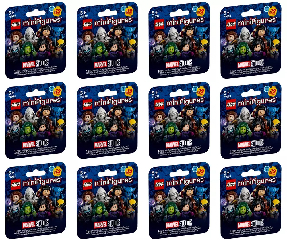 You will receive the Complete Set of (12) Lego Marvel Series 2 Minifigures 71039 without duplicates. Each character is brand new factory sealed in its original box complete with accessories, display plate, and collector's leaflet. Individual Characters Series 1 | 2 Orders are securely packaged in boxes and ship same day by 4 pm est. Shipping is combined at checkout and free for orders $25 or more. Returns are free for 30 days. Questions will be responded to within one day. Product Details: This set includes 12 more Marvel characters from popular movies, tv shows, comic books, and X-Men including the following: Agatha Harkness with purple energy blasts Beast with yellow X-Men mug and sentinel Echo with battle sticks Hawkeye with bow, quiver, and owl Kang with an extra blue head and Ant-Man microfigure Kate Bishop with bow, quiver, target, and Lucky the pizza dog Moon Knight with golden crescent boomerang and scarab Mr Knight with Gus the goldfish and tape recorder She-Hulk with cell phone and law firm ad Storm with lightening bolts and cauldron Werewolf by Night Wolverine with adamantium claws, classic blue and yellow mask, and sentinel head in glass case Lego's collectible minifigures are a fast growing hobby that allows fans of all ages to collect, build, play, gift, and invest! Minifigures specializes in authentic factory sealed Lego cmf's, poly bags, and box sets. Browse over 850 minifigures from all 55 official cmf series: New for 2025 - PreOrder Series 27 Minifigures Today! Series 1 | 2 | 3 | 4 | 5 | 6 | 7 | 8 | 9 | 10 | 11 | 12 | 13 | 14 | 15 | 16 | 17 | 18 | 19 | 20 | 21 | 22 | 23 | 24 | 25 | 26 | 27 D&D | Disney | Super Mario | Marvel | DC Comics | Looney Tunes | Muppets | Lego Movie | Batman | Simpsons | Harry Potter | Ninjago | Bandmates | DFB | Team GB | Unikitty