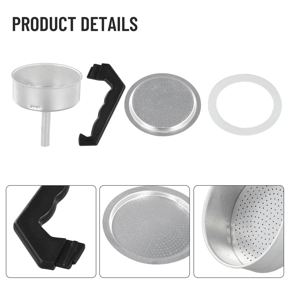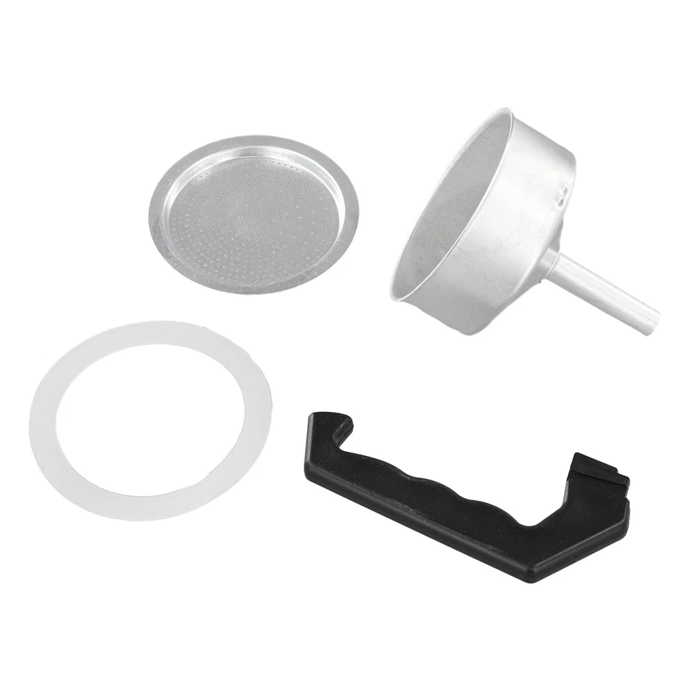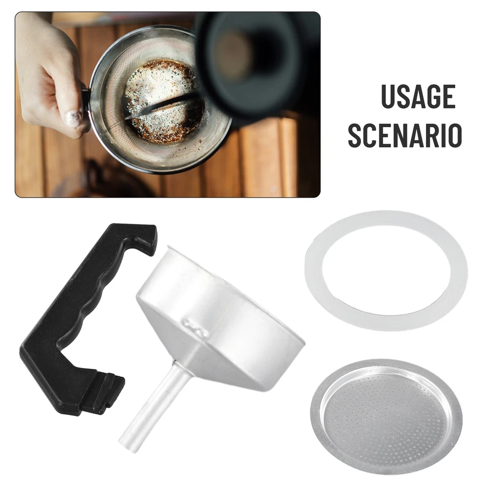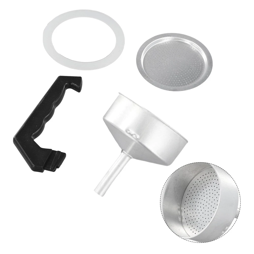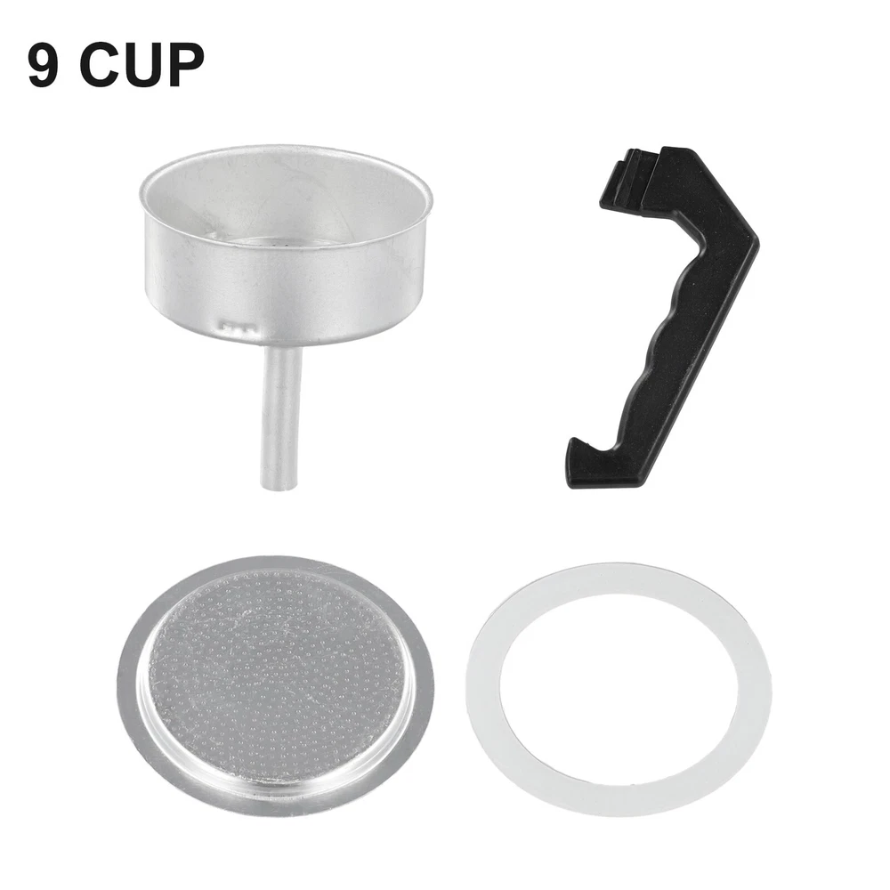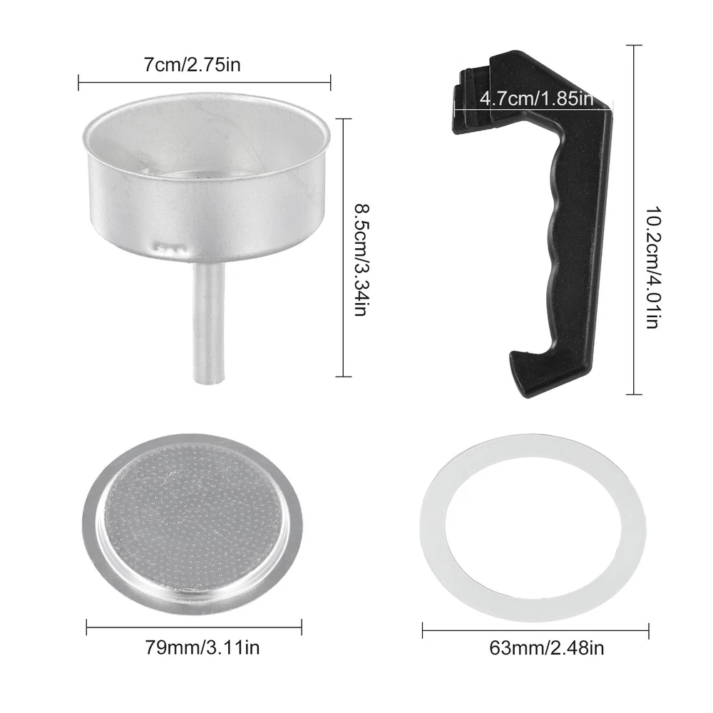 Product Description Features: *Function: Designed specifically for espresso pots, this coffee Moka pot accessories replacement is a perfect fit, optimal functionality. *Easy Installation: With its user-friendly design, this replacement handle can be easily installed without any hassle or complications. *Perfect Replacement: This set of replacement parts serves as the solution for your broken or worn-out espresso pot accessories, restoring their full functionality. *Multiple Sizes: Available in a range of sizes, including Cup, 3 Cups, 6 Cups, 9 Cups, and 12 Cups, to cater to your specific brewing needs and preferences. * and Reliable: Crafted with high-quality materials, these replacement parts are built to last, guaranteeing durability and reliable performance throughout extended use. Specifications: *Part Name: Mocha Pot Accessories Set *Material: Aluminum, Plastic *Size: Cup, 3 Cups, 6 Cups, 9 Cups, 12 Cups *Color: Silver+Black Package Content: handle*+ funnel*+ rubber ring*+ filter* Note: . The real color of the item may be slightly different from the pictures shown on website caused by many factors such as brightness of your monitor and light brightness. 2. Please allow slight manual measurement deviation for the data. Payment Payment must be completed within 5 days. If you have any problems about payment, please contact us via ebay message. Delivery details We only ship to confirmed ebay Order addresses. Please comfirm that your Order address is in line with your shipping address. Please kindly note that the c ombined shipping is not provided because the shipping fee is calculated by weight. Also, the each additional item means exactly the the same color and size. It takes about 7 -15 working days to US; about 10-30 working days to other countries. Transit time may be a little delayed because of the bad weather and customs inspection . If you do not receive your item within 30 working days since payment finished, please contact us immediately for further assistance. Contact us We strive for 100% customer satisfaction! Positive Feedback is very important to us. If you have any questions, p lease feel free to contact us via "Ask seller a question" . We will reply your email within 24 working hours.