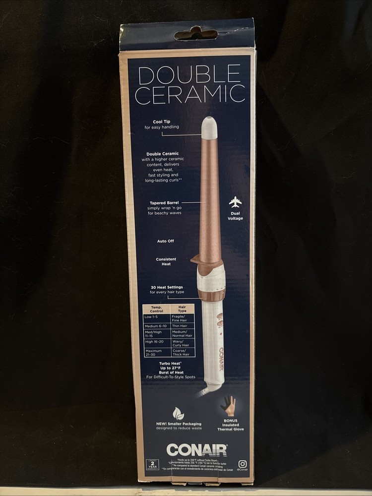 Conair Double Ceramic 1 1/4-inch to 3/4-inch Curling Wand, Tapered wand produces.