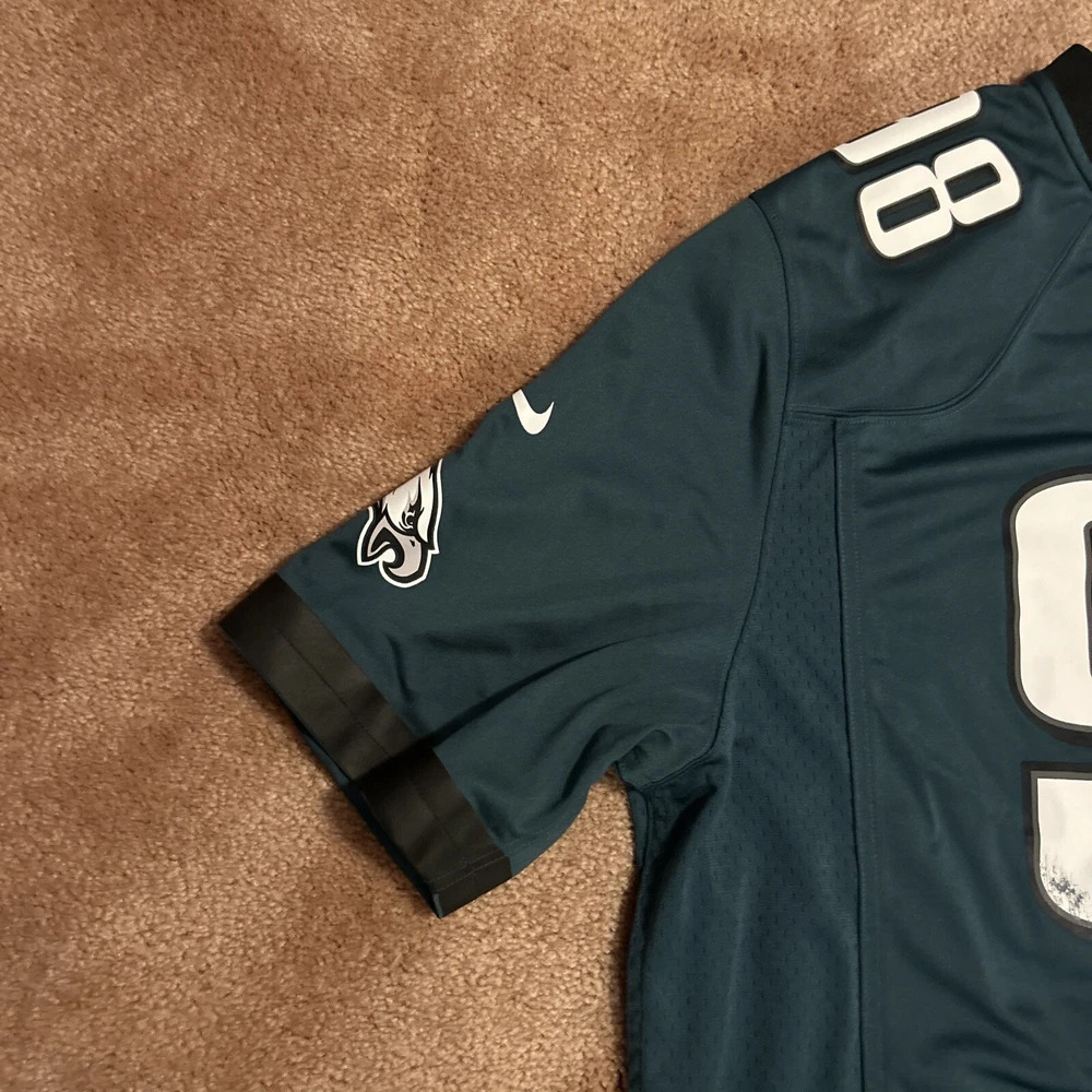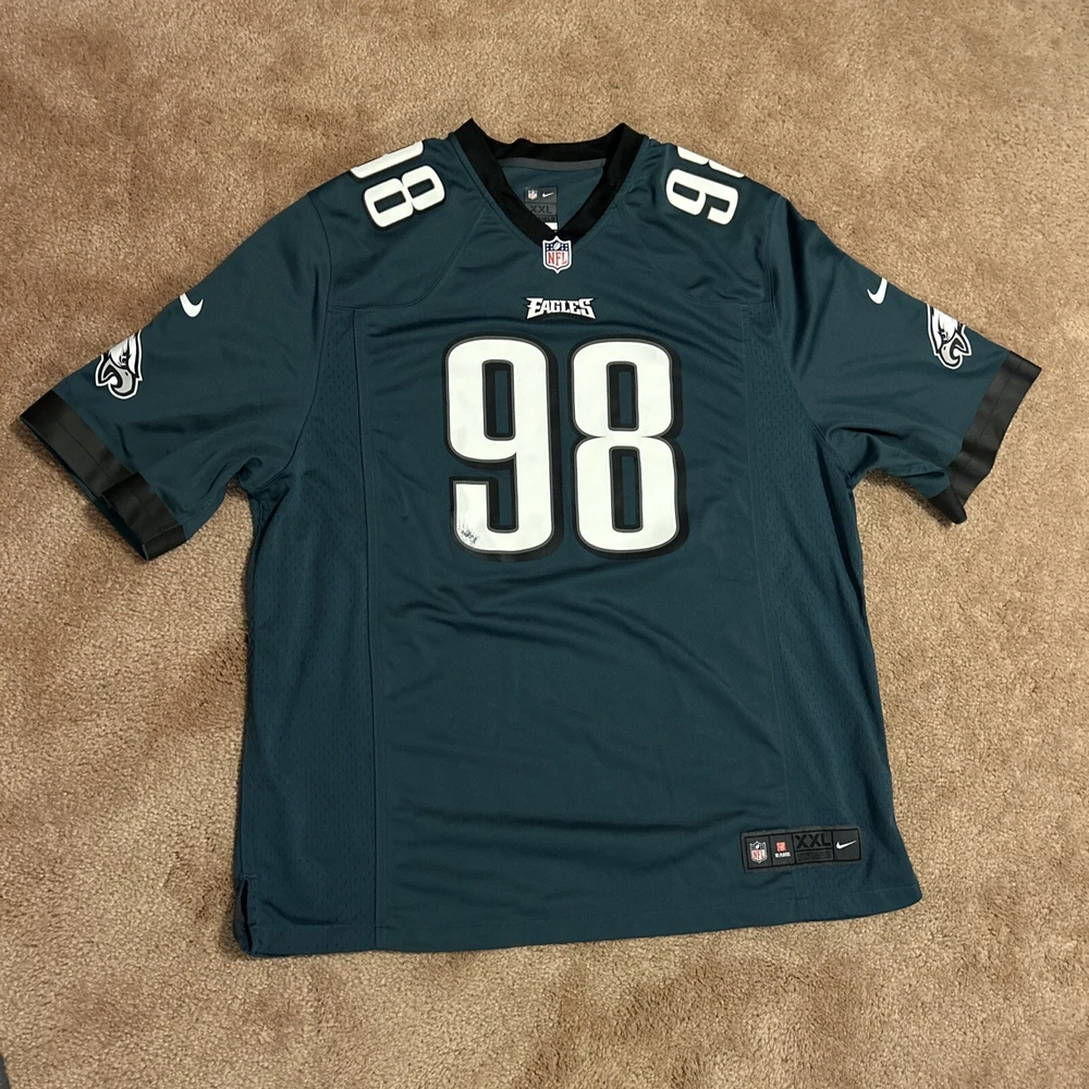 Small Wear on Front. Otherwise in Good Condition Show your support for the Philadelphia Eagles with this Connor Barwin #98 Nike On-Field jersey. Made for men in size XXL, this jersey is perfect for any football fan. The jersey features the iconic green color of the team and is made with high-quality materials to ensure durability and comfort. Represent your favorite team and player with this official NFL licensed jersey. Perfect for game day or any occasion, this jersey is sure to make a statement. Get your hands on this Nike On-Field Philadelphia Eagles Jersey today!