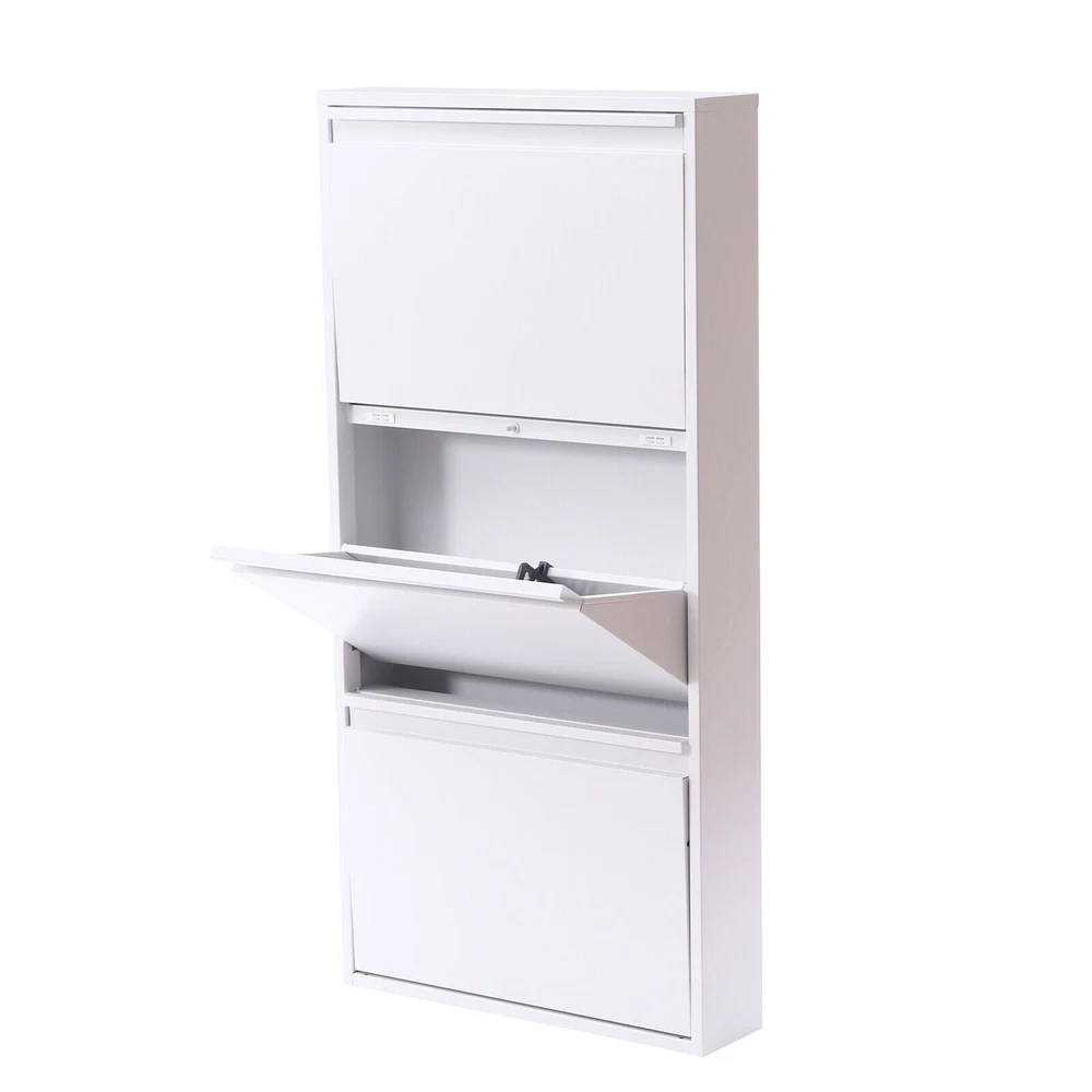 Specification Style: Modern Color: White Shape: Rectangular Number of Tiers: 3 Installation Type: Freestanding, Wall Mounted Material: Cold Rolled Steel Plate Thickness: 0.8mm/0.03inch Gross Weight: 13.5kg/29.76lbs Product Size: 50.5*12.2*103.3cm/19.88*4.8*40.67inch Package Size: 115*59*19cm/45.28*23.23*7.48inch Package Included 1* Shoe Cabinet Other Accessories for Installation Contemporary Slim Shoe Drawers Shoe Cabinet For Entryway Entrance Hallway Foyer Description Do you believe that? A small entryway can be turned into a storage treasure trove. If you don't believe it, you can try our shoe cabinet. The three-tier design of this shoe cabinet can hold up to 9 pairs of shoes and the wall-mountable installation can save more space in your entryway. Hurry up and take it home with you! Key Features High-quality Material: The shoe cabinet is made of 0.03inch thick cold rolled steel, which is tough and not easily deformed. And the inside of the back of the shoe cabinet is welded reinforcement plates to make the shoe cabinet last longer. Great Home Decor: In classic White with a simple design, this shoe storage cabinet provides a sense of modernization, which enriches your entire entryway and gives your house a new look, showing off your lifestyle. Large Capacity: The shoe cabinet has 3 tiers and can store up to 9 pairs of shoes to meet your storage needs. When it is mounted on the wall, the spare bottom floor can also be used to store slippers, etc. Humanized Design: Its surface is smooth without burrs, and it will not scratch the hand. The corners of the frame are designed with rounded corners, so you will not be injured during use. Relieving Your Fatigue: This beautiful shoe cabinet guards the door every day and welcomes you home. It allows you to put away your exhaustion as soon as you get home and start enjoying leisurely home life by taking off your shoes. Organized Lifestyle: This shoe cabinet cleverly integrates shoe storage into life, placing it at the doorway to store your messy shoes, making it pleasing to the eyes as soon as you open the door, bringing you an organized lifestyle. Thoughtful Design: Each layer is equipped with a damping switch and rubber magnetic suction, which not only reduces noise and prevents your hands from being injured when opening and closing, but also enhances the sealing of the shoe cabinet. Tipping Bucket Design: The entire shoe cabinet features a tipping bucket design for easy opening and closing, making it very easy to use. It also keeps dust out of the shoe cupboard. Space Saving: With a small footprint of 19.88*4.8inch at the bottom, it can be placed in every corner of the home. By using the doorway space wisely, even a small entryway can be turned into a storage treasure trove. Also, it can be mounted on the wall to save floor space. Easy to Clean: Its smooth surface makes it very easy to clean, all you need to do is wipe it down regularly with a dry cloth or wash away any serious stains. And the shoe cabinet is held in place with spring pins and is removable for easy cleaning. Avoiding Creases: This large capacity shoe cabinet can accommodate boots and medium boots, allowing them to stand securely or be placed at an angle to avoid wrinkles on the surface. Protective Shipping: In order to prevent the product from being damaged and bumped during transportation, we fill the package with anti-collision protection foam to protect your products to the maximum extent possible. Details Reinforced Shoe Hopper: The shoe hopper is reinforced on three sides, making it stable to open and close without wobbling. Top Platform: The top platform is spacious enough to hold keys, photo frames, etc., making it very practical. Pre-drilled Holes: There are four pre-drilled holes at the back of the shoe cabinet to allow you to fix the cabinet to the wall and prevent it from collapsing. Full Plate Layer: The layer rack is designed with a full plate, which can effectively prevent the ash on the bottom of the shoes from falling onto the shoes on the lower layer. At the same time, the full plate layer shelf places shoes more stably, and even high heels will not fall. Concealed Handle: The concealed pull handle is semi-circular. The curved shape is not only subtle and beautiful but also makes it easy to open and close the shoe cabinet without hurting your hands. Application It is suitable to be placed at the door, living room, or bedroom used to place slippers, casual shoes, high heels, boots, leather shoes, and other shoes, as well as some daily necessities such as keys, books, and umbrellas. It can be used as a bookshelf and storage rack. Installation 1. Place the shoe cabinet in the position where it is to be installed. 2. Mark the hole locations with a marker. 3. Punch the holes in the marked positions. 4. Insert the plastic expansion tube into the punched holes. 5. Screw the screws into the plastic expansion tube (halfway in first). 6. Align the shoe cabinet with the screw fixing holes and hang it. 7. Tighten the screws so that the back of the shoe cabinet fits snugly against the wall. 8. Check that the shoe cabinet is not loose. Specification Style: Modern Color: White Shape: Rectangular Number of Tiers: 3 Installation Type: Freestanding, Wall Mounted Material: Cold Rolled Steel Plate Thickness: 0.8mm/0.03inch Gross Weight: 13.5kg/29.76lbs Product Size: 50.5*12.2*103.3cm/19.88*4.8*40.67inch Package Size: 115*59*19cm/45.28*23.23*7.48inch Package Included 1* Shoe Cabinet Other Accessories for Installation Notes Please note that this is a slim shoe cabinet that can accommodate shoes up to 4.72inch in height and 12.2inch in length. Please allow the slight color difference caused by the shooting light and 1-3cm error due to manual measurement, and make sure you do not mind before ordering. Payment Delivery details Terms of sales About us Contact us Payment We accept ebay payment 。 Fees such as import duties, taxes are not included in the item price or shipping costs. The