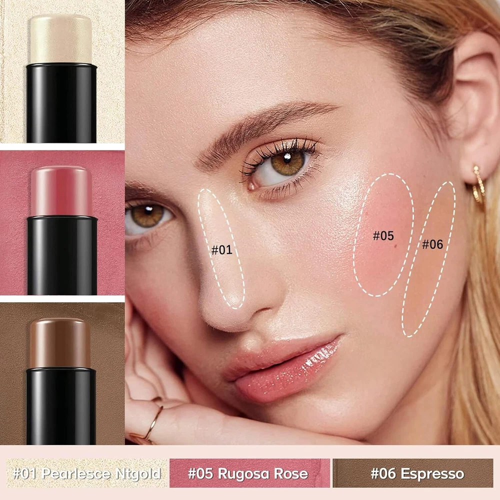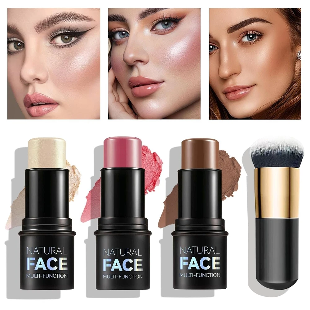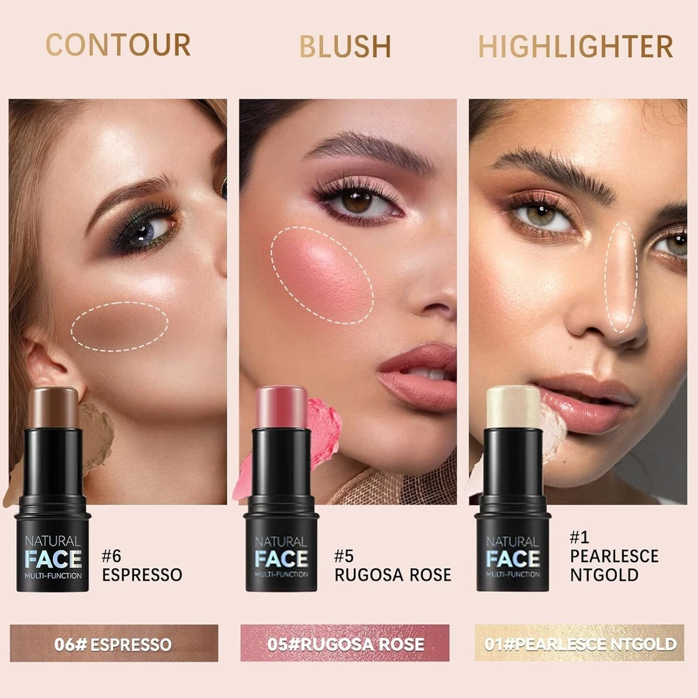 Contour Stick Highlighter Stick, Blush Stick 3Pcs Cream Contour Kit with Contour 【Complete Contour Kit】This makeup kit comes fully equipped, including a contour stick, highlighter stick, blush stick, and a premium soft contour brush for blending stick creams. It can easily create an effortless, non-greasy finish 【Long-lasting Waterproof】This cream contour has a mild formula with subtle hydrating ingredients and conceals skin pores. The highlighter makeup stick’s waterproof formula also keeps your makeup looking long-lasting 【Versatile Bronzer Stick】These contour stick makeup can also be used with bronzer cream which is perfect for highlighting and defining eyes, cheeks, lips, and body contour. It is easy to create multi-faceted three-dimensional long-lasting highlighter stick makeup 【Clean and Convenient】This blush stick for cheeks has a cover to cover the paste, and the makeup brush also has a protective cover to reduce the interference of dust from the outside. The contour and highlighter stick is small and can be carried in a bag 【Best Choice for Gift】The beautiful cream highlighter is perfectly matched with makeup brushes, suitable for daily use, birthday parties, makeup shows, prom, and wedding makeup, and great as a gift Product Description Is Contour Stick good for beginners? Skin Color:Fair I think this set of contour sticks is very friendly to makeup novices. Who would have thought that a 40+ woman who just learned makeup would find such suitable cosmetics? The color is great and long lasting Skin Color:Fair-Light This contour kit has been by far my saving grace. It lasts ALL day, and it doesn't feel heavy, doesn't flake or smudge off AND at the end of the night it wipes away easily with makeup remover. Loved everything about these products. Skin Color: Medium I received these shimmery makeup sticks with bronzer, highlighter, and blush and I immediately fell in love with the creamy consistency and how it made my makeup look glowy and dewy. Three different colors, and a beautiful brush! Skin Color:Medium-Dark I love this blush stick and the other two are great too! I like the color of the blush stick very much. It is not greasy or clumps easily. It can push the paste smoothly. The brush attached is also very soft and comfortable to apply on my face. This set is awesome Skin Color: Medium-Dark You get three different colors of sticks. The great thing about the contour stick is that it's a very natural brown with no shimmer or glitter. This means that not only is it great for contouring, but it’s also an incredibly realistic bronzer! Finish Type Shimmery Style 02-03-04 Color Medium Item Form Cream Brand Brohood Country of Origin China Coverage Light Is Discontinued By Manufacturer No Package Dimensions 6.22 x 5.24 x 1.22 inches; 3.53 ounces Manufacturer Brohood