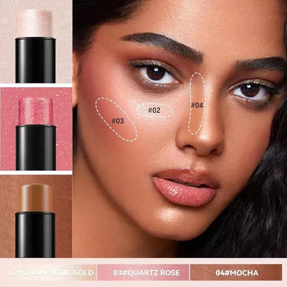 Contour Stick Highlighter Stick, Blush Stick 3Pcs Cream Contour Kit with Contour