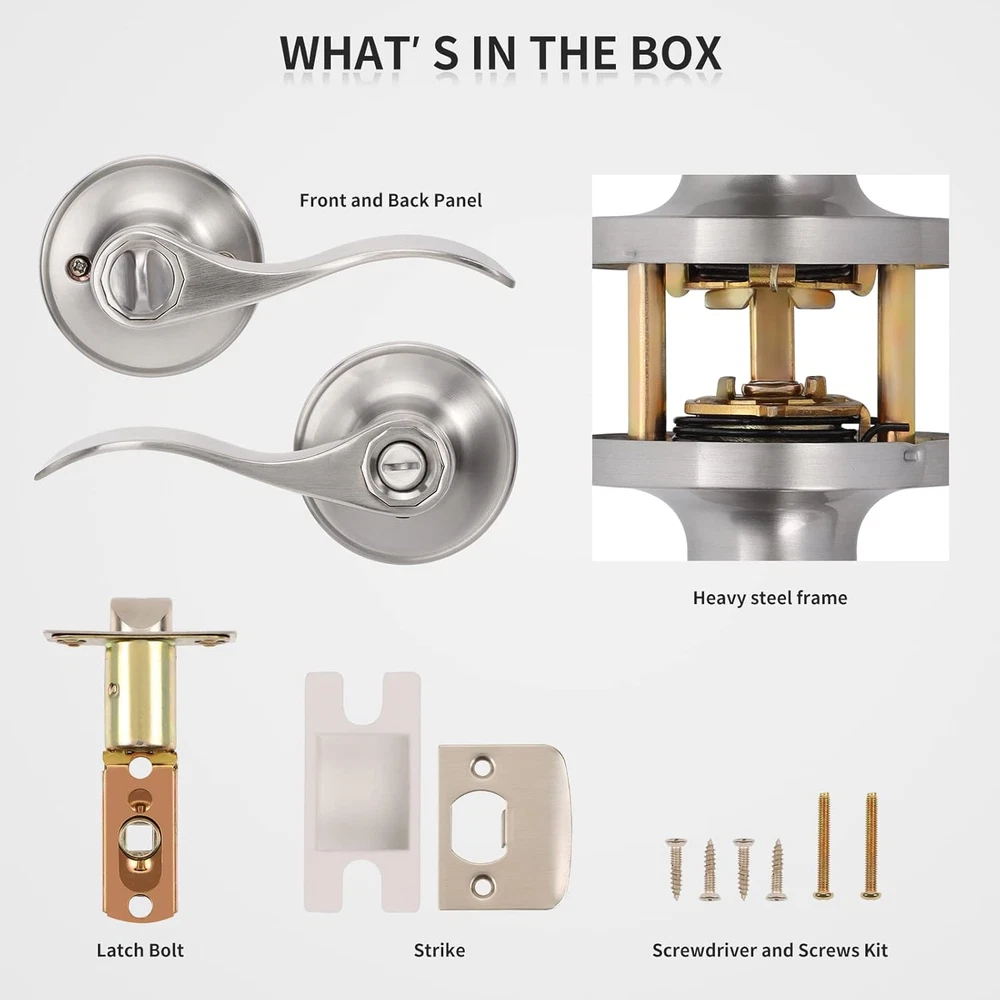 Store New Arrivals Add to Favorite View Feedback Contact Contractor Pack of 4, Brushed Nickel Door Knobs Levers Privacy Interior Door Handles Bedroom Bathroom(Locked inside with Turn-Thumb), ANSI Grade 3 for Office/Home Use Description Item model number 4-3824BKSN Number of Items 4 Pattern Wave Lever-Drop Style Switch Style Screw-in Theme Nickel Batteries Included? No Shape Drop Finish Type Satin Nickel Style Privacy-Locked Inside with Turn-thumb Handle Type Knob, Lever Unit Count 1 Count Batteries Required? No Finish Satin Nickel Exterior Finish Stainless Steel, Zinc Material Zinc Package Type Standard Packaging Metal Type Stainless Steel Specific Uses For Product Commercial/Residential Item Package Quantity 4 Item Weight 6.84 pounds Size Privacy Door Handles for Bed/Bathroom Lock Type Privacy Lock Special Features Keyless Features Special Feature Keyless Features Hand Orientation Left, universal Part Number 4-3824BKSN Color 4 Pack Package Dimensions 13.4 x 8 x 6.8 inches Handle Material Zinc, Stainless Steel Included Components Installation instructions, door levers, strike plate and screws Number Of Pieces 4 FULLY REVERSIBLE DOOR PRIVACY SET - Suit for interior doors where a privacy locking function is required, such as a bedroom or bathroom. Be locked with turn buttons without key; When locked inside, the door could be opened outside with coin. Designed for domestic/office installation, fits on left/right handled doors. STANDARD SIZE - Adjustable Backset - 2-3/8 inch or 2-3/4 inch (60mm or 70mm); Fits doors thicknes:1-3/8 inch to 1-3/4 inch (35mm to 45mm). SIMPLE & EASY INSTALLATION - Package come with all accessories, including a detailed instruction guide. Easy and simple fitting helping to save your time and gives a safer and more secure installation. STURDY & DURABLE CONSTRUCTION - We use only the finest zinc alloy and stainless steel, immense durability. Meets ANSI grade 3 standards and tested for over 200,000 use cycles, superior machining and hand polishing techniques present a flawless finish with hidden screws to maintain the high end contemporary style of this lever. Welcome to E-Home Hardware Any question or problem about the items, please don't hesitate to and we give you a reasonable solution in 24 hours. We will do the best for your satisfaction. Interior door handles with PRIVACY LOCK - PRIVACY function for use on interior doors where a privacy locking functions are required such as a bedroom or bathroom. Door handle set is crafted of solid zinc alloy in satin nickel finish provides superior durability and high performance. Features: ●Finish: Satin Nickel/Brushed Nickel ●Certification: ANSI Grade 3 ● For domestic home and office use ● Fits both left handed and left handed doors ● Standard Size - Adjustable Backset - 2-3/8 inch or 2-3/4 inch (60mm or 70mm); Fits doors thicknes - 1-3/8 inch to 1-3/4 inch (35mm to 45mm). ● Bulk order contract packs - buy more, save more ● Simple and easy to install- All you need is only a Phillips screwdriver. What's in box: ● Lever Set Body x 1 ● Latch x 1 ● Strike Plate x 1 ● Screws for Latch Plate ● Screws for Strike Plate ● Installation Guide x 1 (● Keys x 3) Brings Functionality to Your Home: While offering the trusted, enduring qualities , this collection features high style for the discriminating consumer. ABOUT US We offer the best prices around on high quality products. Our E-store includes media such as books, movies, music and games while offering electronics, toys, sporting apparel, clothing, tools, general home, garden items and more. SHIPPING We are always working hard to ensure your package arrives as soon as possible. Please understand that some factors like weather, high postal traffic, and the performance of shipping companies are outside of our control. We offer free shipping to the lower 48 states and ship within 2 business days of payment, usually sooner. We do not accept P.O. Boxes. Please provide a physical address. For shipping outside of the continental USA, we only use eBay's Global Shipping Program.The item is shipped to KY and then sent to the rest of the world. International customers are responsible for all duties and taxes. Continue to check out in order to calculate costs for shipping the item to your country. Messages regarding eBay's Global Shipping Program MUST be directed at eBay EXCLUSIVELY. RETURNS We offer a 30-Day Return Policy on items which you are not completely satisfied with. You have the option for a full-refund or an exchange of the item. No returns are available on items shipped outside of the USA. PAYMENT We accept PayPal. CONTACT US This page content is yet to come Please ad us to your favorite seller and visit again later Thank You CUSTOMER SATISFACTION We try our very best to make sure every customer is completely satisfied. If there's a problem, message us! We're happy to help. WE ACCEPT Copyright © 2021 AutoDS. | All Rights Reserved